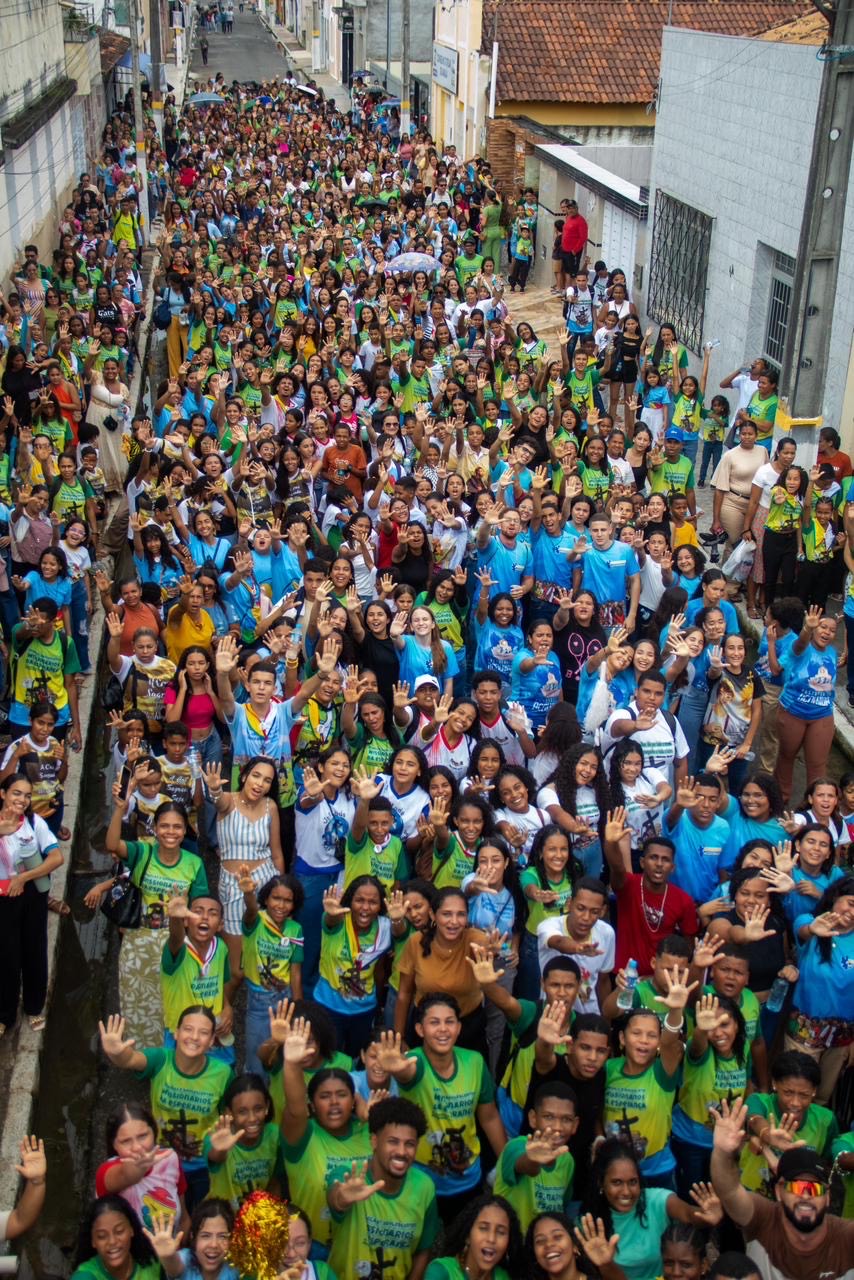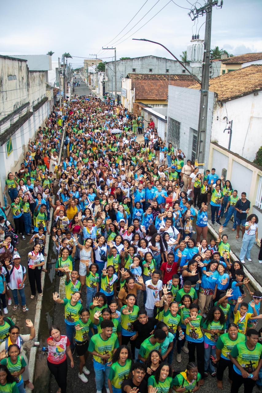 Após a missa, os jovens missionários tomaram as ruas da cidade em uma caminhada festiva, marcada por cantos, danças e expressões de fé e alegria. A atividade reforçou o papel das crianças e adolescentes como protagonistas da evangelização e sinais de esperança nas comunidades.