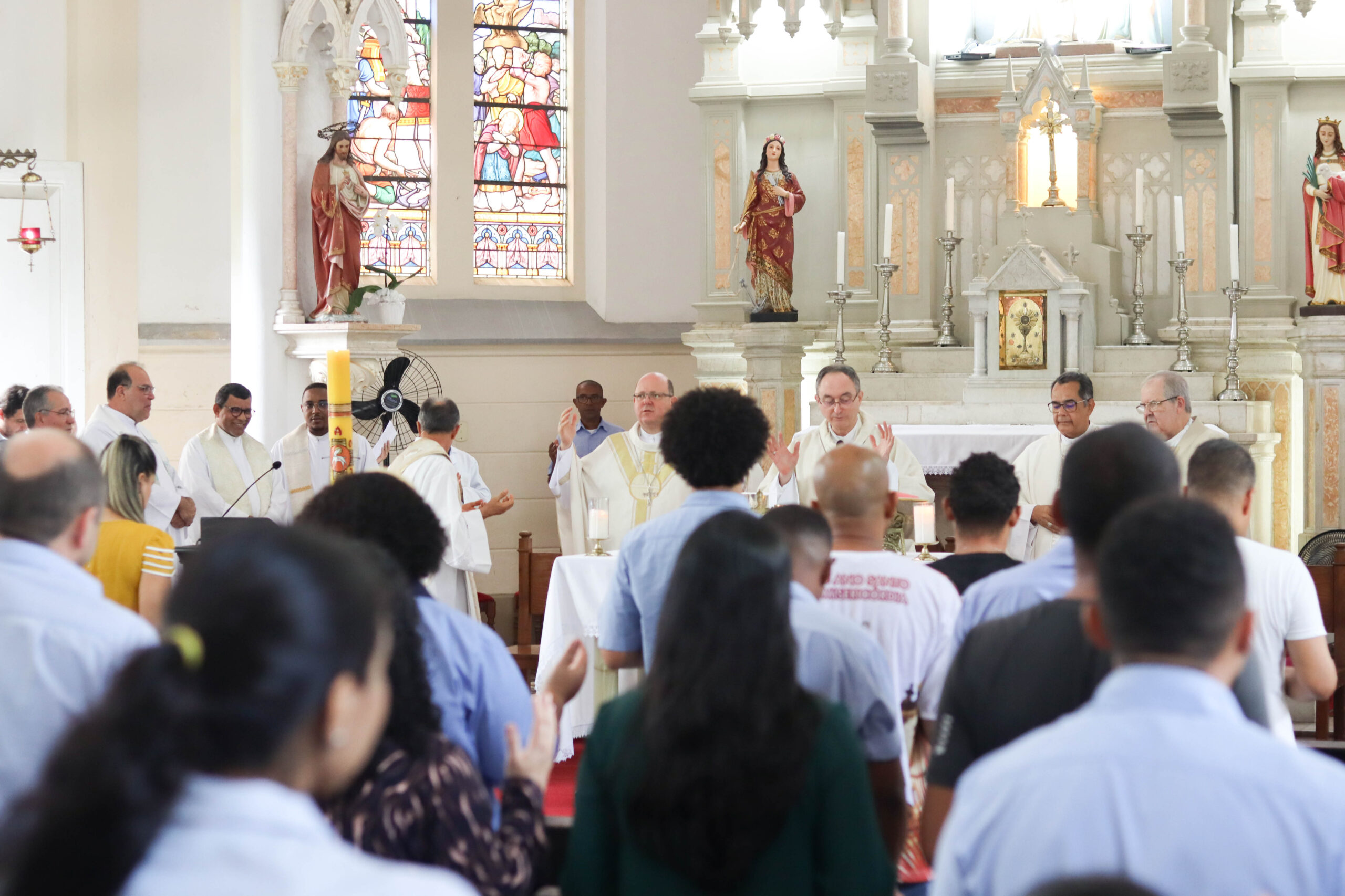 A Santa Missa, nesta Oitava de Páscoa, aconteceu nesta sexta-feira (14). Para conferir a cobertura, clique aqui. Fotos: Sara Gomes