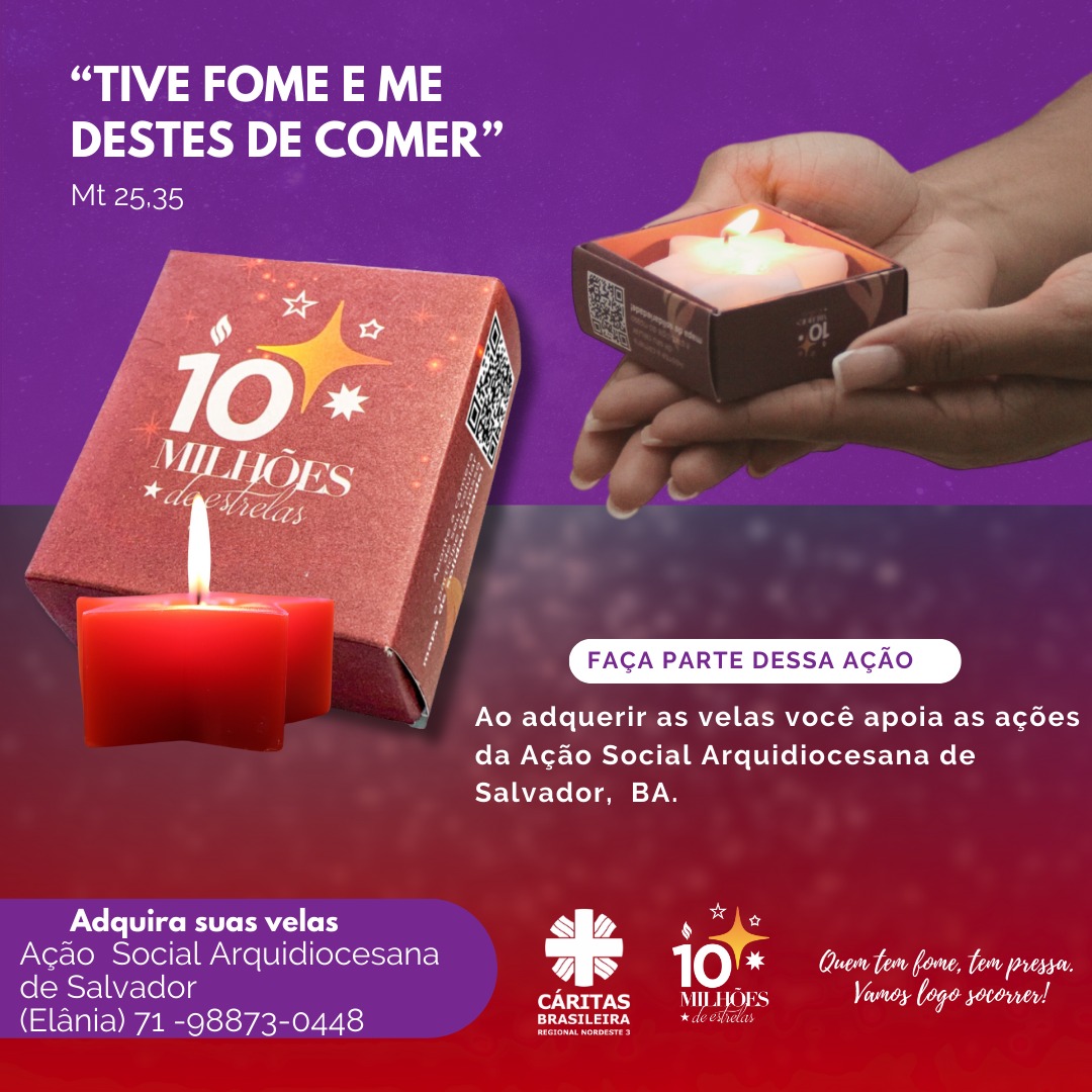 Com o objetivo de arrecadar recursos financeiros que serão destinados para os projetos sociais, a Ação Social Arquidiocesana (ASA) abraçou a campanha 10 milhões de estrelas, promovida pela Cáritas. A iniciativa conta com velas do advento, que podem ser adquiridas pelo valor de R$ 6 (a unidade).
