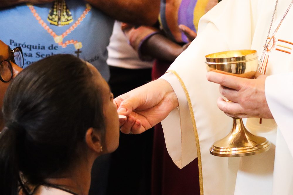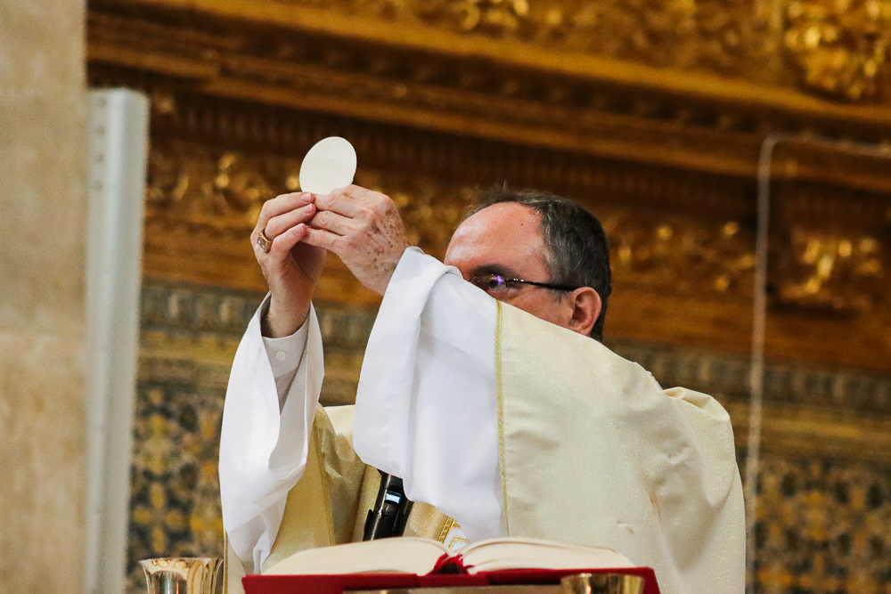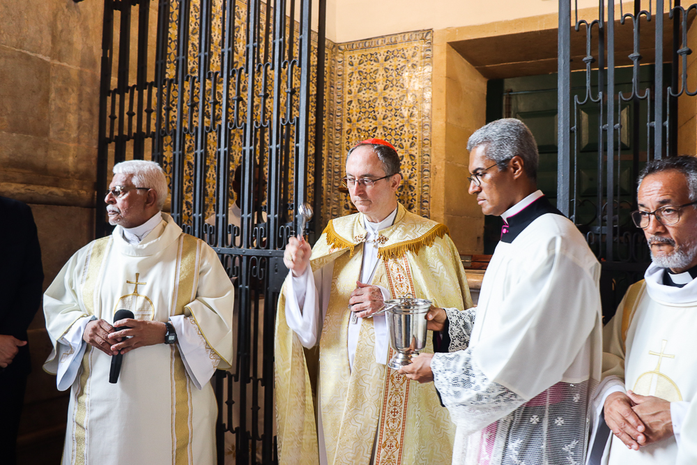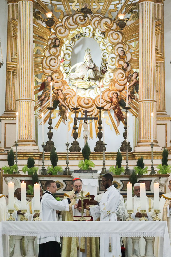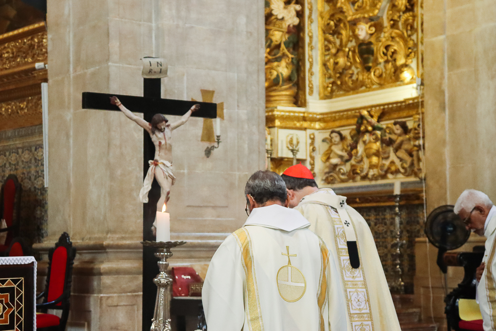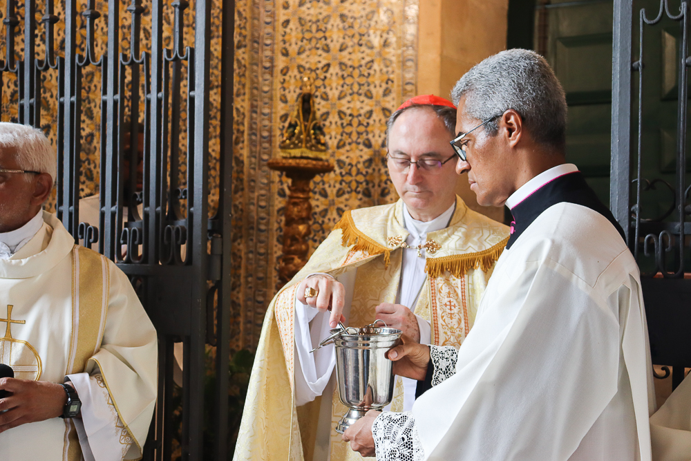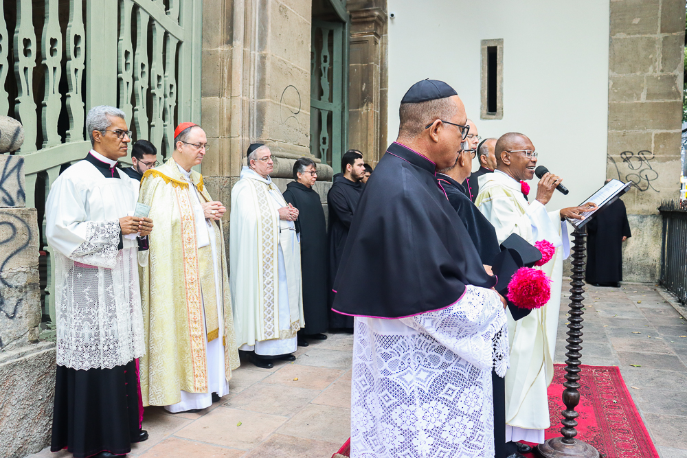 Ao chegar no adro da Catedral, a cruz foi venerada e recolhida. Em seguida, junto à pia batismal, Dom Sergio abençoou a água, que foi aspergida sobre todos os fiéis. Ainda como parte do rito de abertura do Ano Santo, o Cardeal presidiu a Missa. A Catedral estava lotada, pois todos queriam testemunhar o início de mais um momento histórico na vida da Igreja.
