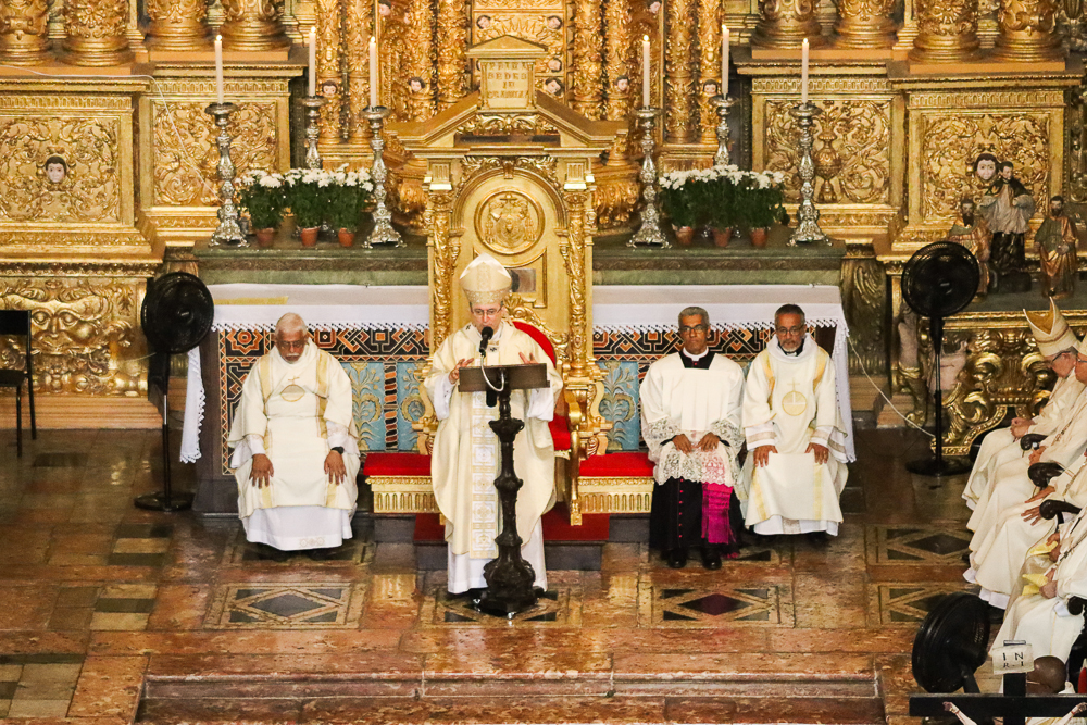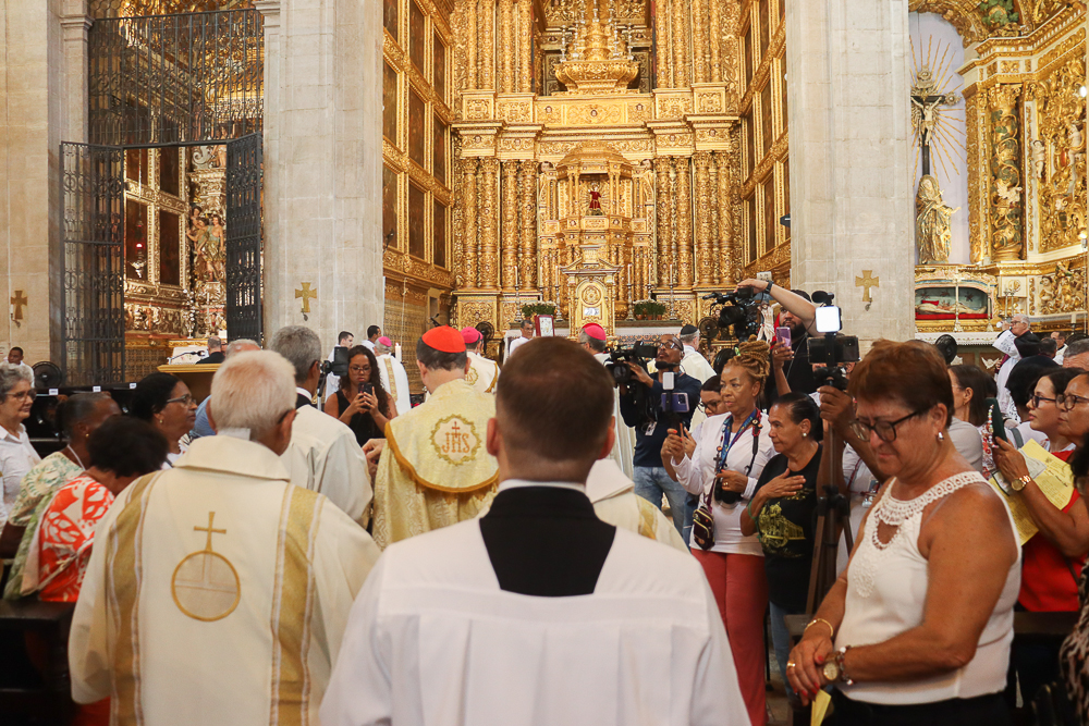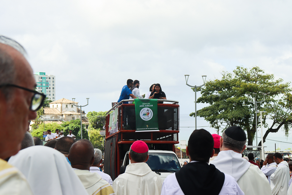 “Nós estamos iniciando o Ano Jubilar em comunhão com toda a Igreja. Não se trata de uma iniciativa da Arquidiocese de Salvador, afinal nós aqui programamos de acordo com aquilo que está sendo proposto pela Santa Sé. O nosso querido Papa Francisco pediu que nesse domingo, em todas as arquidioceses e dioceses do mundo, fosse realizada a abertura do Ano Jubilar. Então, temos hoje a grande alegria de contar com muitos representantes da nossa Igreja, a querida Arquidiocese de São Salvador da Bahia. Estão aqui irmãos e irmãs que vieram das paróquias, representantes de movimentos, de pastorais, de serviços, de Irmandade, enfim é um momento bonito de unidade na fé, no louvor a Deus, mas também na vida fraterna e, acima de tudo, na esperança que é Jesus; a esperança de um Ano Jubilar que seja verdadeiramente santo; a esperança de caminhar juntos, unidos como Igreja”, afirmou o Cardeal.