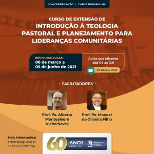 O conteúdo será dividido em três pontos focais: A Eclesiologia do Vaticano II – Lumen Gentium, a Teologia Pastoral e o Planejamento Pastoral. As aulas serão ministradas pelo padre Alberto Montealegre, doutor em Direito Canônico, e pelo padre Manoel de Oliveira Filho, professor da UCSal e Master em Comunicação pelo IICS/Universidade de Navarra. Para saber mais informações, o interessado pode entrar em contato com a UCSal, através dos telefones (71) 3206-7979 / 7994.