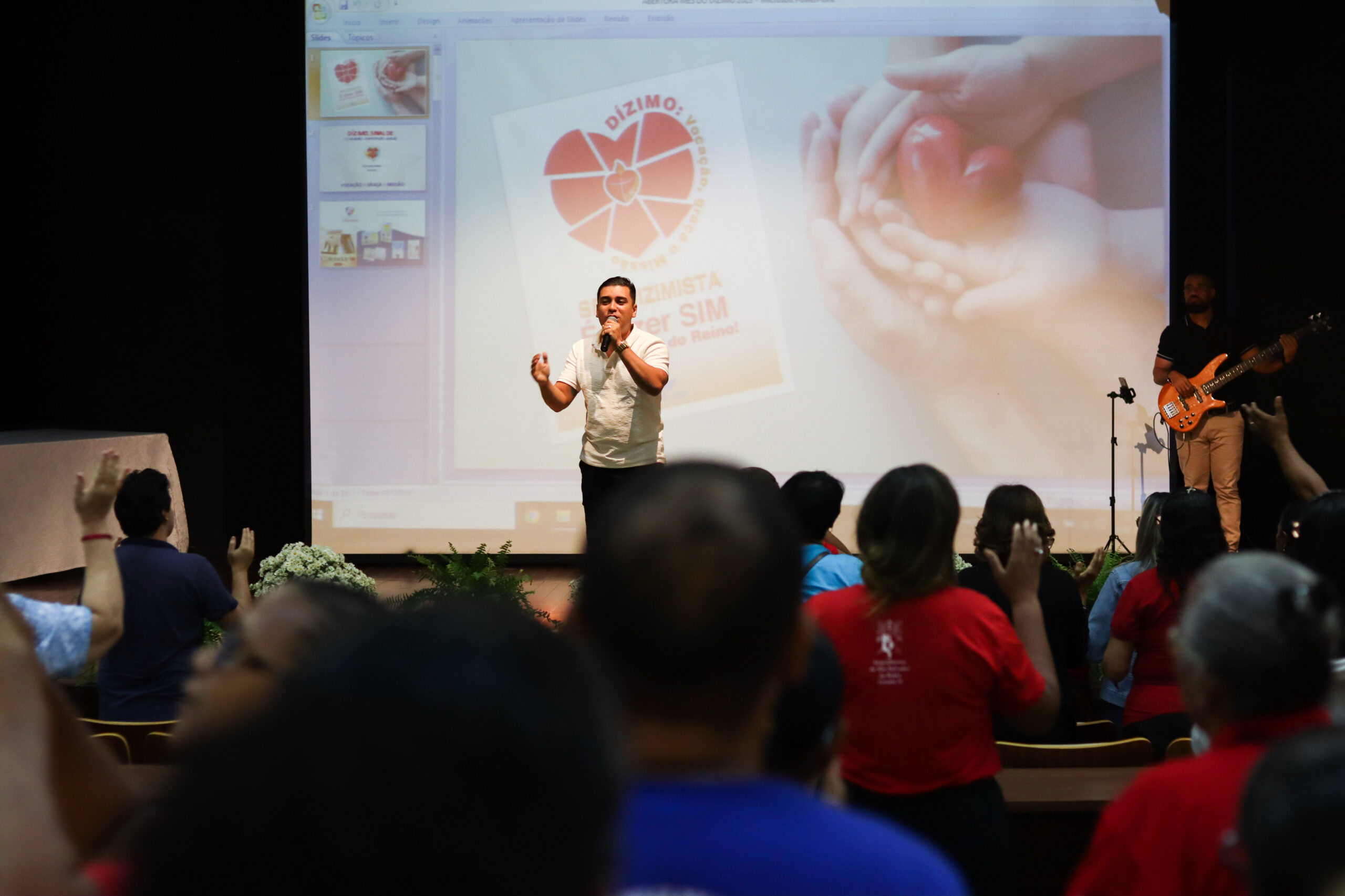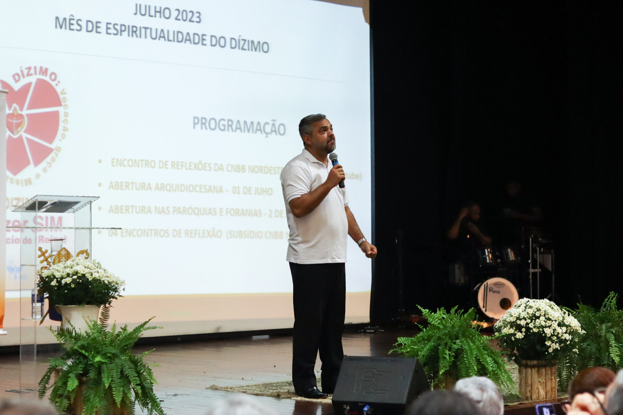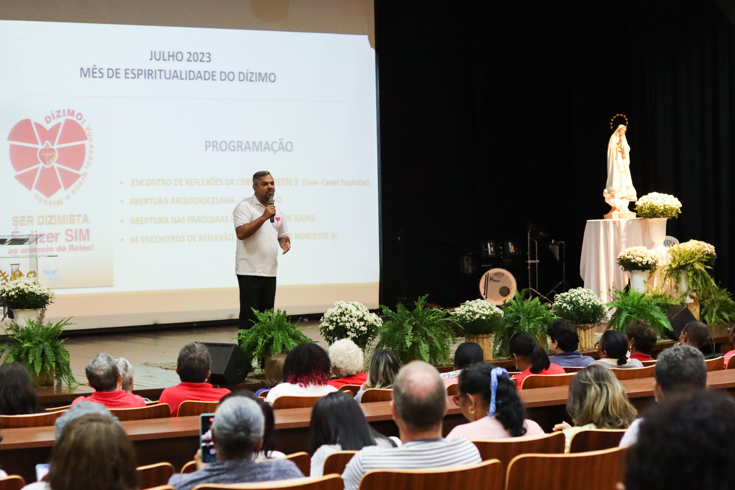 Para dar início, o bispo auxiliar e referencial para a Pastoral do Dízimo, Dom Dorival Barreto, presidiu a Santa Missa. “Nós estamos iniciando este mês de julho, que é dedicado a fazer com que a Pastoral do Dízimo seja uma realidade cada vez mais presente em nossas comunidades e paróquias. A Pastoral do Dízimo na vida da Igreja é de fundamental importância, não no que diz respeito a conseguir dinheiro, mas, sim, como nós ensinamos e ouvimos: a Pastoral do Dízimo é a oportunidade que nós temos para poder reconhecer que tudo o que temos e somos vem de Deus. É uma oportunidade de agradecimento a Deus pelas graças e bênçãos que recebemos”, afirmou.