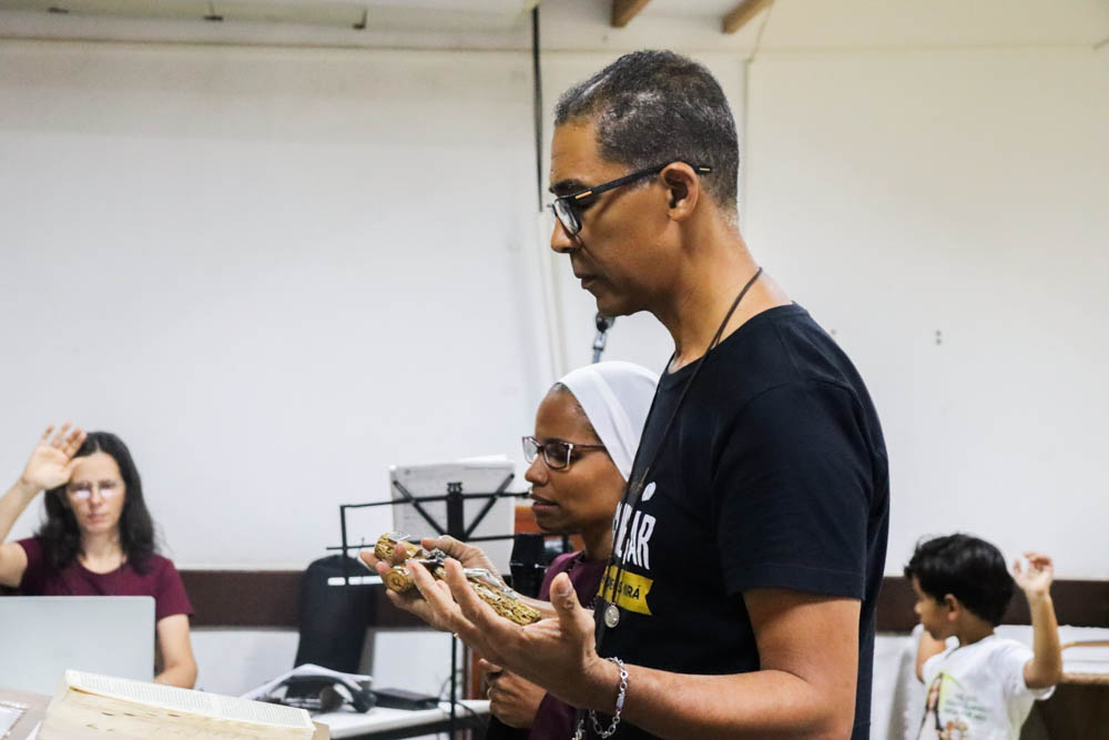 Conduzido pela Comunidade Católica Nascidos da Cruz, o encontro foi marcado por intensos momentos de oração, proporcionando aos participantes uma experiência de recolhimento, escuta e renovação espiritual. Mais do que uma formação técnica, o dia foi dedicado à vivência da fé, reforçando a identidade do agente da PASCOM como discípulo-missionário chamado a comunicar a partir do encontro pessoal com Cristo. Na oportunidade, os participantes também contaram com uma mensagem do bispo referencial para esta pastoral, Dom Gilvan Pereira Rodrigues.