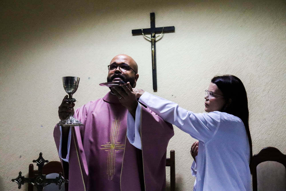 Um dos gestos mais significativos do encontro foi o almoço partilhado, expressão concreta de fraternidade e comunhão entre os participantes. A programação foi encerrada com a celebração da Santa Missa, presidida pelo coordenador e assistente eclesiástico da PASCOM na Arquidiocese, padre Leonardo Furtado, coroando o dia com a Eucaristia, fonte e ápice da vida cristã.