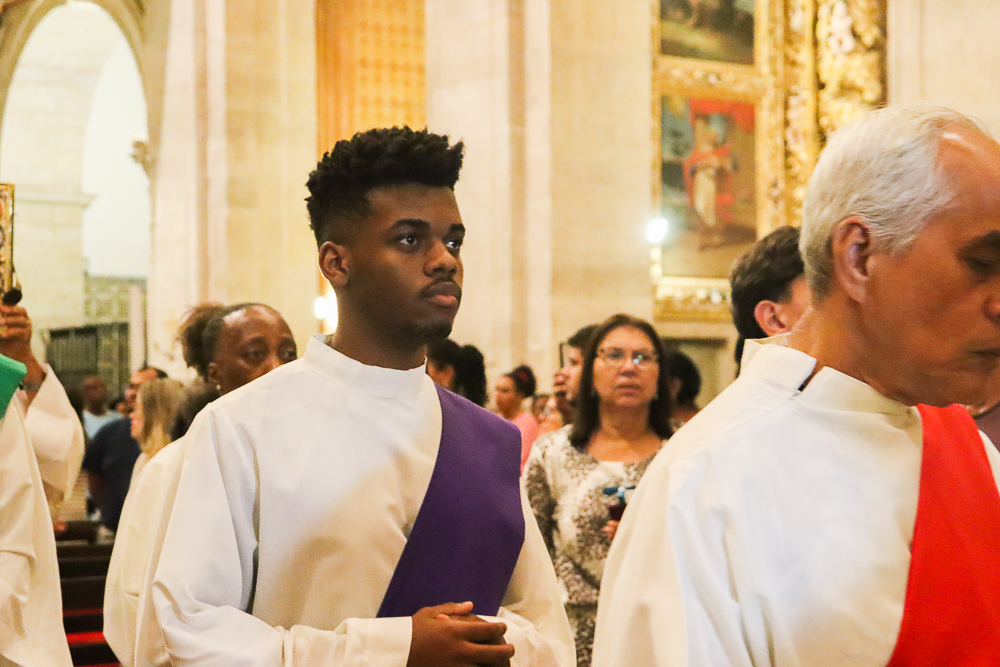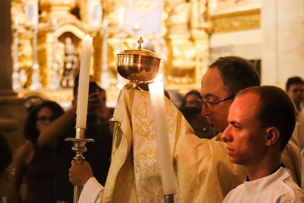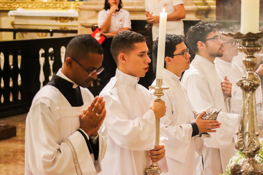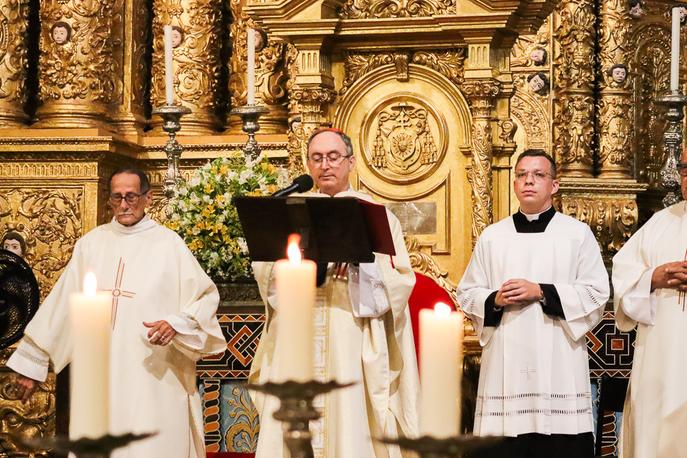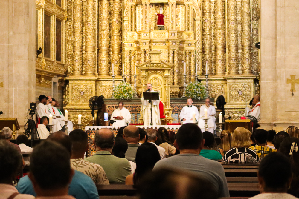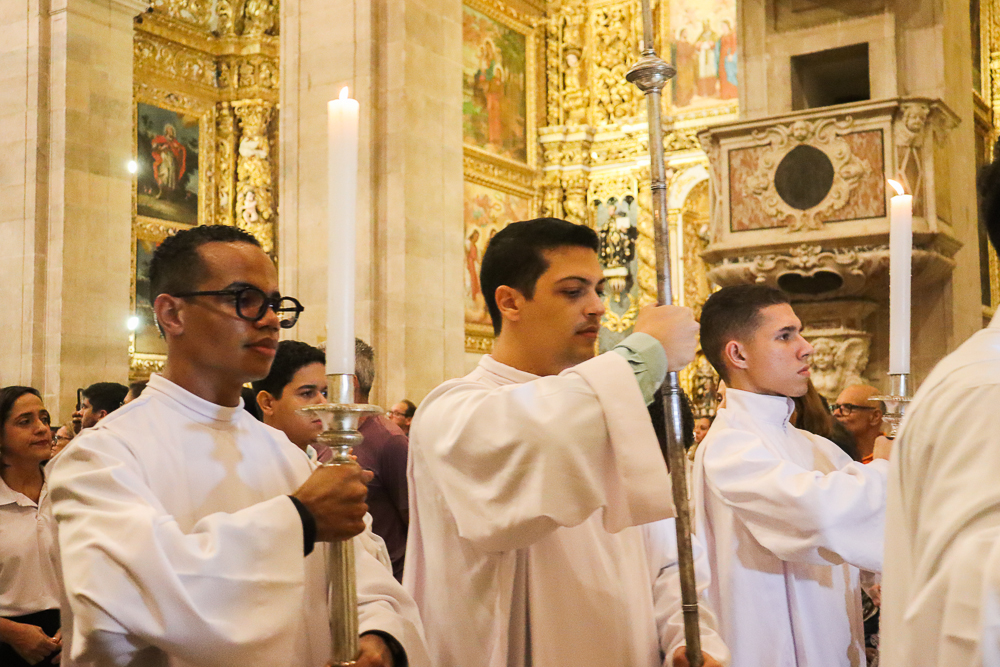 A Catedral Basílica do Santíssimo Salvador, no Centro Histórico da capital baiana, acolheu, na noite desta Quinta-feira Santa, 2 de abril, a Missa Vespertina da Ceia do Senhor com o rito do Lava-pés, abrindo o Tríduo Pascal, o período mais importante do calendário litúrgico da Igreja Católica. A Eucaristia foi presidida pelo Arcebispo de São Salvador da Bahia, Primaz do Brasil, Cardeal Dom Sergio da Rocha, e concelebrada pelo bispo auxiliar Dom Marco Eugênio Galrão, pelo bispo emérito da Diocese de Araçuaí, Dom Esmeraldo Barreto Farias, além de padres do clero arquidiocesano.