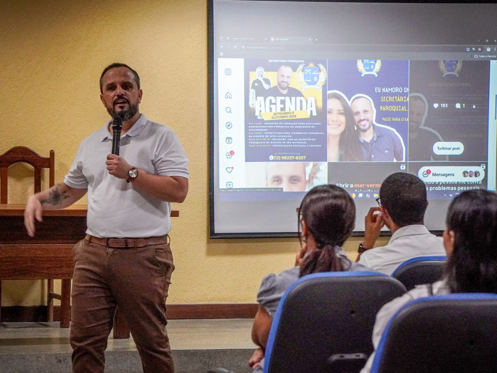 O objetivo da formação foi fortalecer o serviço desempenhado nas secretarias, espaços que representam a porta de entrada da vida paroquial e onde muitos fiéis dão os primeiros passos em sua caminhada na Igreja. Para conduzir os trabalhos, foi convidado Ricardo Magalhães, secretário paroquial e pós-graduando em Neurogestão Organizacional, que apresentou reflexões práticas e ferramentas aplicáveis à rotina administrativa.