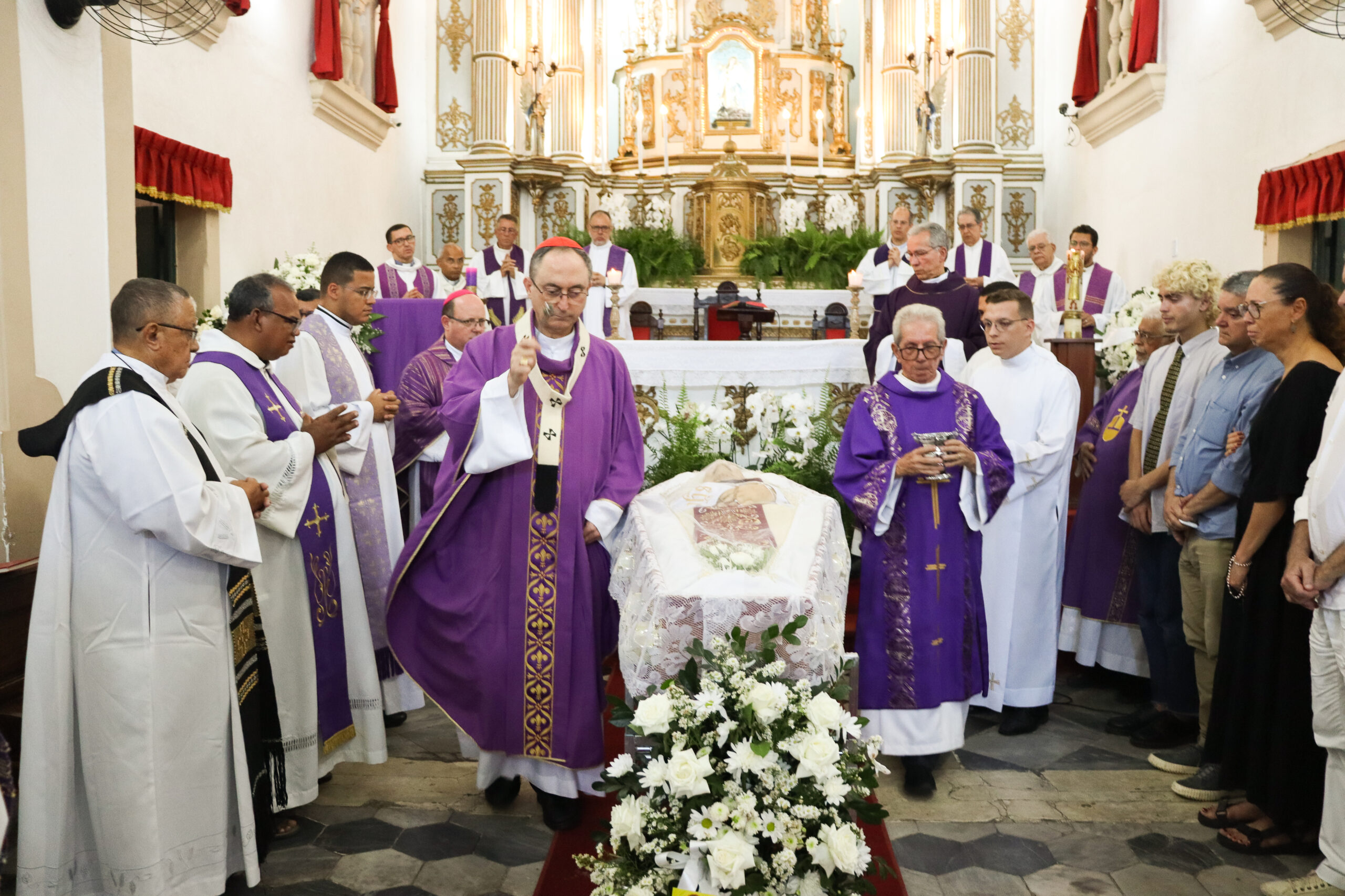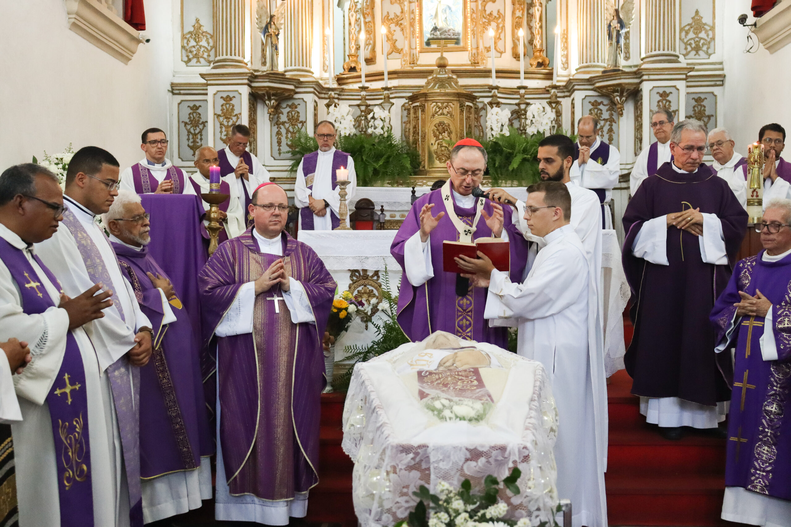 Às 10h30, o Arcebispo de São Salvador da Bahia, Primaz do Brasil, Cardeal Dom Sergio da Rocha, presidiu a Santa Missa exequial, que foi concelebrada pelo bispo auxiliar, Dom Valter Magno de Carvalho, e por padres. “Nós agradecemos a Deus por esses quase 80 anos de vida do padre Heldo, vida acolhida e doada; ele que sempre esteve com disponibilidade generosa a servir. Quem dele se aproximava recebia sempre muita atenção, e sempre que surgia uma necessidade da nossa Arquidiocese, ele se colocava à disposição. Eu, como Arcebispo, tenho muito a agradecer a Deus pela pessoa que ele era, seja junto à família, seja junto às pessoas por onde ele passou. O louvor e a ação de graças a Deus pela vida do padre Heldo vão muito mais além do que eu consigo expressar”, disse Dom Sergio durante a homilia.