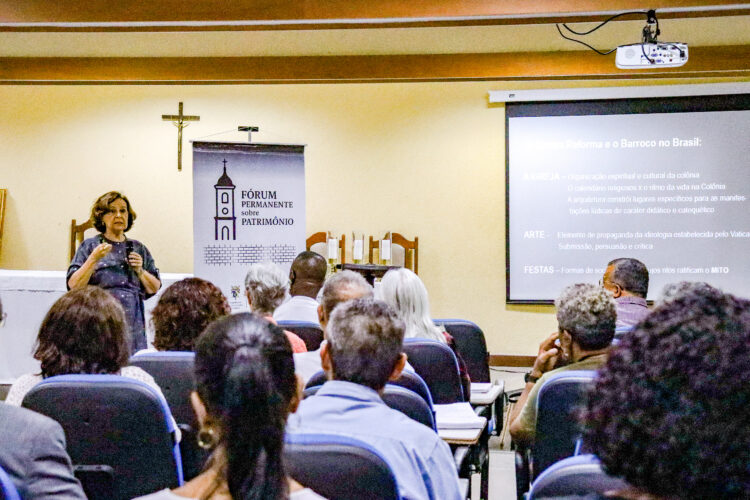 A Arquidiocese de São Salvador da Bahia, por meio do Vicariato Episcopal para a Cultura, Educação e Comunicação, realizou na tarde da última quinta-feira (3 de julho) mais uma edição do Fórum Permanente sobre Patrimônio, que teve como tema central a “Arquitetura Religiosa na Bahia”. O encontro aconteceu no Auditório 1 do Centro Arquidiocesano de Pastoral, no bairro do Garcia, reunindo párocos, administradores paroquiais, membros da COIDE (Comissão das Ordens Terceiras, Irmandades e Devoções), além de funcionários e colaboradores de igrejas tombadas.