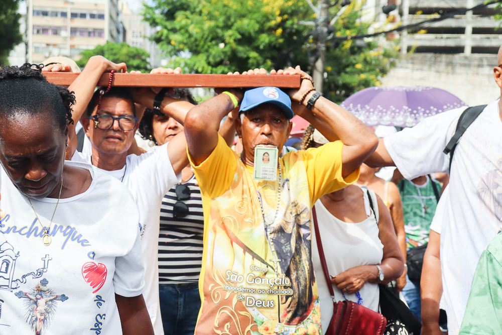A multidão de fiéis, muitos emocionados e em atitude de profunda devoção, participou da caminhada de diversas formas. Alguns percorreram todo o trajeto descalços, outros carregavam pequenas cruzes como sinal de penitência e gratidão. Além disso, um grande símbolo da fé cristã marcou o percurso: uma cruz de 3,5 metros de largura por 5 metros de altura foi levada da Conceição da Praia até o Bonfim, enquanto outra, de 3 metros de largura por 6 metros de altura, foi carregada do Lobato até os Mares, onde permaneceu.
