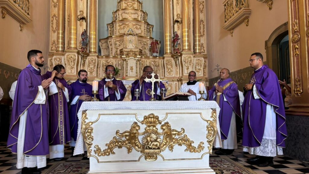 A mobilização também alcançou as ilhas da Baía de Todos-os-Santos. Em Itaparica, os fiéis da Forania 10 participaram de uma programação semelhante, iniciada com o Terço às 6h30 e Missa às 7h na Matriz da Paróquia Santíssimo Sacramento, presidida pelo bispo auxiliar Dom Gabriel dos Santos Filho. Após a celebração, os participantes caminharam até a Igreja Nossa Senhora das Candeias, em Amoreiras, onde receberam a bênção do Santíssimo Sacramento.
