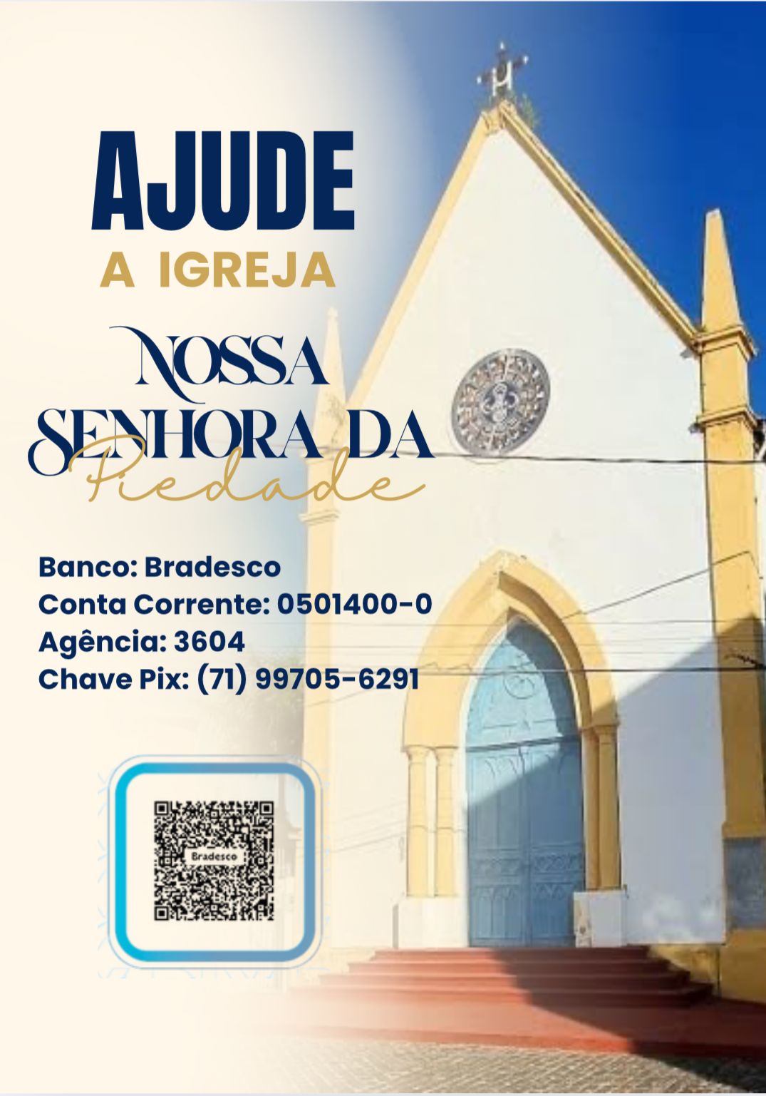 A comunidade católica está sendo convidada a participar de uma campanha de apoio à Igreja Nossa Senhora da Piedade, pertencente à Paróquia Santíssimo Sacramento, em Itaparica, com o objetivo de contribuir para a manutenção e preservação do templo. A iniciativa busca sensibilizar fiéis e benfeitores sobre a importância da colaboração financeira para garantir a continuidade das atividades religiosas e a conservação do patrimônio da Igreja.