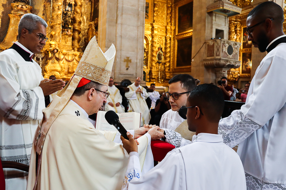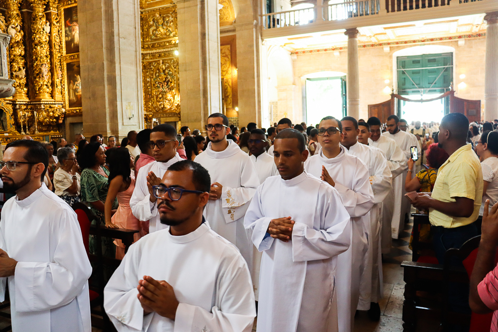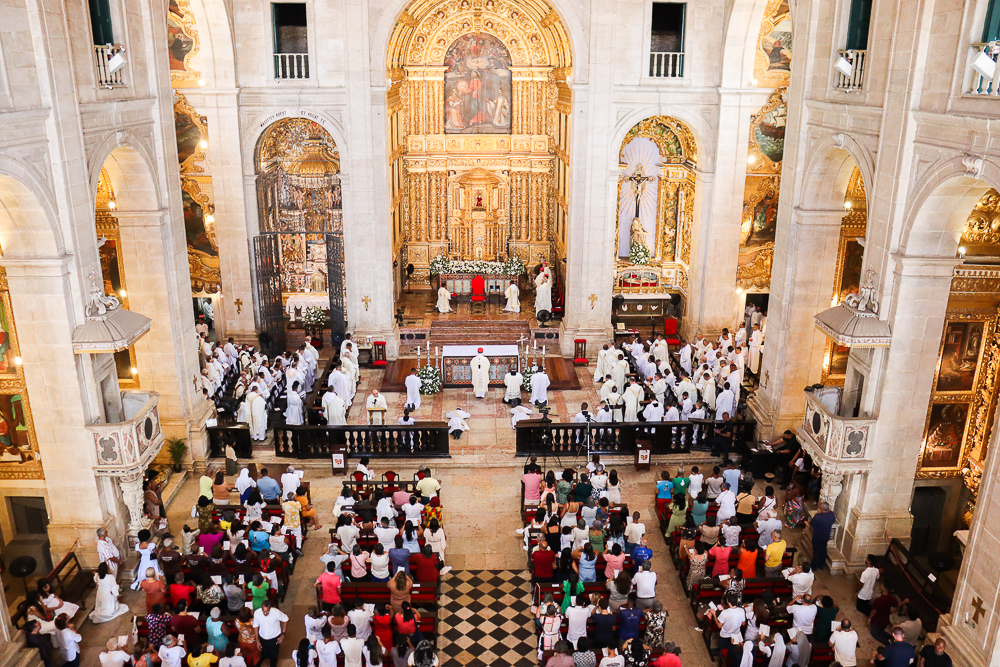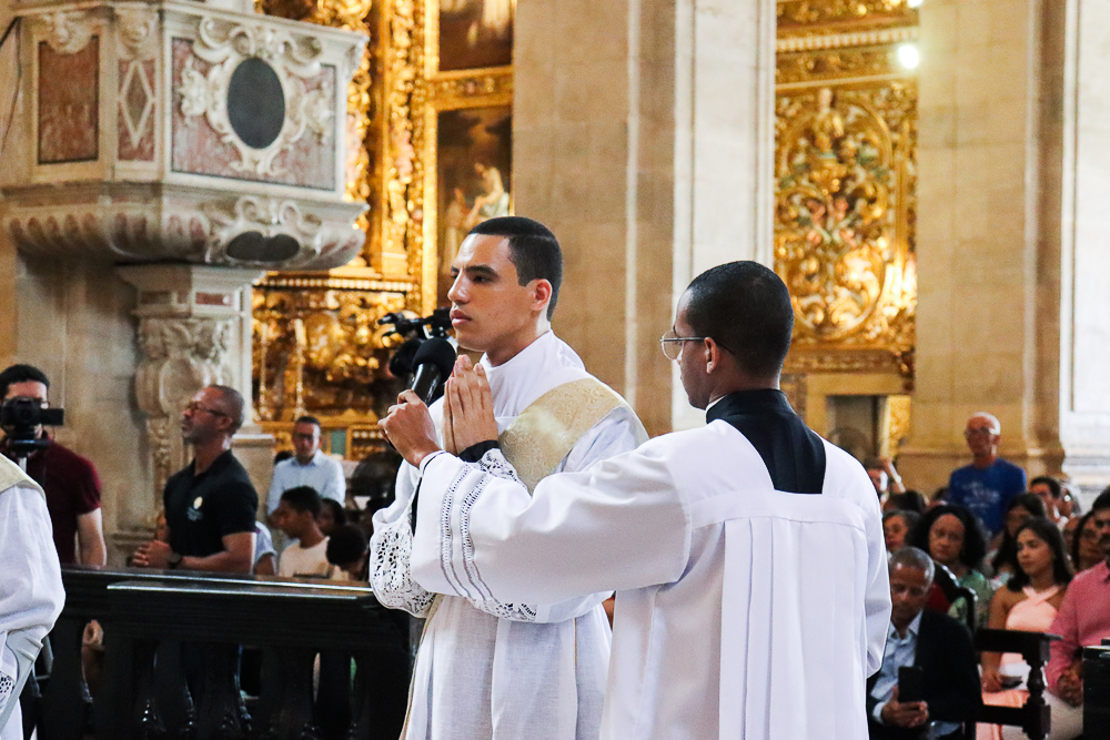 A Catedral Basílica do Santíssimo Salvador ficou lotada na manhã deste sábado, 7 de dezembro. Todos queriam testemunhar e participar da Missa com o Rito de Ordenação Presbiteral dos diáconos Lucas Sena Rodrigues e Luís Otávio Silva dos Santos presidida pelo Arcebispo de São Salvador da Bahia, Primaz do Brasil, Cardeal Dom Sergio da Rocha.