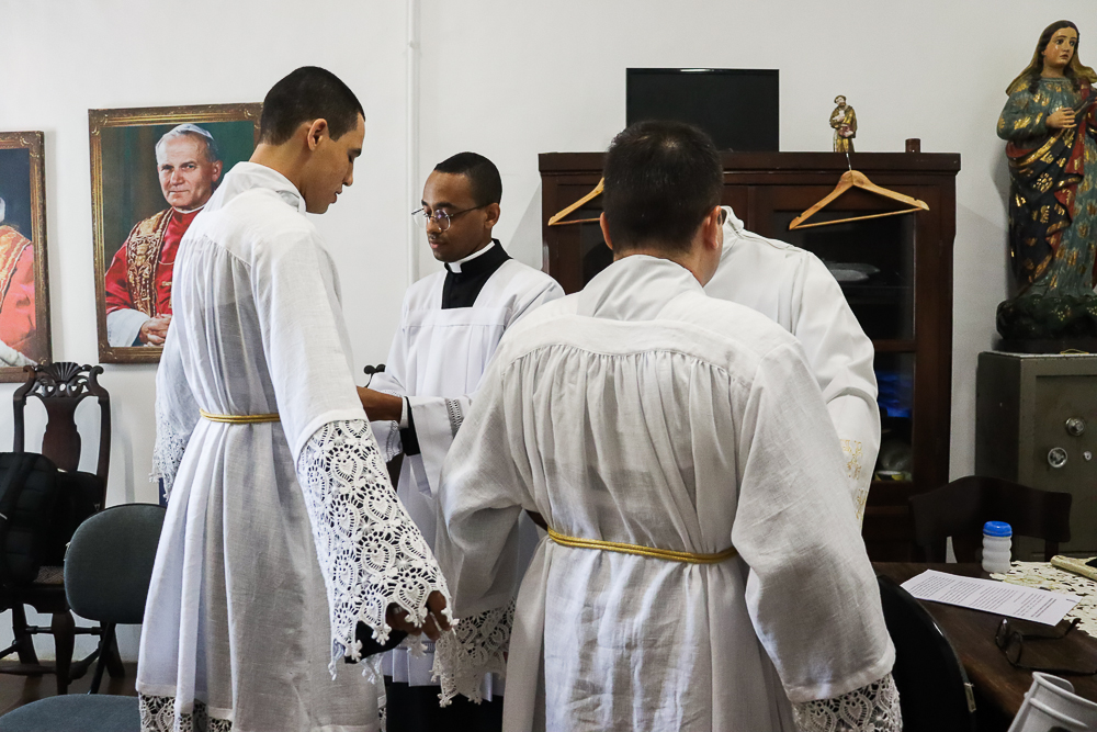 A primeira parte do Rito que conferiu o segundo grau do Sacramento da Ordem aos jovens consistiu na eleição dos candidatos. Neste momento, a Igreja reconhece publicamente o chamado de Deus e confirma o “sim” desses servos. O reitor do Seminário São João Maria Vianney, cônego Alberto Montealegre, em nome da Igreja, atestou a preparação e apresentou ao Arcebispo o pedido para que eles fossem ordenados sacerdotes.