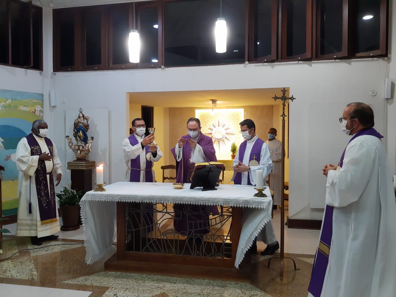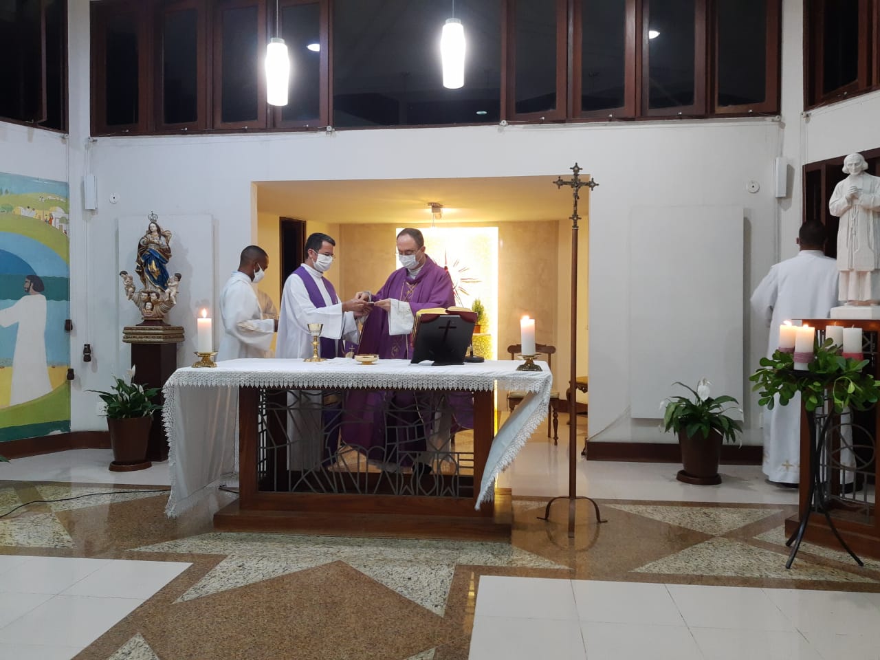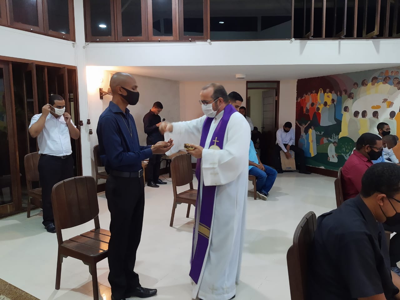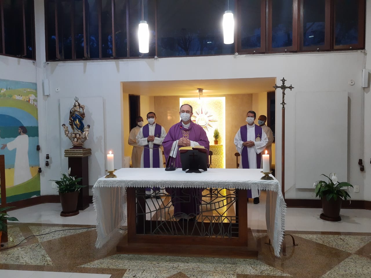Seminaristas do Seminário São João Maria Vianney participaram da Santa Missa, presidida pelo Cardeal Dom Sergio da Rocha, no último dia 10 de dezembro. A Celebração Eucarística foi em Ação de Graças pelo ano de 2020, pelos 15 anos de sacerdócio do padre Rutinaldo Gonzaga e pelo aniversário natalício do padre Franklin Silveira, ambos formadores do Seminário.