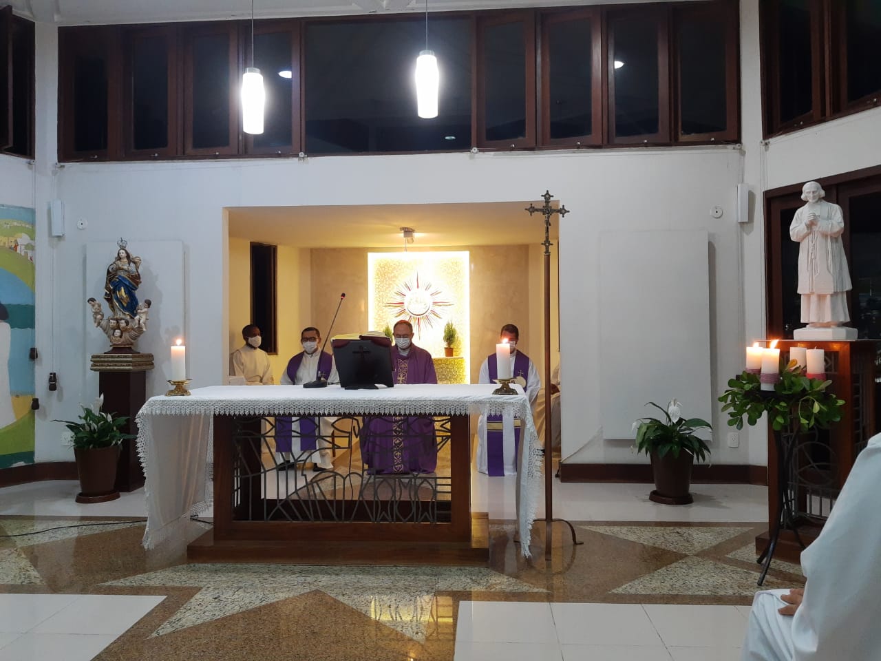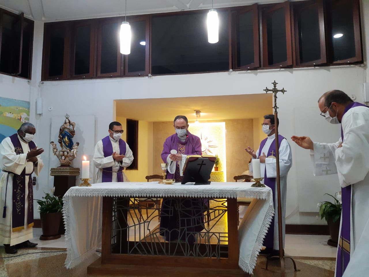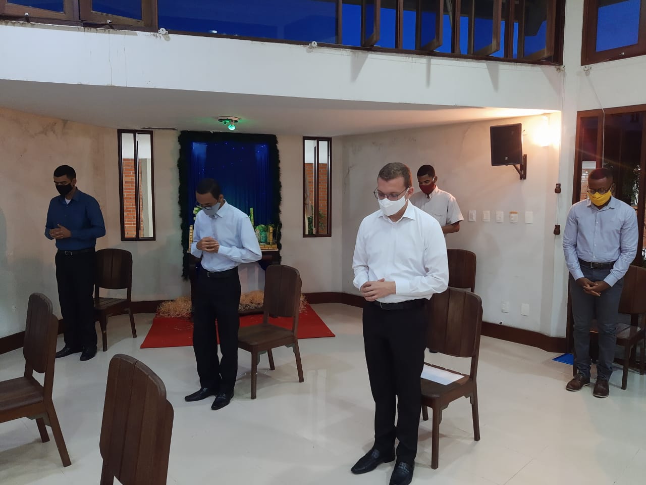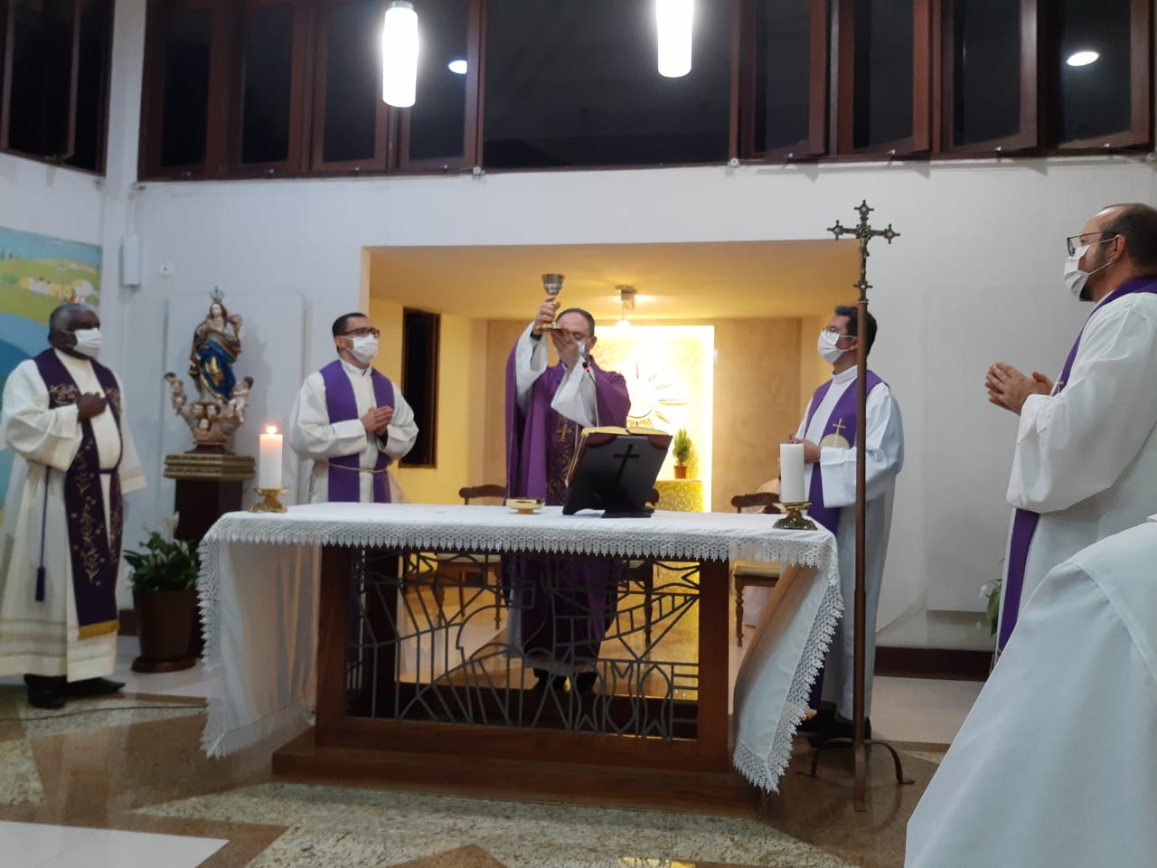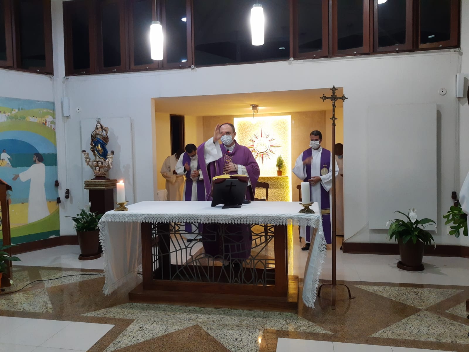 Seminaristas do Seminário São João Maria Vianney participaram da Santa Missa, presidida pelo Cardeal Dom Sergio da Rocha, no último dia 10 de dezembro. A Celebração Eucarística foi em Ação de Graças pelo ano de 2020, pelos 15 anos de sacerdócio do padre Rutinaldo Gonzaga e pelo aniversário natalício do padre Franklin Silveira, ambos formadores do Seminário.