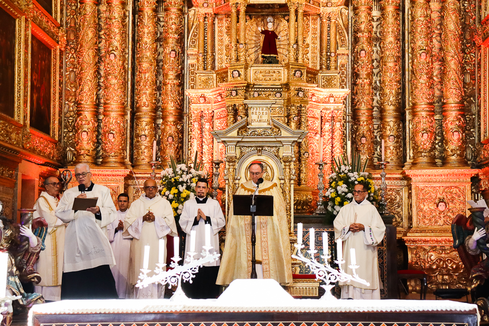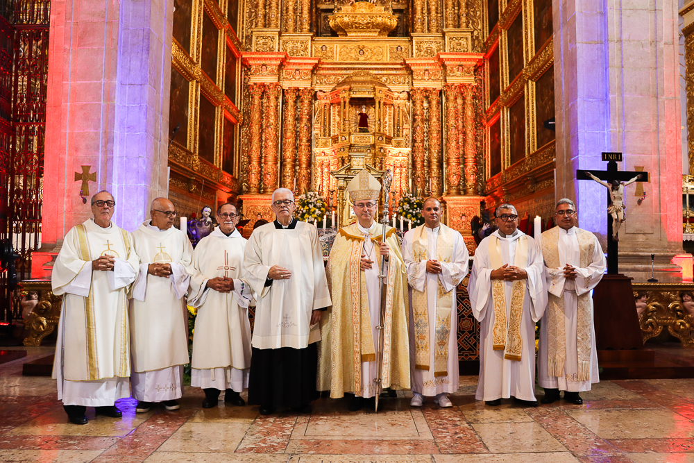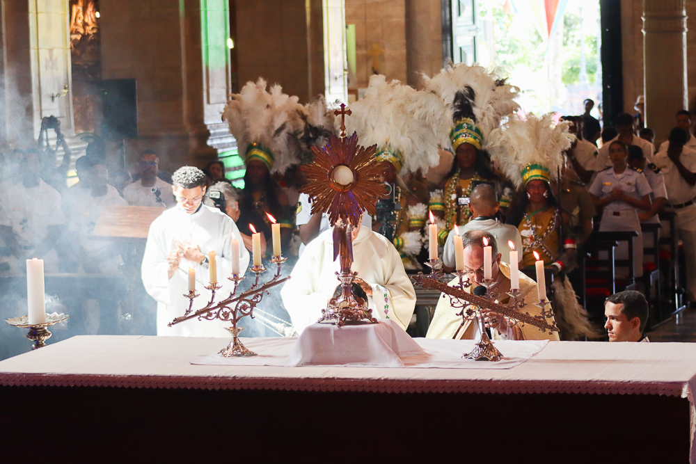 Durante a celebração, o Santíssimo Sacramento foi exposto para adoração. Os cantos litúrgicos foram entoados pelo coral da Basílica Santuário Senhor Bom Jesus do Bonfim, sob regência do maestro Ruffino. É importante destacar que o Te Deum é um hino tradicional da Liturgia das Horas, rezado aos domingos e nas solenidades. Composto por Santo Ambrósio e Santo Agostinho, no ano 387, em Milão, o cântico une louvor e súplica, proclamando: “Nós Vos louvamos, ó Deus, nós Vos bendizemos, Senhor. Toda a terra Vos adora”. Em seu desfecho, destaca-se o clamor por perdão e misericórdia: “Tende piedade de nós, Senhor. Desça sobre nós a tua misericórdia”.
