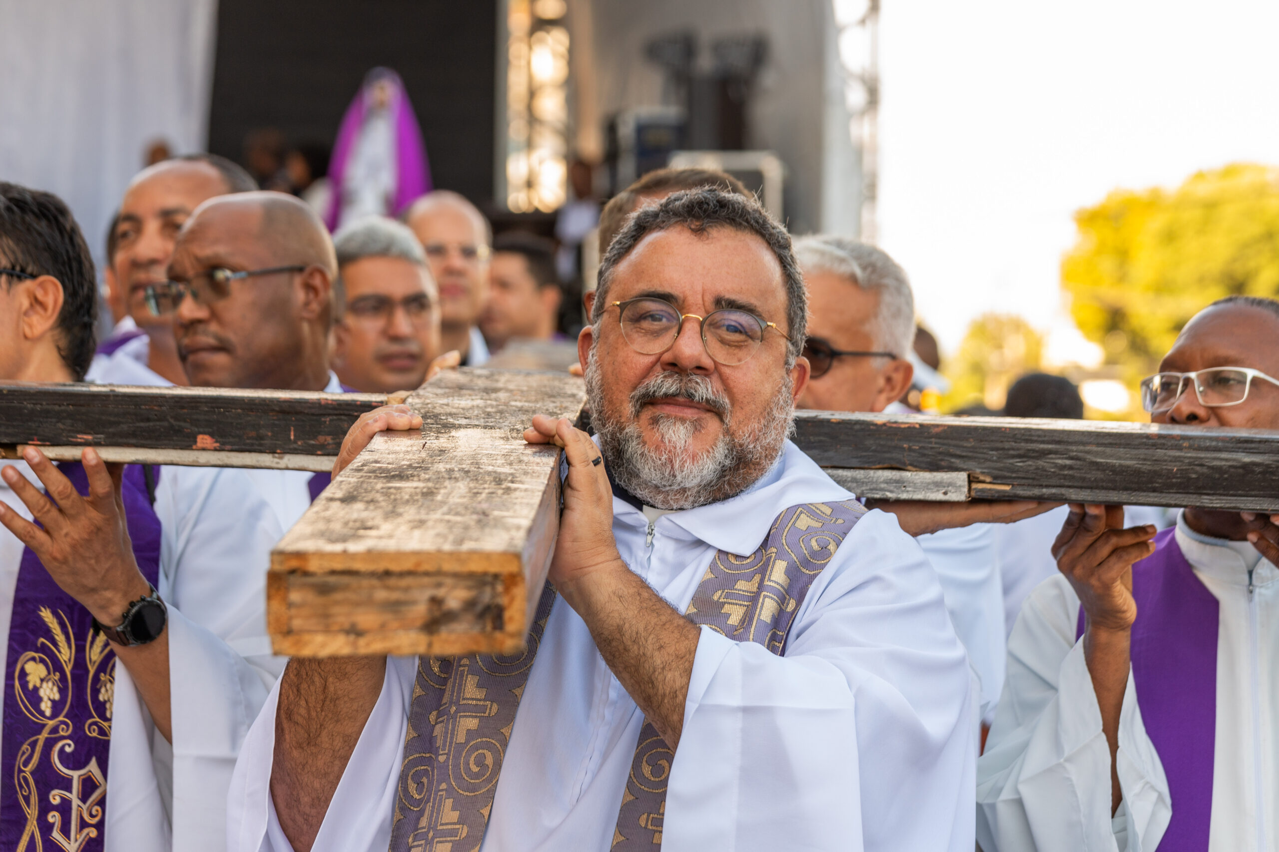 Com início em três locais diferentes – Basílica Santuário Nossa Senhora da Conceição da Praia, Matriz da Paróquia Nossa Senhora das Dores e Matriz da Paróquia Nossa Senhora dos Mares -, a programação teve início com a recitação do Terço, seguida da Santa Missa. logo após cada uma das Celebrações Eucarísticas, os fiéis iniciam a caminhada. Durante o percurso, Dom Sergio, padres, diáconos e leigos puderam carregar a cruz penitencial, com seis metros de comprimento e três metros de largura.