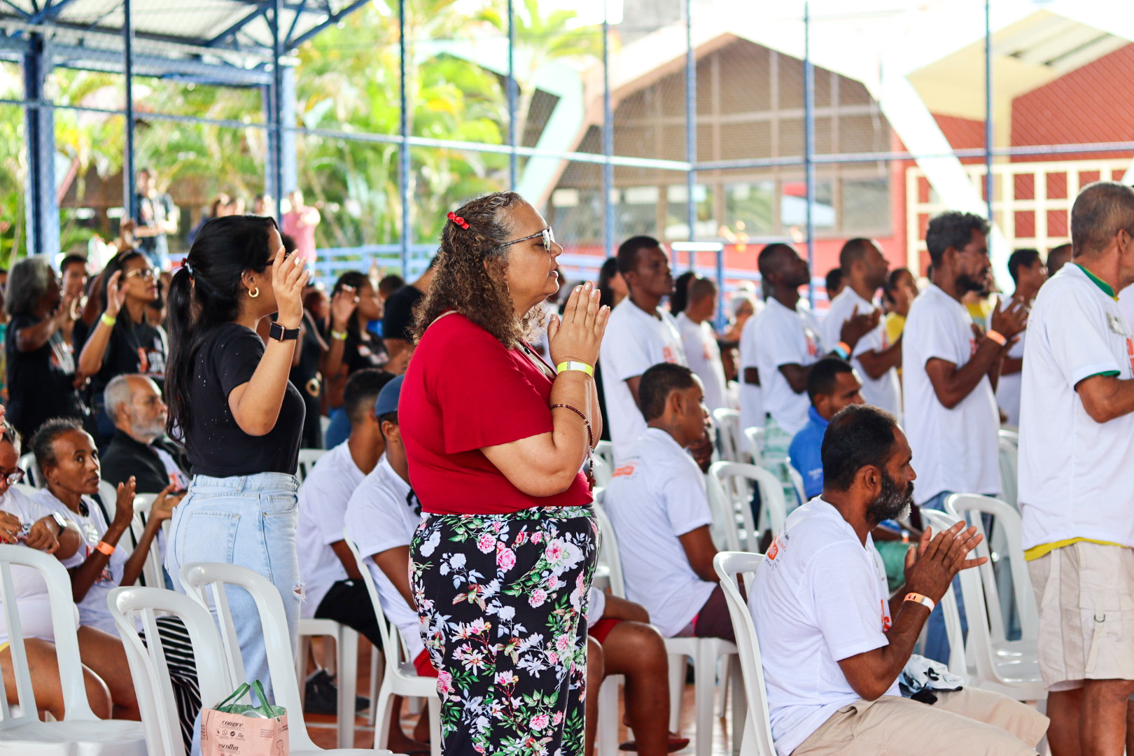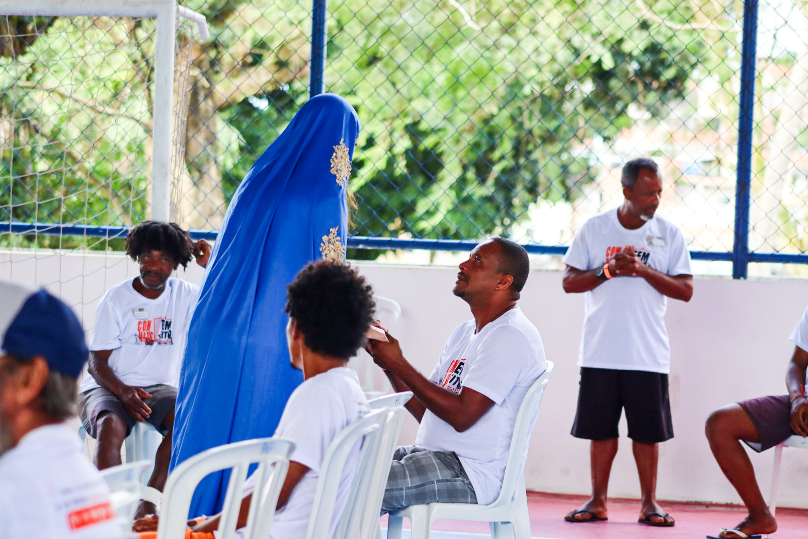 A Obra Lumen de Evangelização promoveu, neste sábado (17 de agosto), o encontro “Com Deus tem jeito!”, reunindo cerca de 150 pessoas em situação de rua na Escola Park Salvador (bairro Caixa D’Água). Na oportunidade, os homens, as mulheres e as crianças acompanhadas dos pais tiveram um dia diferente, marcado pela Palavra de Deus, por amor e por gestos concretos, como alimentação e banho.