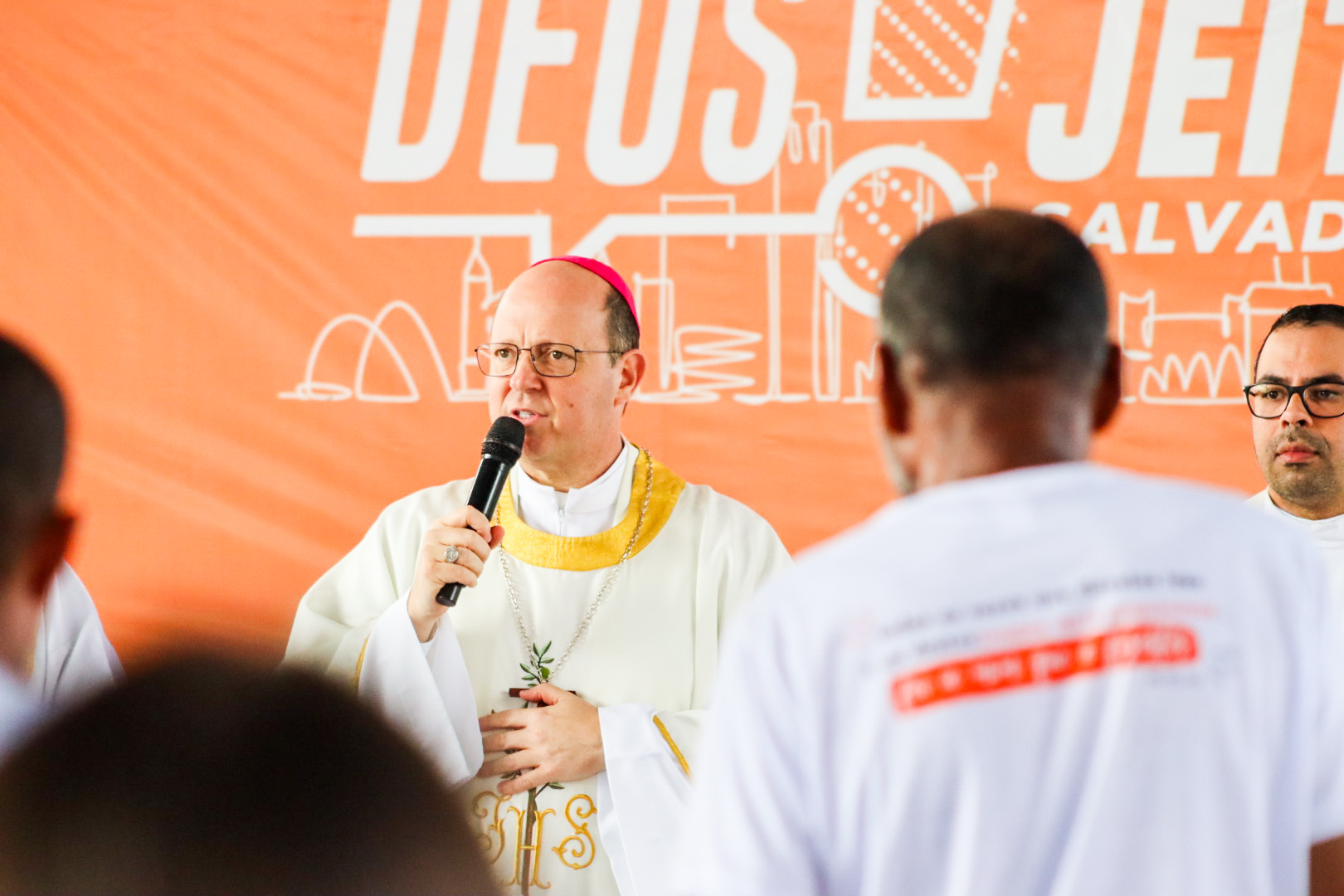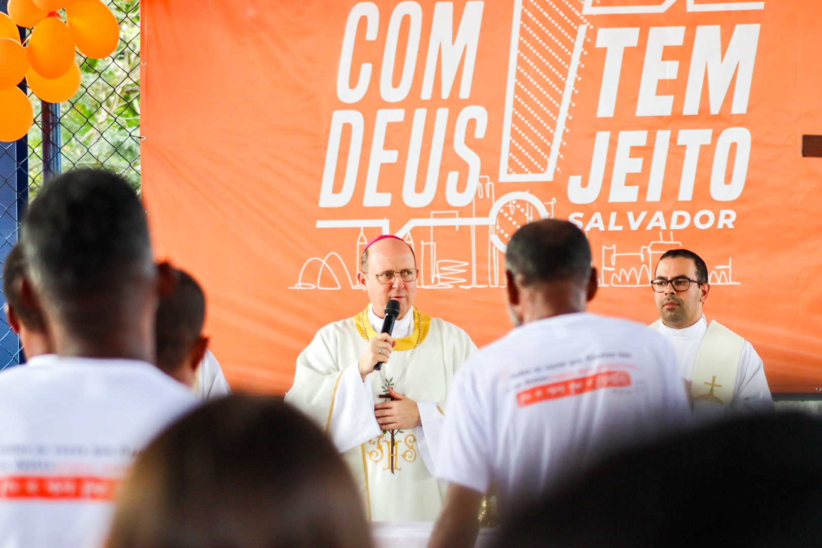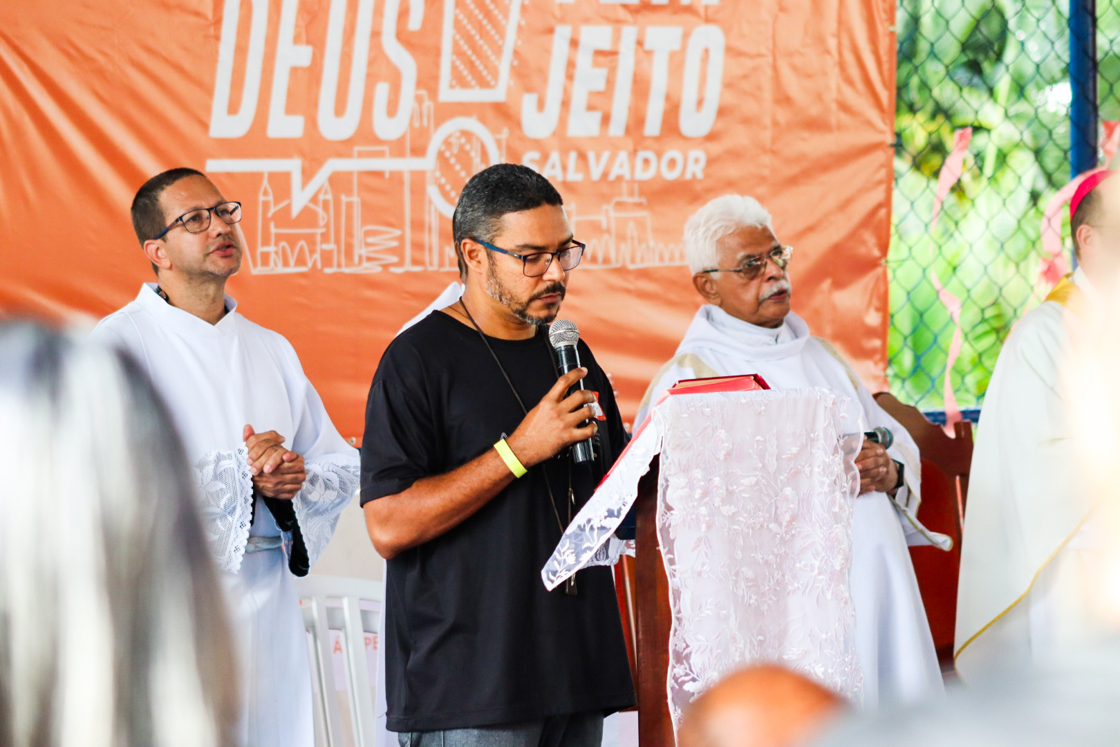 “O ‘Com Deus tem jeito’ é um evento a nível nacional, e essa é a 14ª edição que acontece aqui em Salvador. O encontro foi pensado justamente pra acolher várias pessoas em situação de rua. O nosso foco também é a evangelização da sociedade como um todo, dos voluntários e das pessoas às quais serão acolhidas. E, para nós, é uma alegria muito grande poder realizar esse encontro, um encontro do Cristo abandonado com o Cristo ressuscitado. A nossa alegria é tamanha que a gente não consegue nem expressar”, disse Ricardo Abrantes, membro e coordenador da equipe de Comunicação da Obra Lumen.