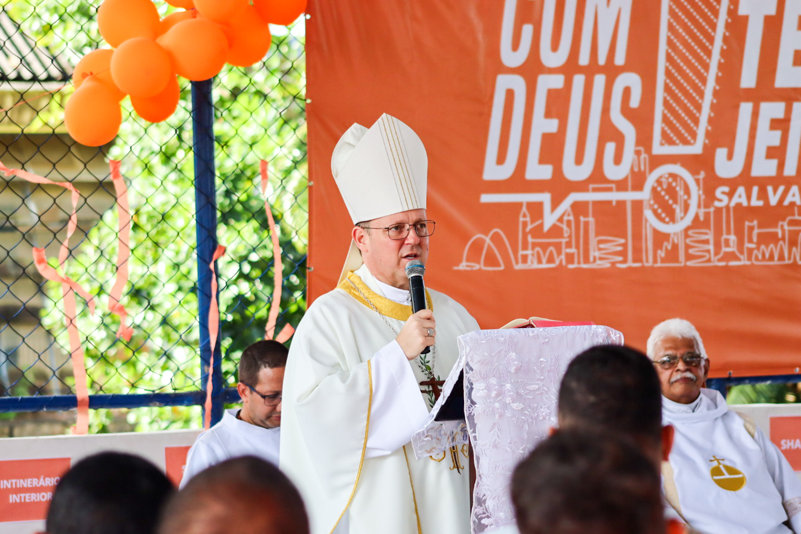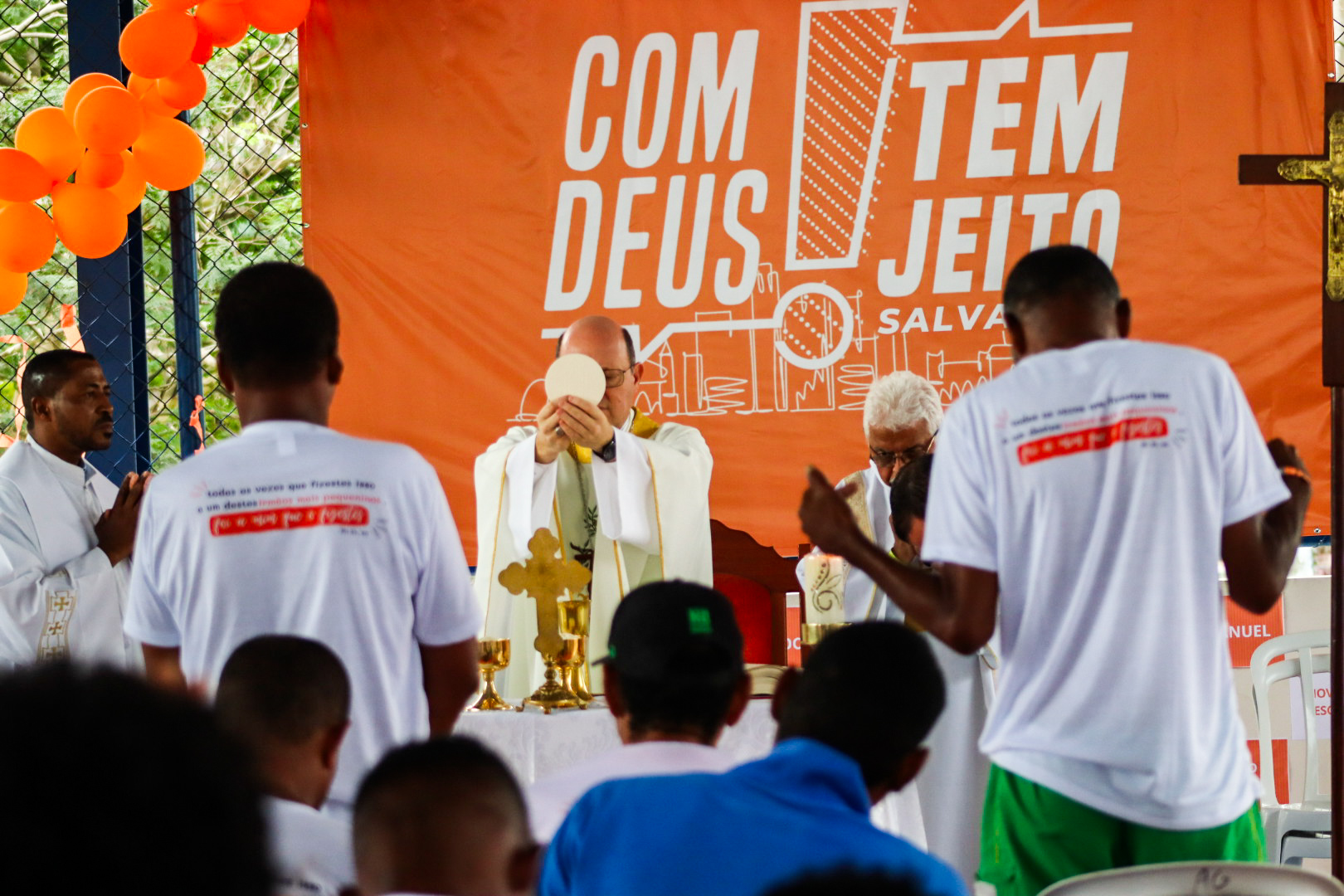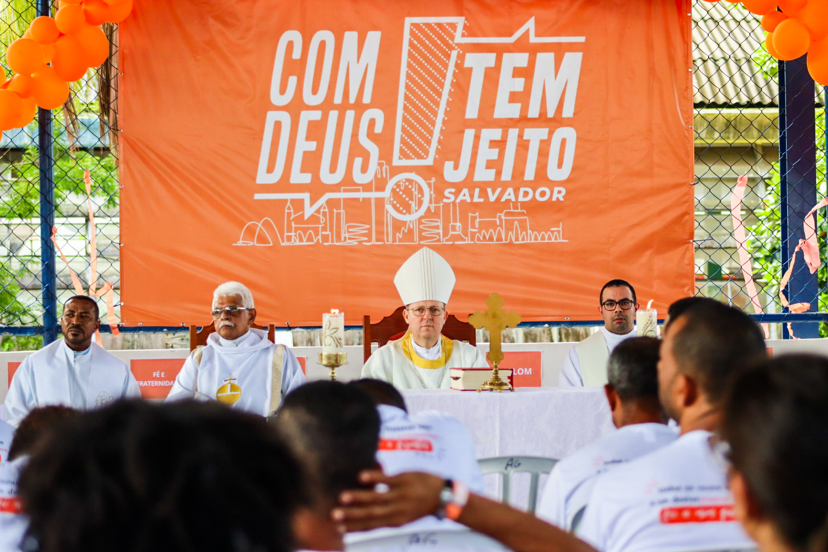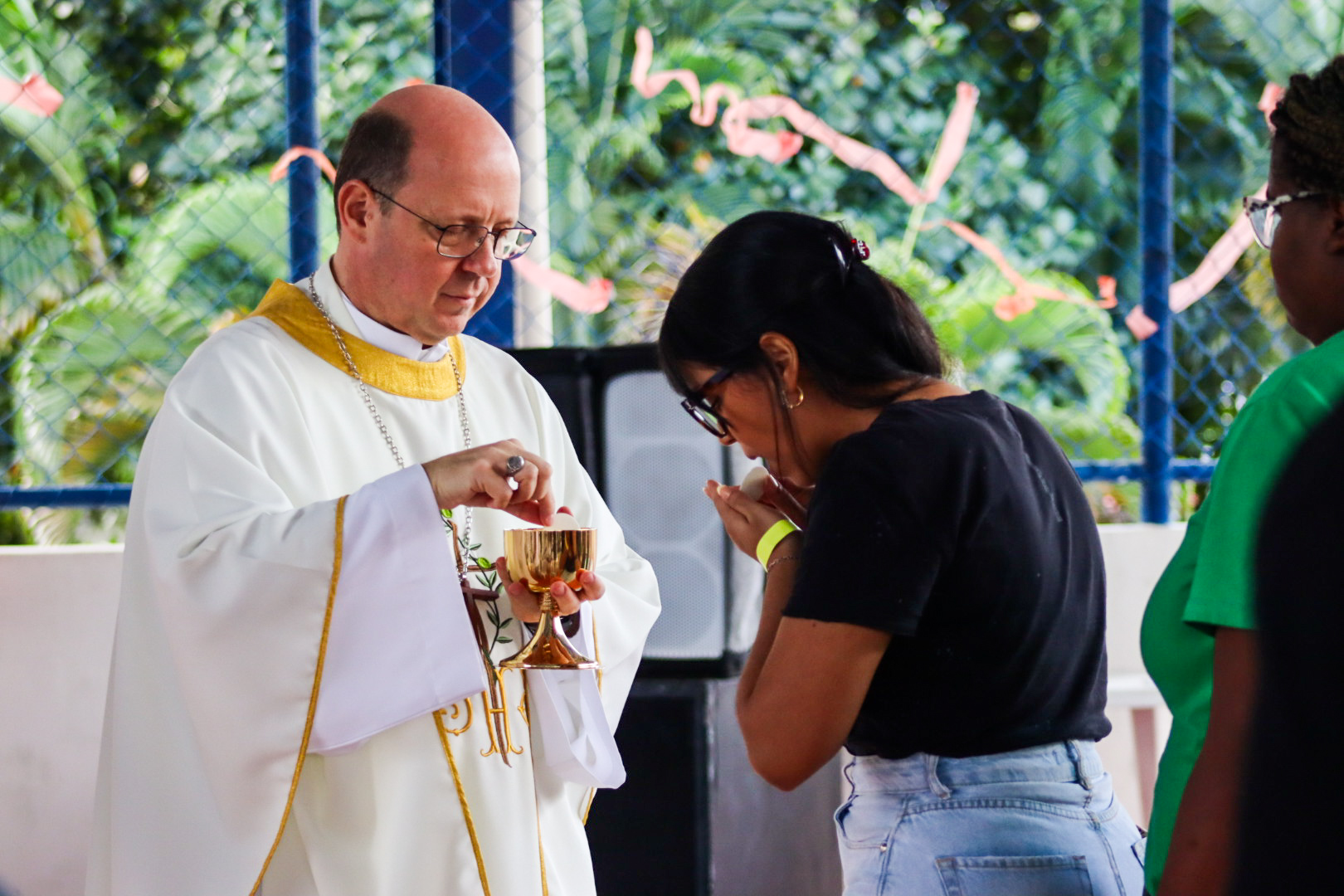O ponto alto do encontro foi a Santa Missa presidida pelo bispo auxiliar, Dom Valter Magno de Carvalho. “Ninguém é excluído do amor de Deus, por isso, com Ele tudo nessa vida tem jeito, e sem Ele nada nós podemos. Precisamos orientar o nosso coração para Deus, na certeza que o Seu amor é capaz de resgatar as pessoas para uma vida nova. Com Deus tem jeito!”, disse.