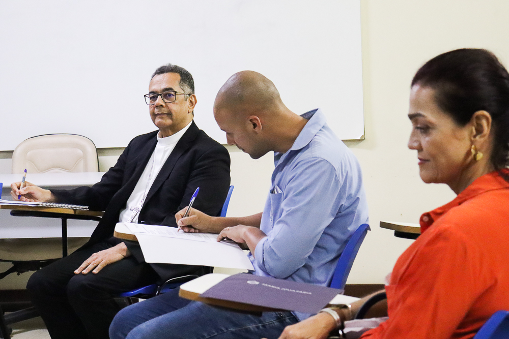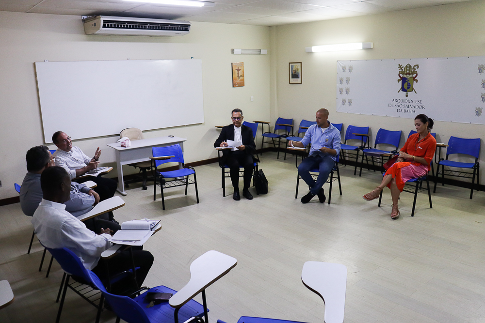 Membros da Comissão Arquidiocesana de Bens Culturais da Igreja realizaram a primeira reunião neste ano de 2024, na tarde desta quarta-feira, 13 de março. O encontro aconteceu no Centro Arquidiocesano de Pastoral, da Cúria Bom Pastor, e contou com as presenças do bispo auxiliar da Arquidiocese de Salvador e moderador da Cúria, Dom Dorival Barreto; do vigário episcopal para a Cultura, Educação e Comunicação, padre Manoel Filho; do coordenador, vice-coordenador e secretário da Comissão, padre Edilson Bispo Conceição, Irmão José Jorge Mendes Guedes e Irmão Márcio Prado Galvão de Souza, respectivamente.