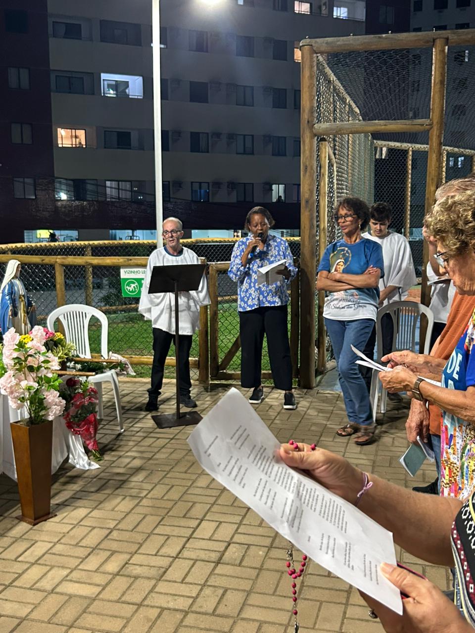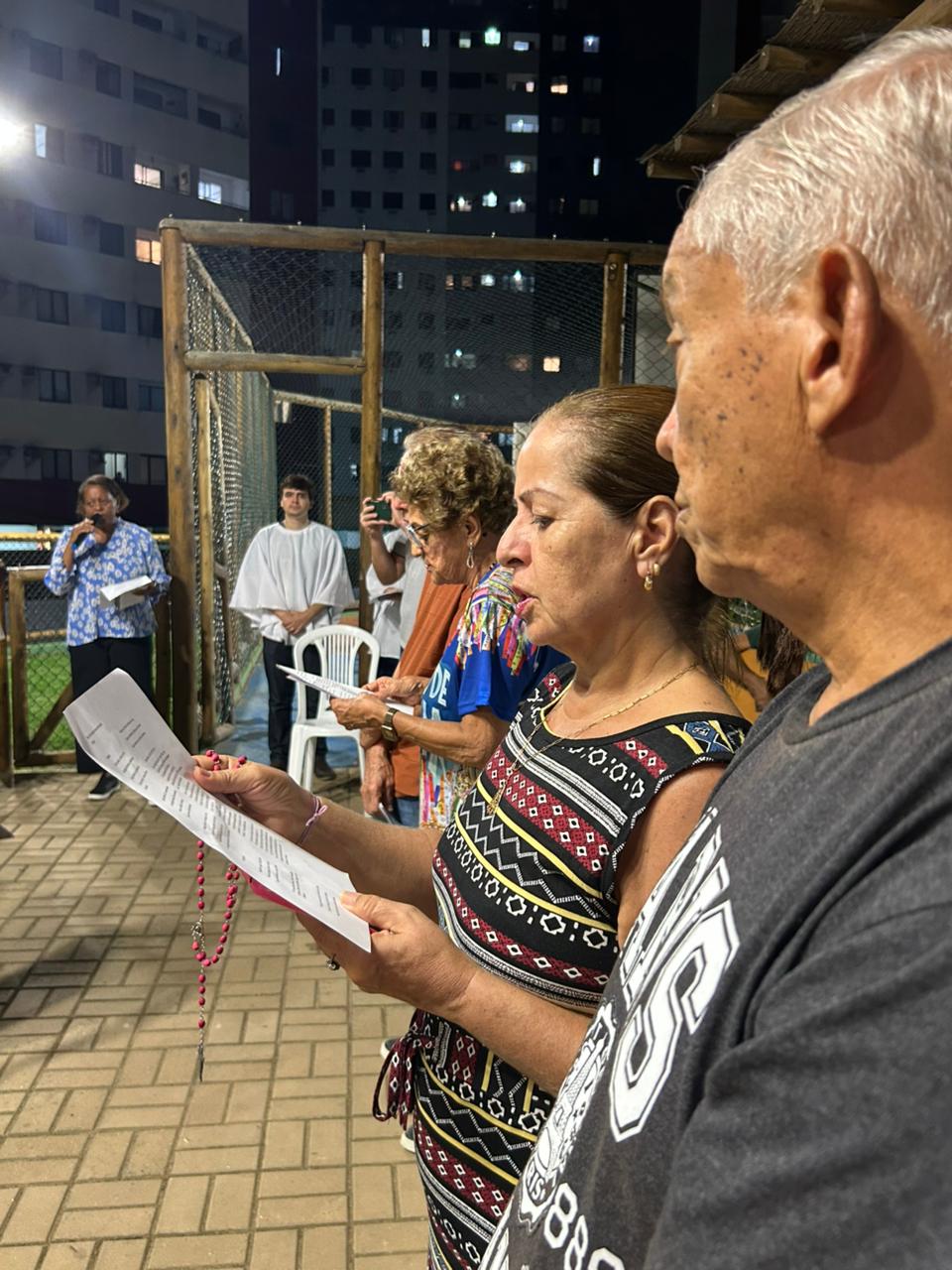 A história da comunidade teve início em maio de 2024, a partir da iniciativa das Irmãs Imaculatinas, que passaram a rezar o Santo Terço nas ruas e residências da Rua Parambu, sob a coordenação da Irmã Perseverança. O movimento de fé ganhou força com a sugestão da moradora Ângela Maria Oliveira, que propôs levar a oração para a praça do bairro. A solicitação foi encaminhada à construtora BRF, responsável pela área, que autorizou o uso do espaço e ofereceu suporte logístico, com a instalação de toldo e cadeiras para os participantes.