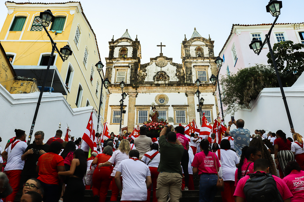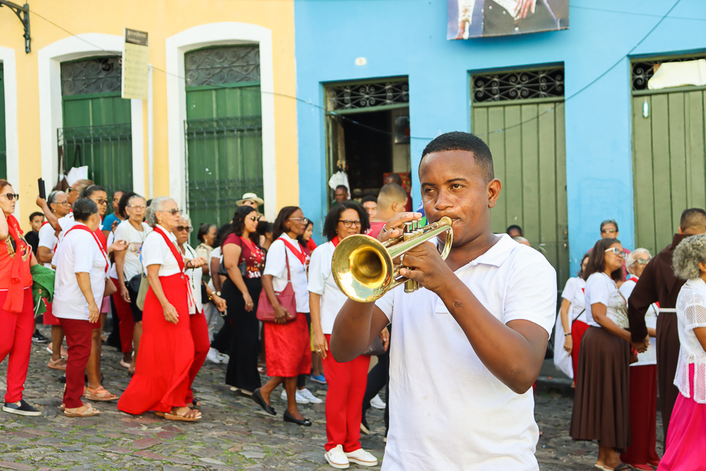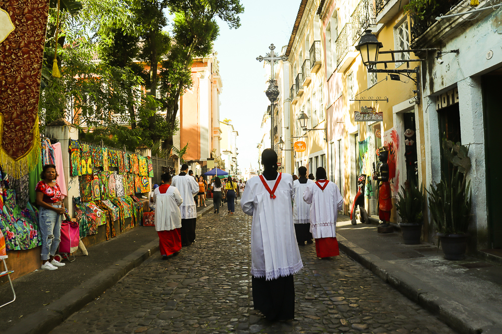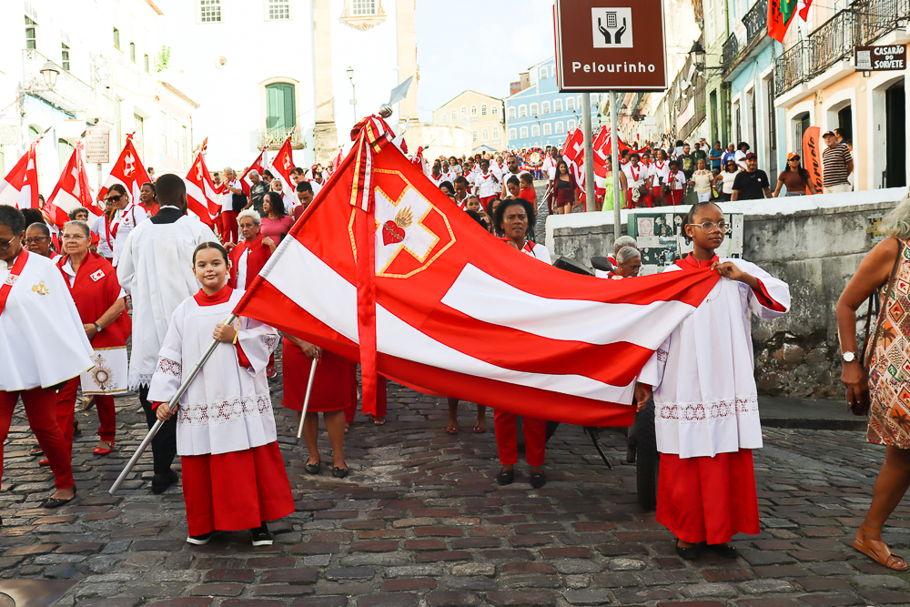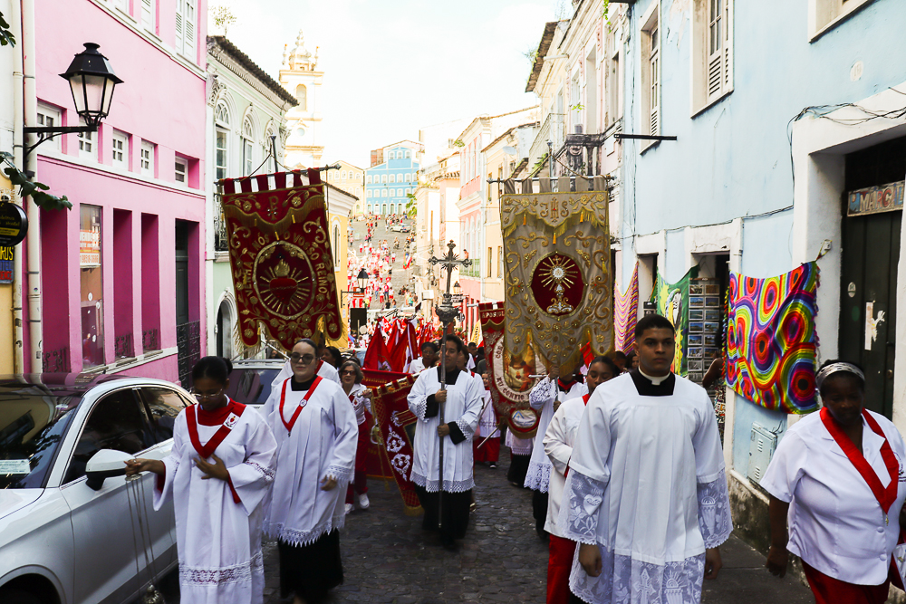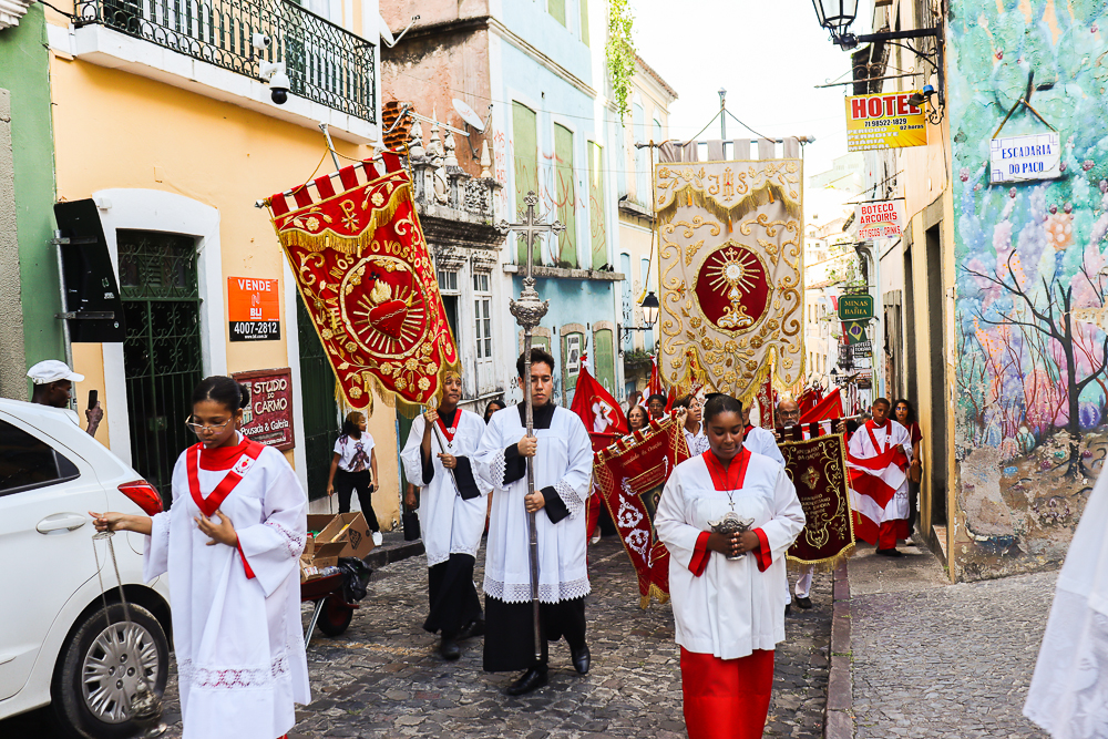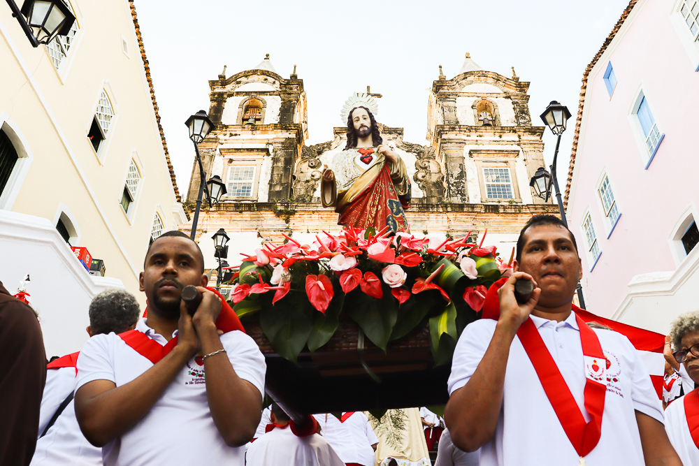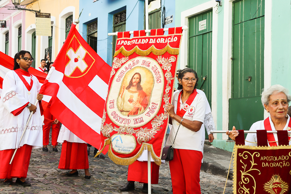Com a imagem do Sagrado Coração de Jesus sobre um andor, membros do Apostolado da Oração (AO) e do Movimento Eucarístico Jovem (MEJ) realizaram uma emocionante procissão pelas ruas do Centro Histórico de Salvador, no último sábado, 27 de julho. Acompanhados por uma fanfarra, homens, mulheres, jovens e crianças saíram, às 15h, da Igreja São Pedro dos Clérigos e seguiram até a Igreja Santíssimo Sacramento da Rua do Passo – sede da Rede Mundial de Oração pelo Papa, na capital baiana. Esta programação, que foi precedida de novena (de 17 a 25 de julho), fez parte da Festa do Santíssimo Sacramento e do Sagrado Coração de Jesus.