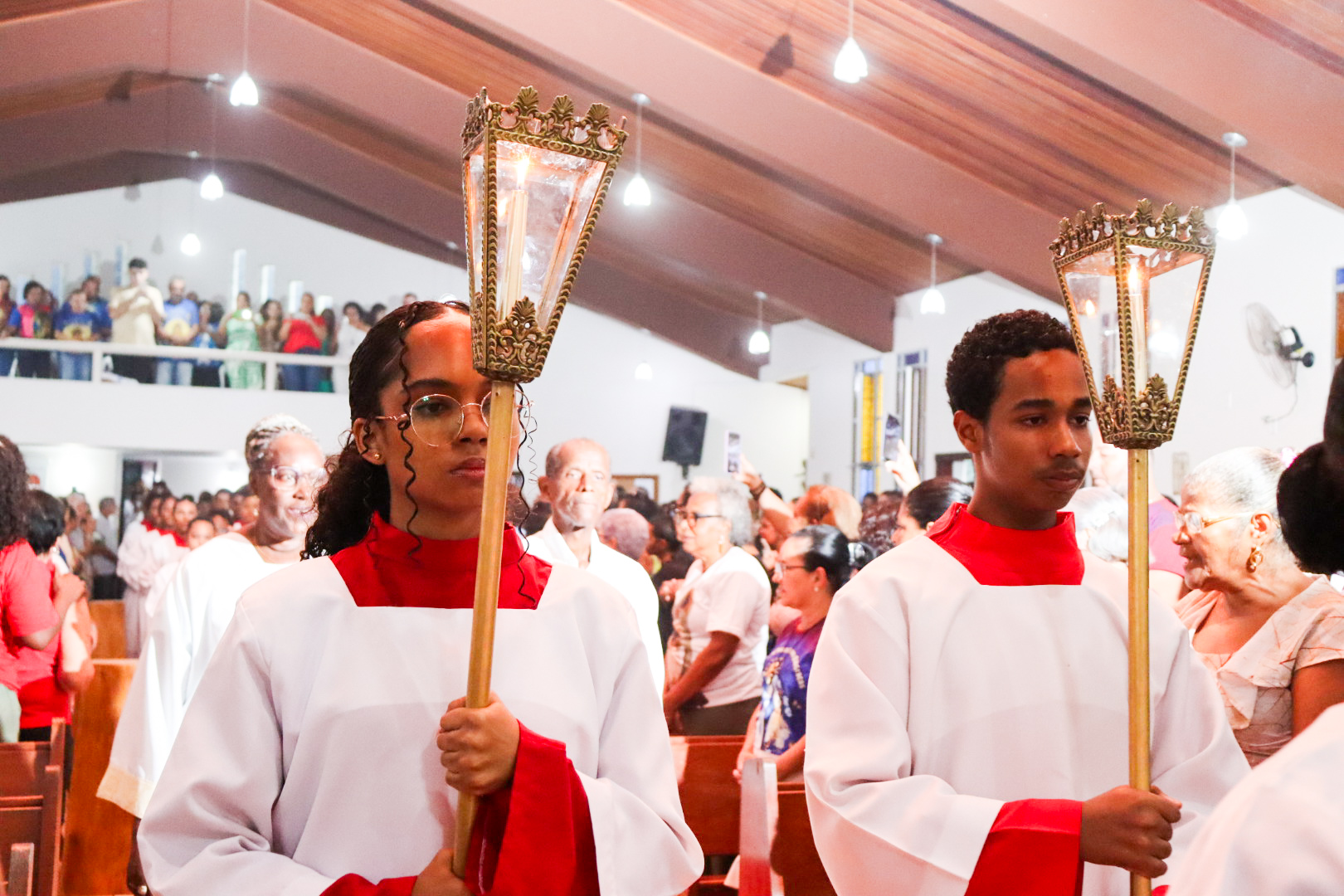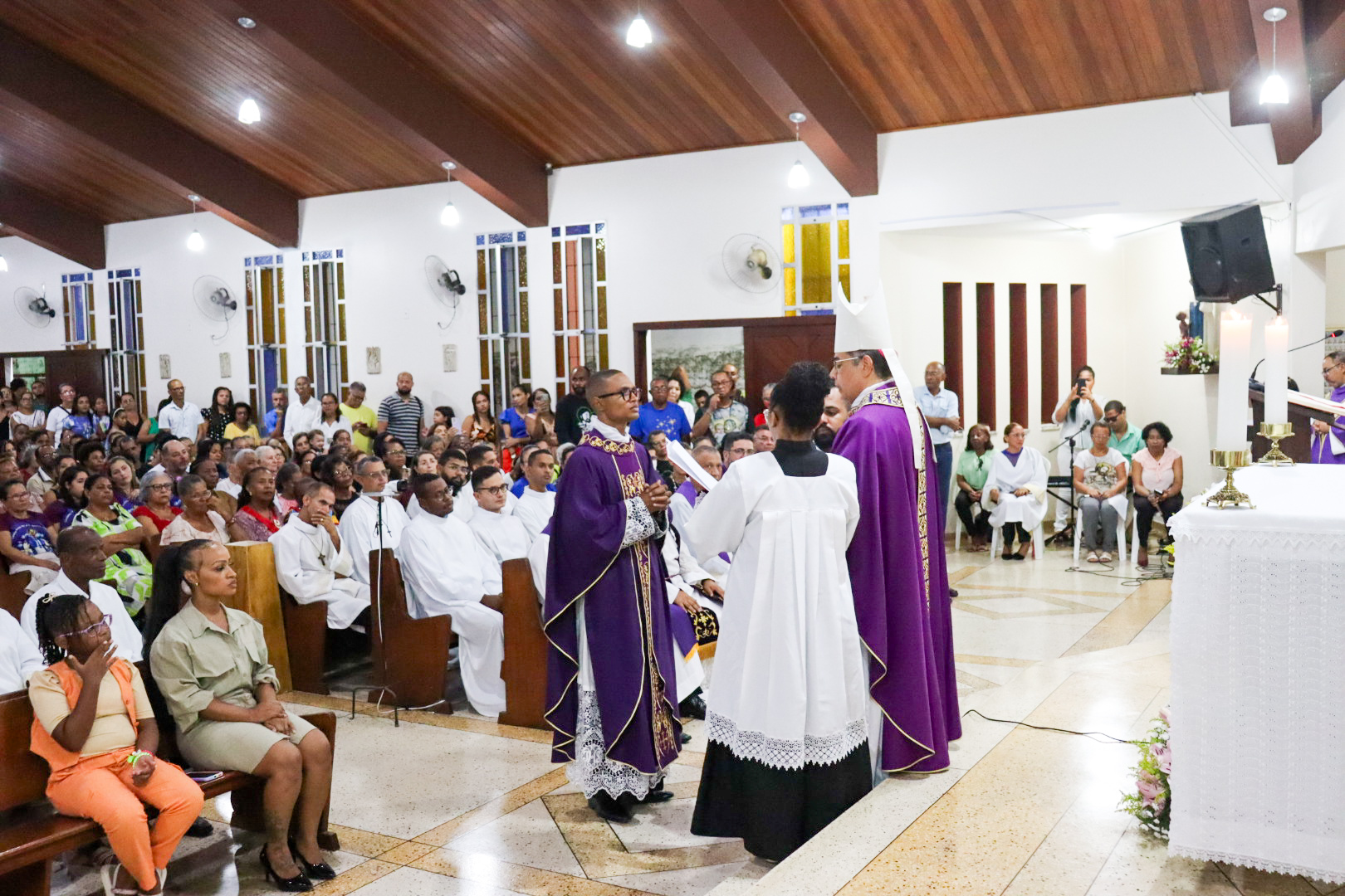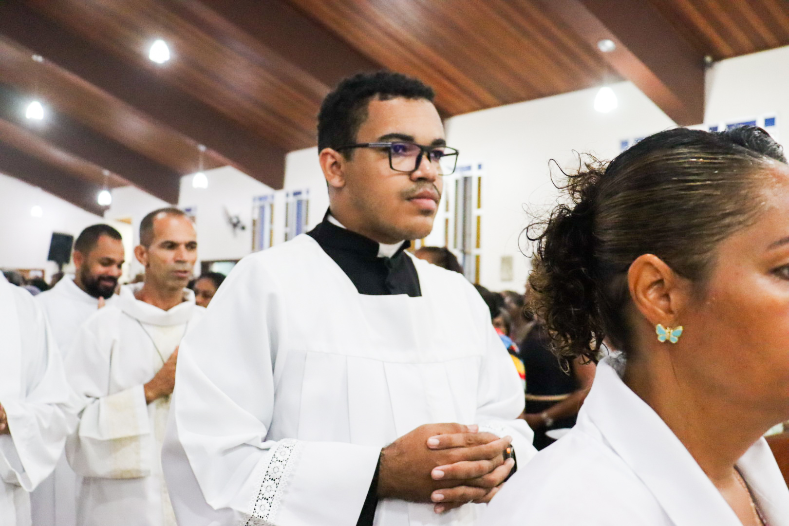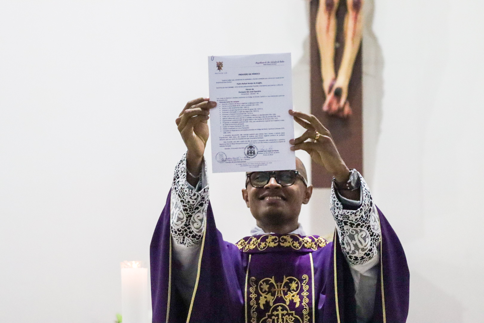 A Matriz da Paróquia São José Operário, em Pernambués, ficou lotada na noite de domingo, 18 de fevereiro. Ansiosos, os paroquianos queriam testemunhar a posse do novo pároco: padre Rafael Aragão, presidida pelo bispo auxiliar da Arquidiocese de São Salvador da Bahia, Dom Dorival Barreto. “Hoje, padre Rafael, recebendo essa missão como pároco, a Igreja lhe concede a graça de, como pastor, poder ensinar, governar e santificar essa porção do povo de Deus que lhe é confiada”, disse Dom Dorival [clique aqui e confira a cobertura].