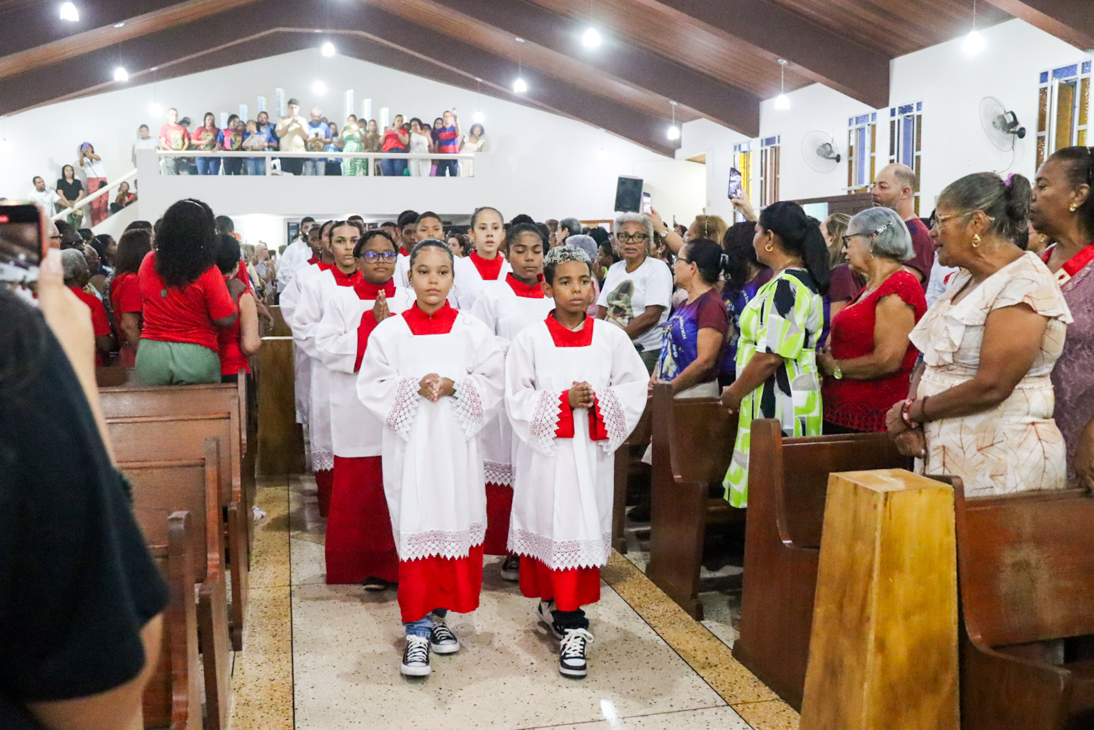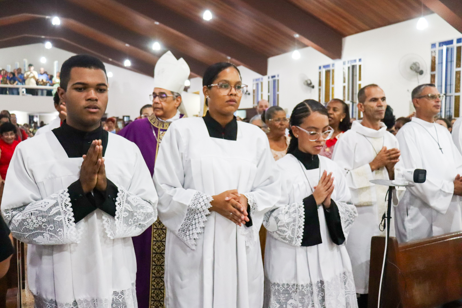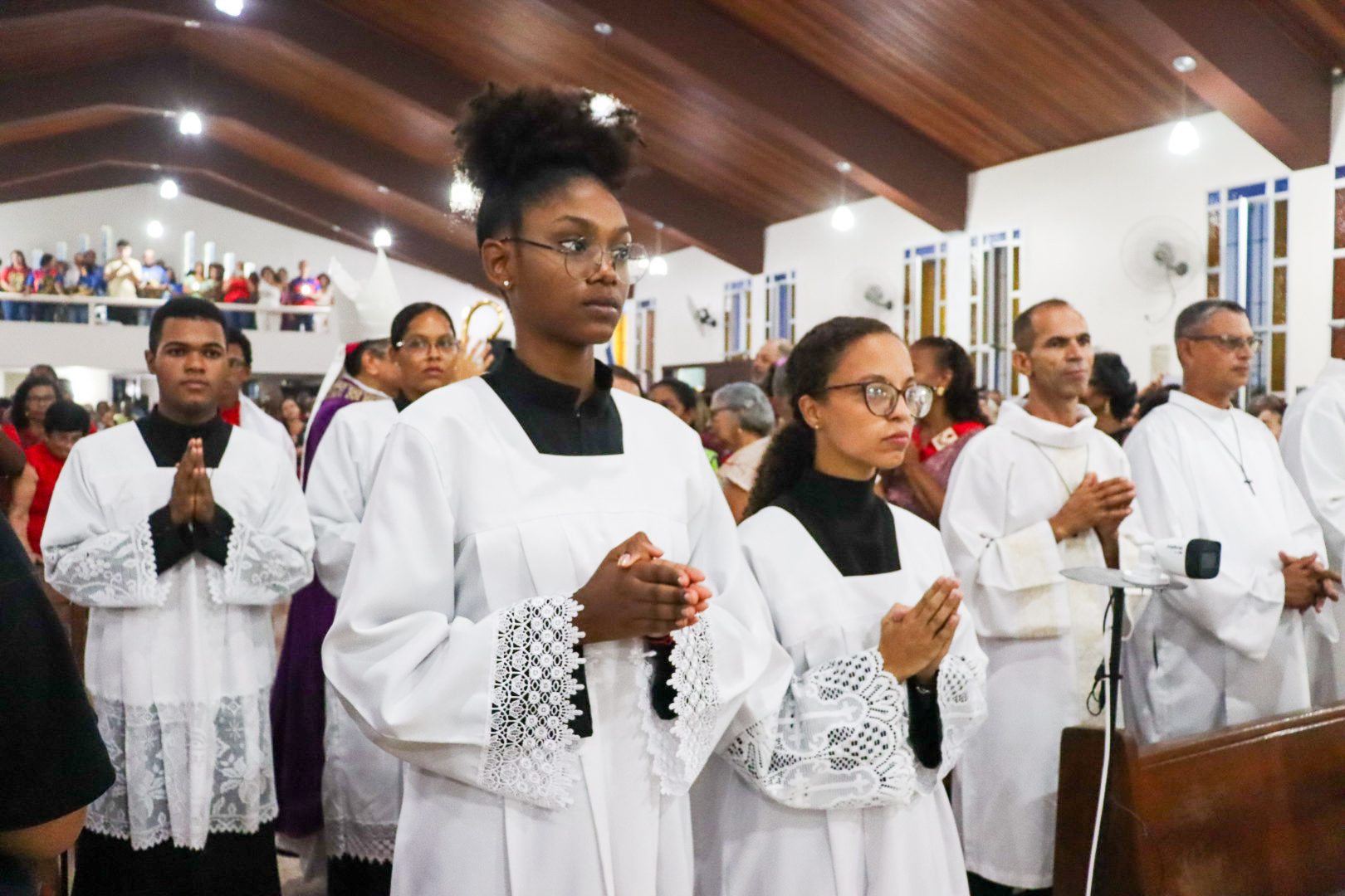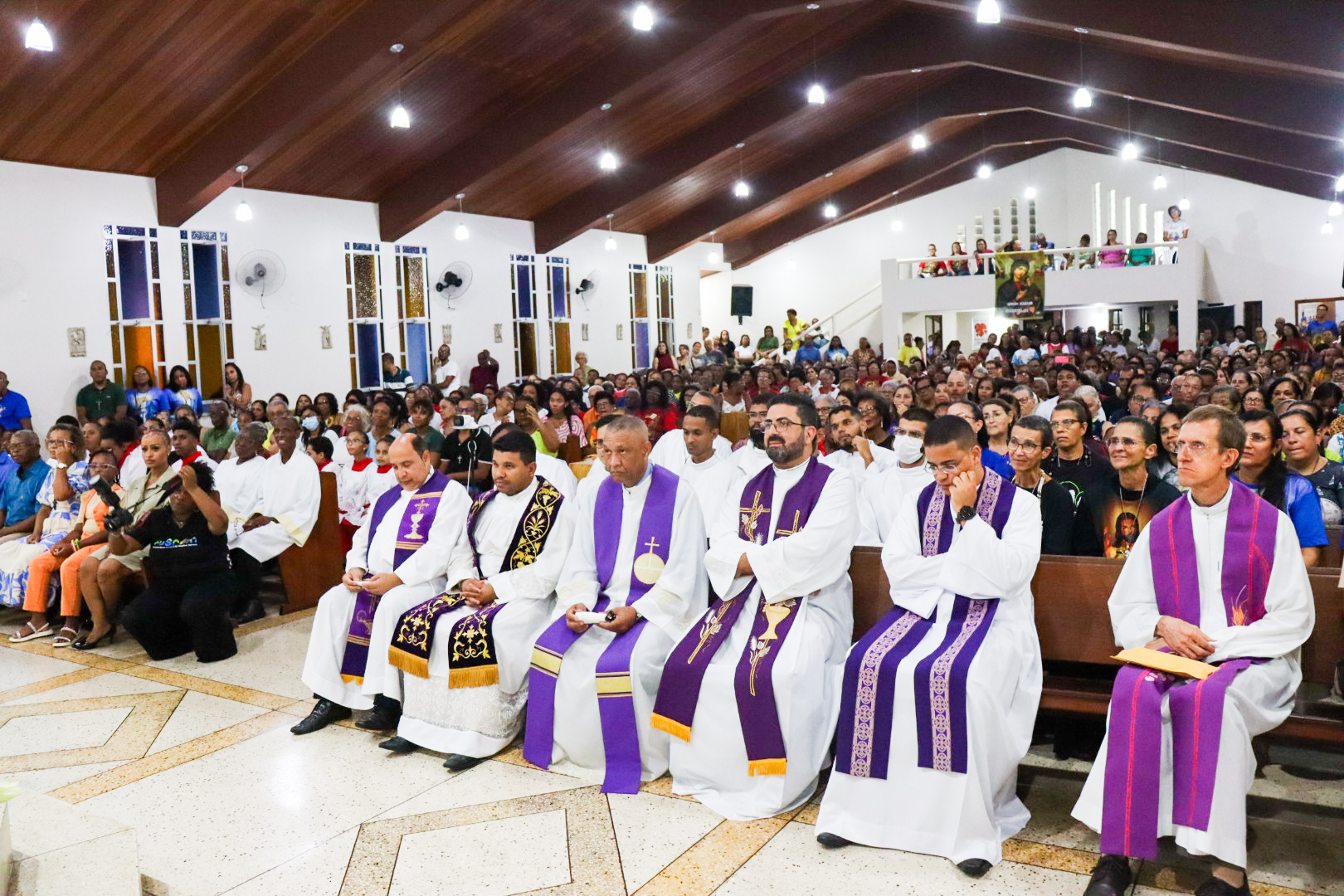 A Matriz da Paróquia São José Operário, em Pernambués, ficou lotada na noite de domingo, 18 de fevereiro. Ansiosos, os paroquianos queriam testemunhar a posse do novo pároco: padre Rafael Aragão, presidida pelo bispo auxiliar da Arquidiocese de São Salvador da Bahia, Dom Dorival Barreto. “Hoje, padre Rafael, recebendo essa missão como pároco, a Igreja lhe concede a graça de, como pastor, poder ensinar, governar e santificar essa porção do povo de Deus que lhe é confiada”, disse Dom Dorival [clique aqui e confira a cobertura].