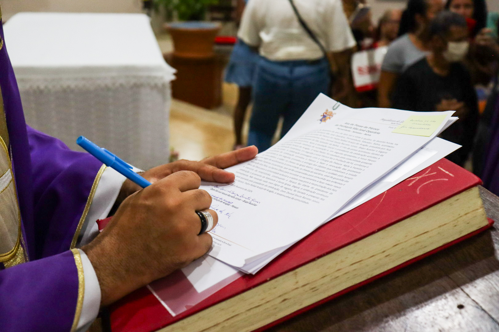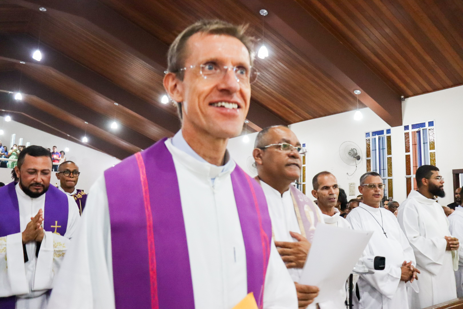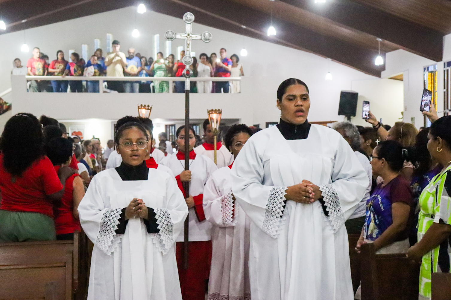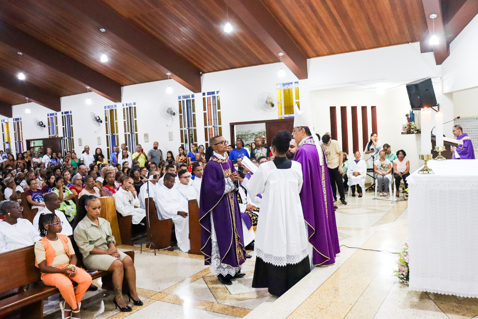 A Matriz da Paróquia São José Operário, em Pernambués, ficou lotada na noite de domingo, 18 de fevereiro. Ansiosos, os paroquianos queriam testemunhar a posse do novo pároco: padre Rafael Aragão, presidida pelo bispo auxiliar da Arquidiocese de São Salvador da Bahia, Dom Dorival Barreto. “Hoje, padre Rafael, recebendo essa missão como pároco, a Igreja lhe concede a graça de, como pastor, poder ensinar, governar e santificar essa porção do povo de Deus que lhe é confiada”, disse Dom Dorival [clique aqui e confira a cobertura].