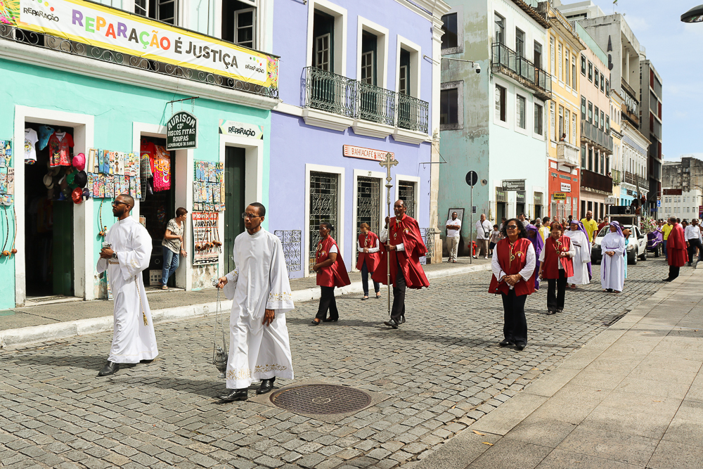 Hoje, Quarta-feira Santa (27), aconteceu a Procissão do Encontro com as imagens do Senhor Bom Jesus dos Passos, que saiu da Igreja Nossa Senhora da Ajuda e percorreu ruas do Centro Histórico de Salvador até encontrar com a imagem de Nossa Senhora das Dores. Para conferir a cobertura, clique aqui.