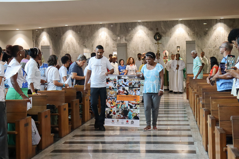Na Arquidiocese de São Salvador da Bahia, organizada e promovida pela Ação Social Arquidiocesana (ASA), em parceria com a Cáritas Regional Nordeste 3 e com a Pastoral Arquidiocesana Povo de Rua, a celebração do Dia Mundial dos Pobres teve uma agenda especial com o objetivo de refletir sobre a situação da pobreza no mundo, bem como de conclamar toda a sociedade a unir esforços para amenizar este triste cenário que afeta cerca de 735 milhões de pessoas. Abaixo, confira fotos ou clique aqui para assistir a matéria.