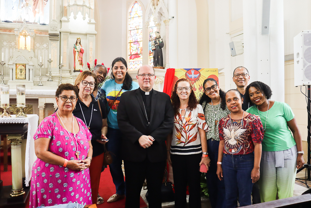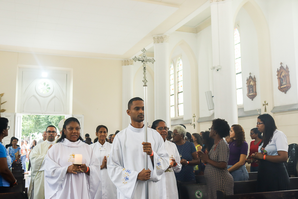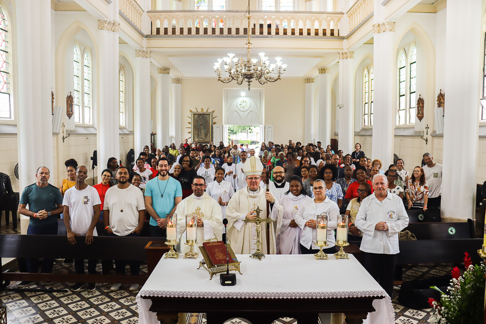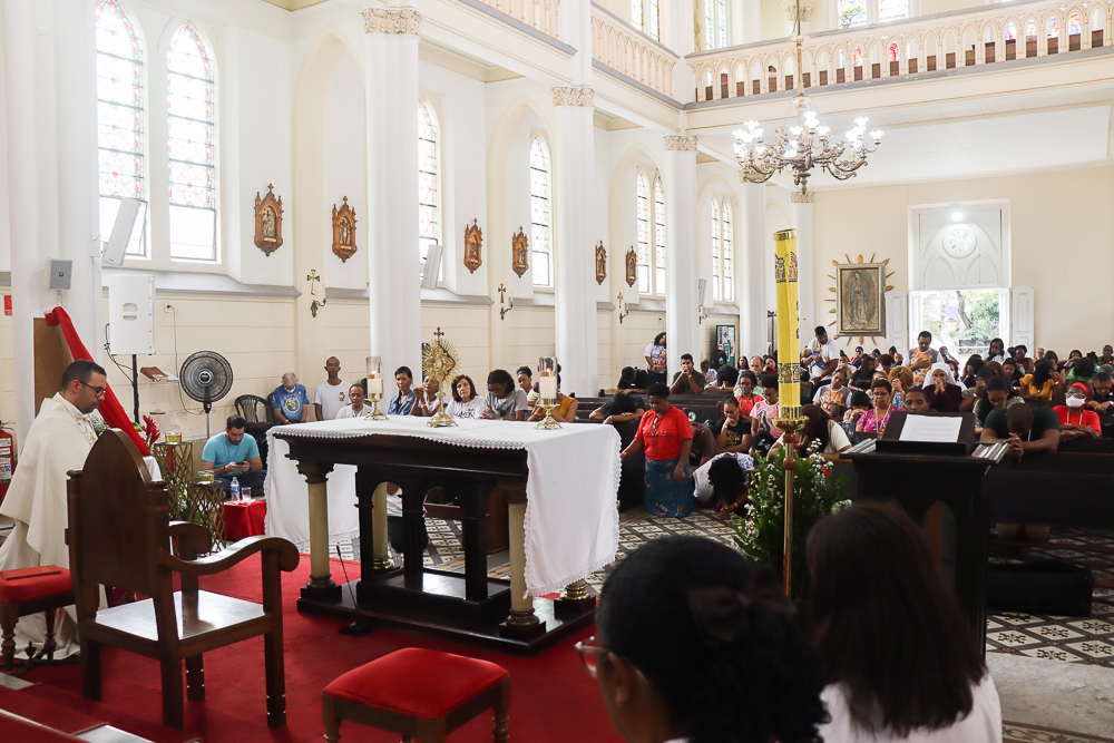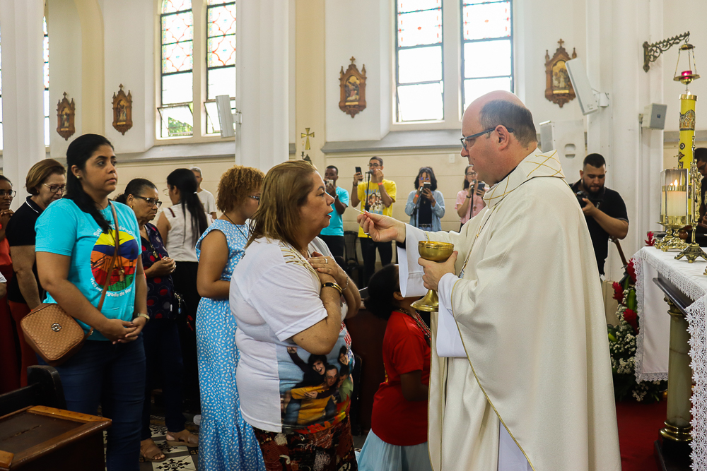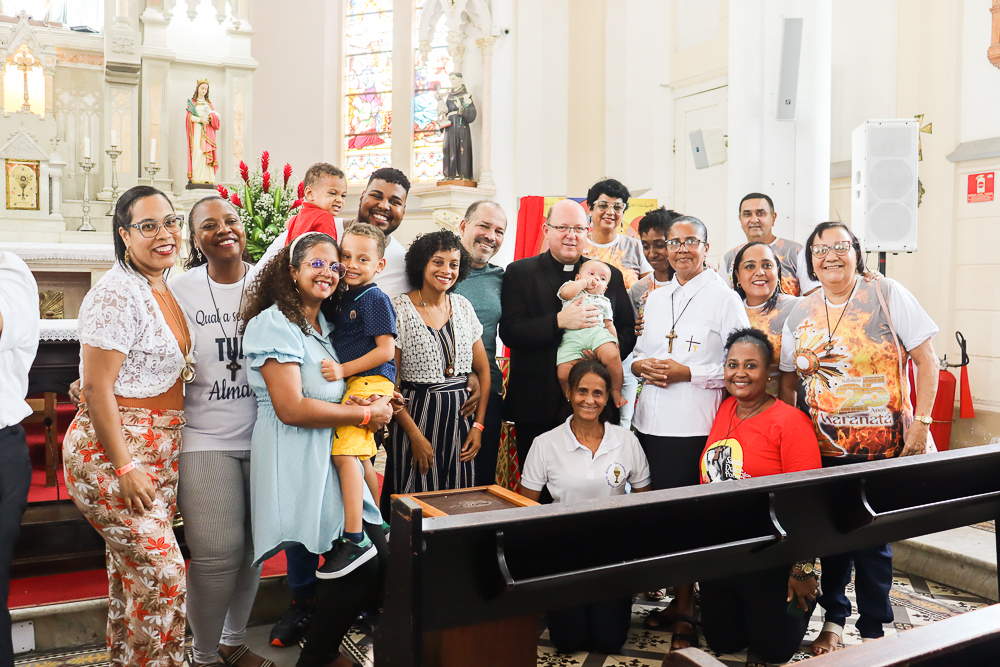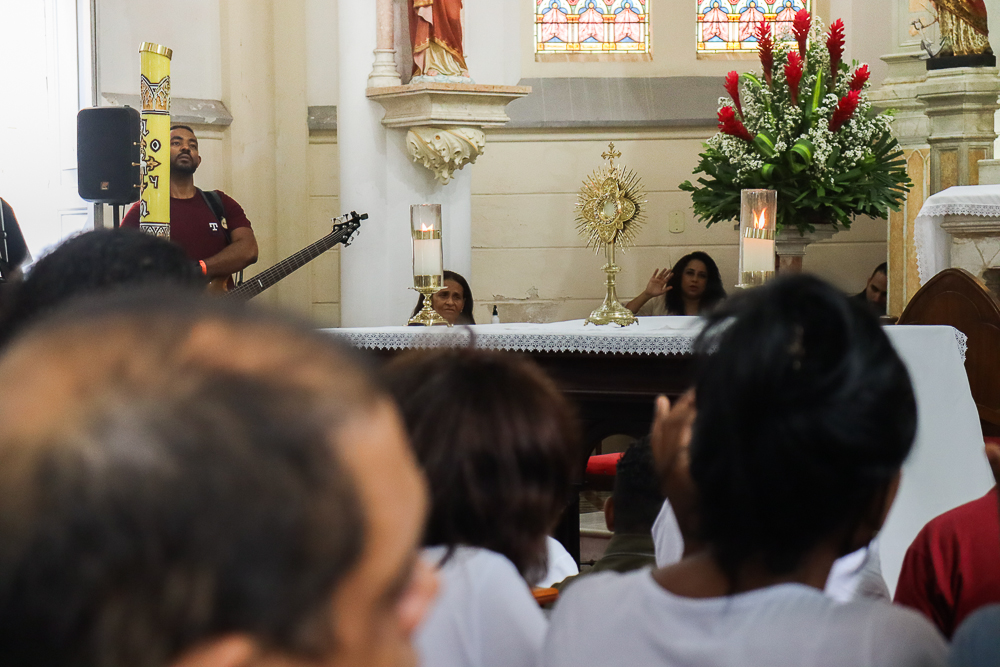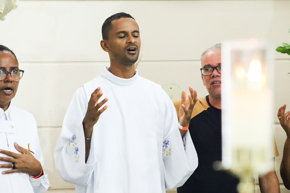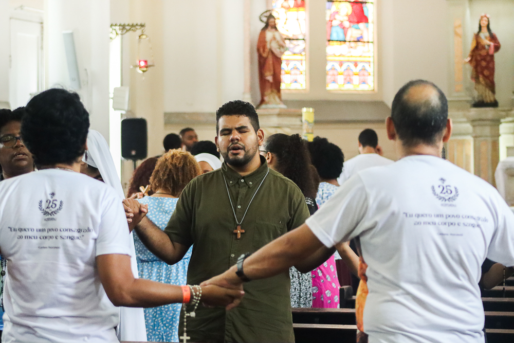 O Conselho Arquidiocesano das Novas Comunidades realizou, no dia 18 de maio, o Encontro em preparação para a Solenidade de Pentecostes: a Festa da Igreja. Reunidos, das 8h às 17h, na Igreja Sagrada Família – Cúria Metropolitana Bom Pastor -, os fiéis participaram de momentos de oração, louvor, pregações e da Santa Missa, que foi presidida pelo bispo auxiliar da Arquidiocese de São Salvador da Bahia, Dom Valter Magno de Carvalho, e concelebrada pelo assistente eclesiástico das Novas Comunidades, padre Ailan Simões. Para encerrar, a cantora Olívia Ferreira. Confira fotos!