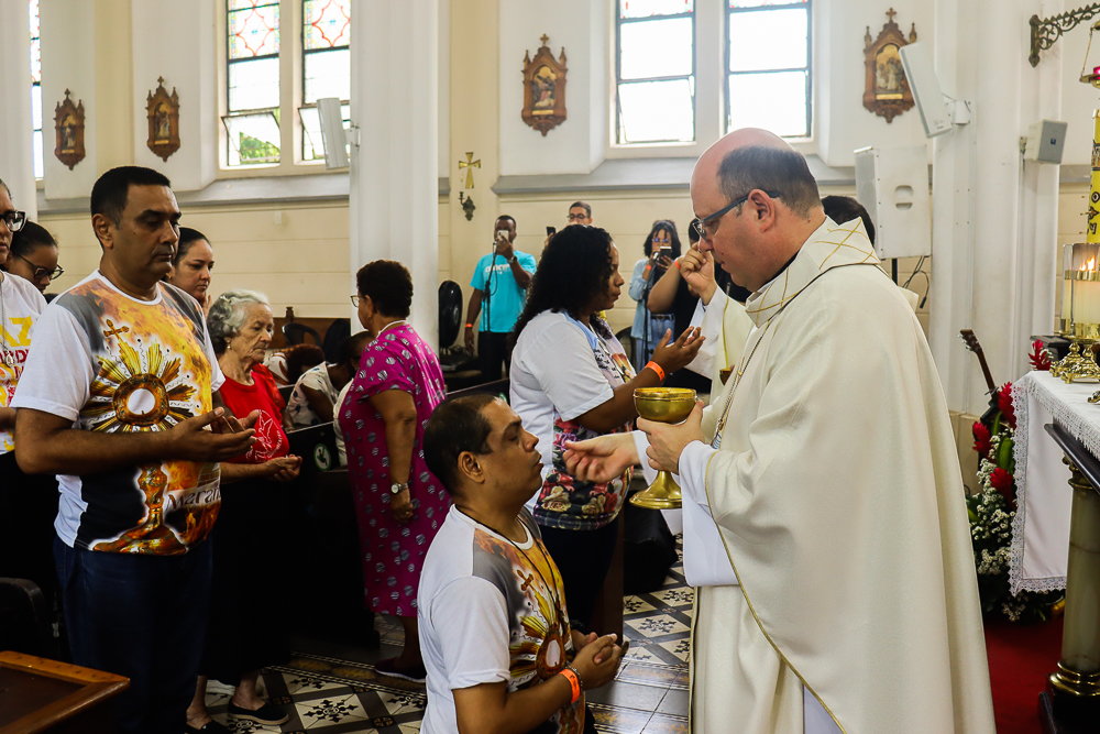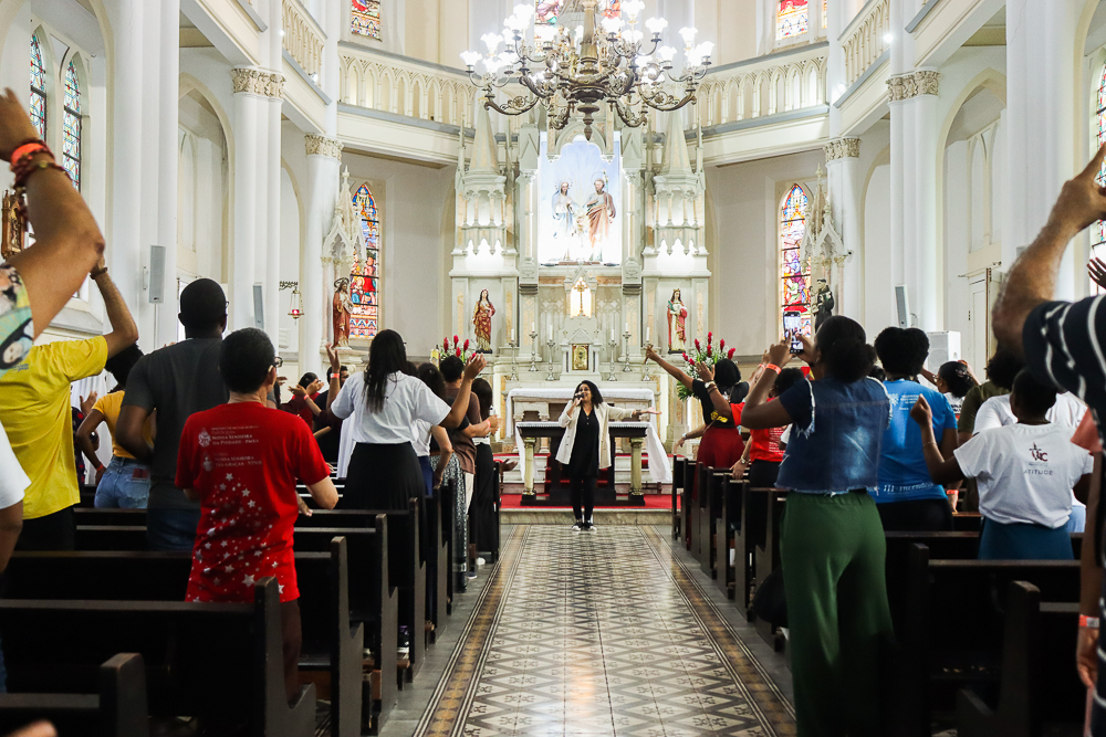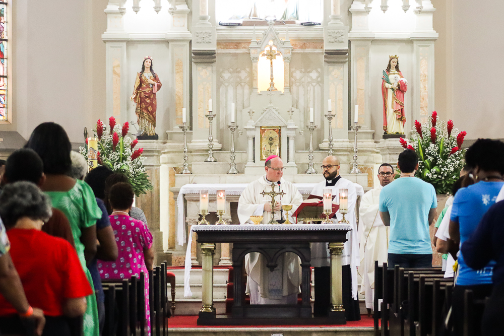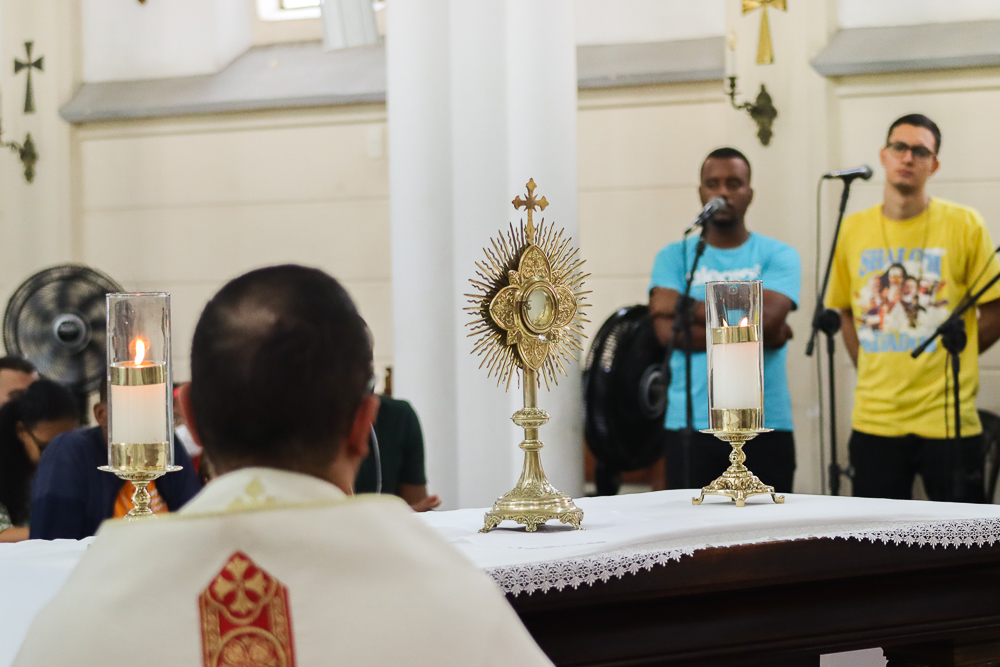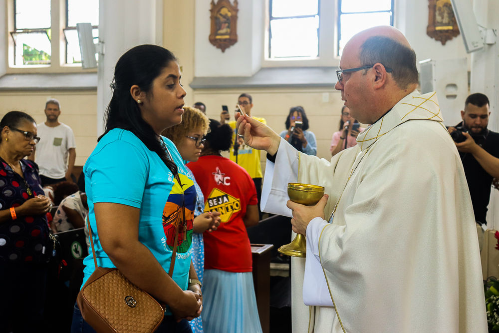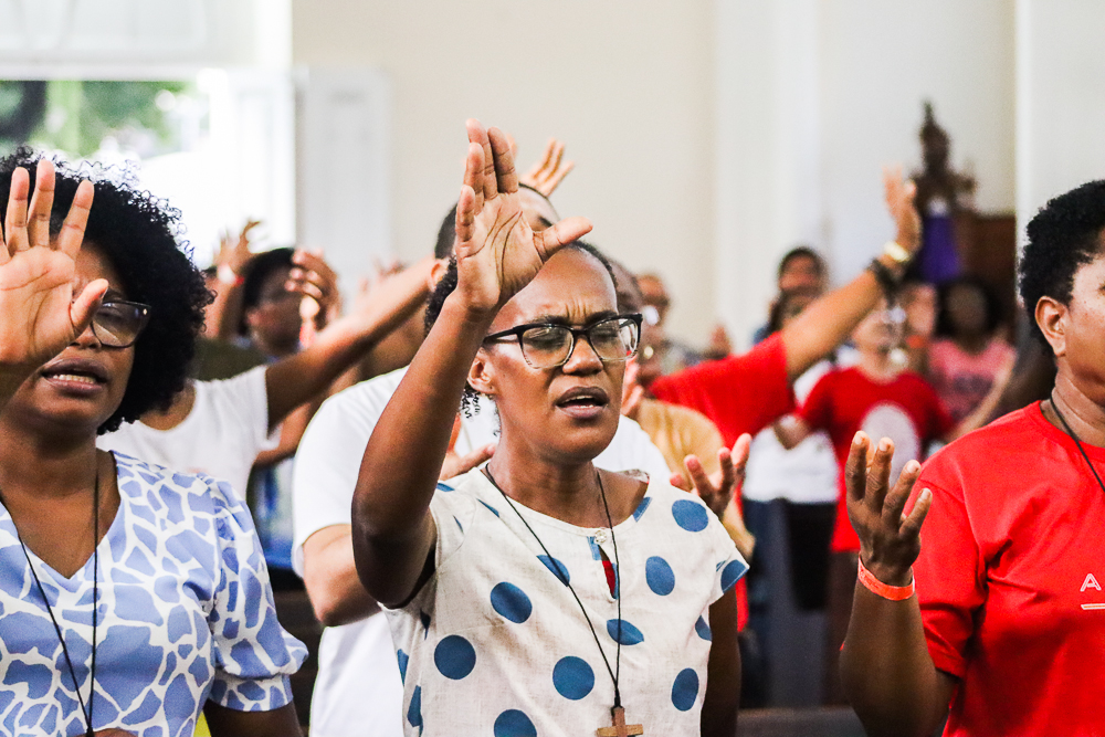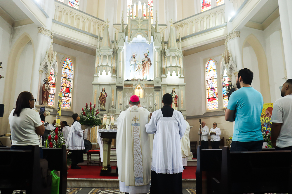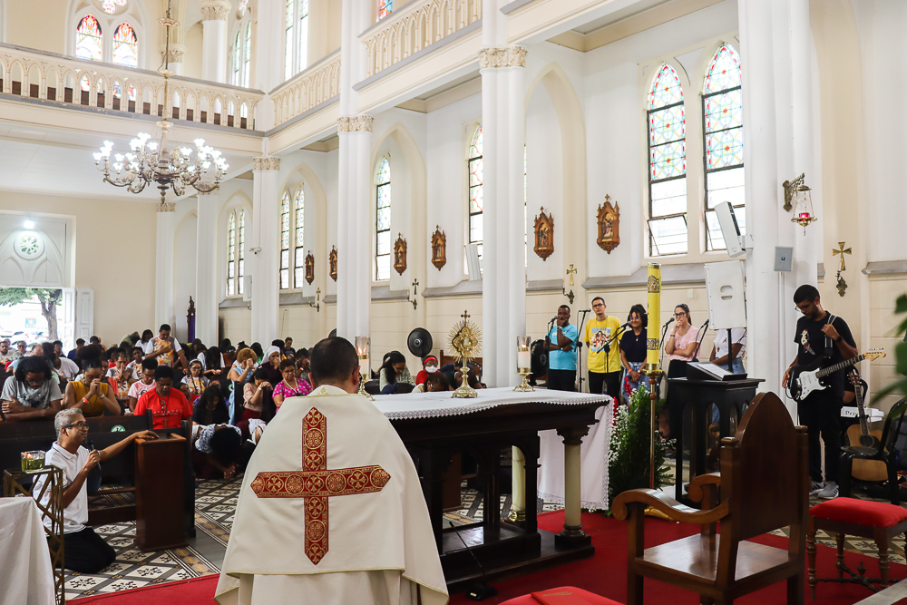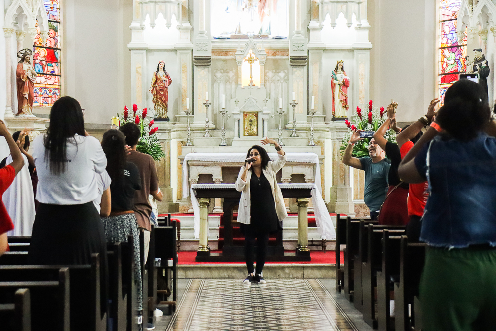 O Conselho Arquidiocesano das Novas Comunidades realizou, no dia 18 de maio, o Encontro em preparação para a Solenidade de Pentecostes: a Festa da Igreja. Reunidos, das 8h às 17h, na Igreja Sagrada Família – Cúria Metropolitana Bom Pastor -, os fiéis participaram de momentos de oração, louvor, pregações e da Santa Missa, que foi presidida pelo bispo auxiliar da Arquidiocese de São Salvador da Bahia, Dom Valter Magno de Carvalho, e concelebrada pelo assistente eclesiástico das Novas Comunidades, padre Ailan Simões. Para encerrar, a cantora Olívia Ferreira. Confira fotos!