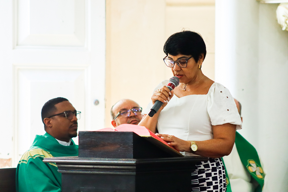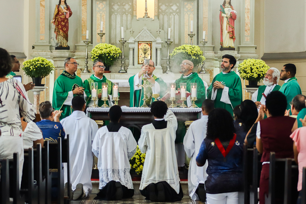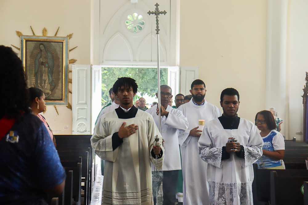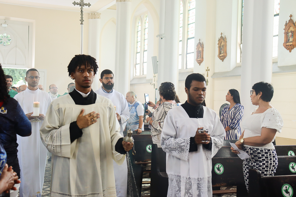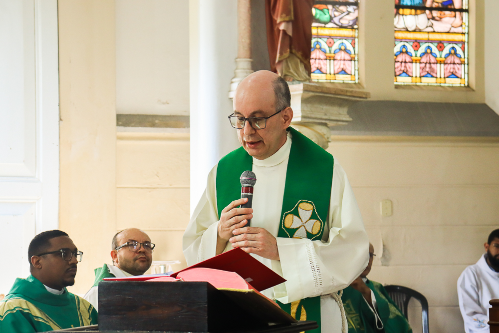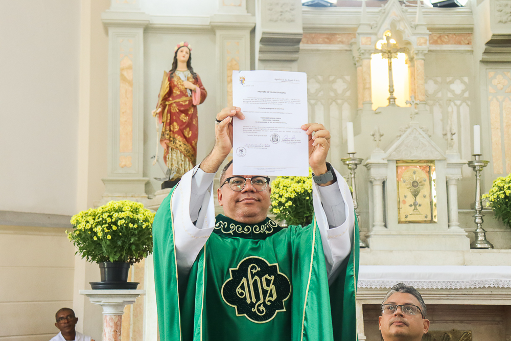 Logo no início da Celebração Eucarística, o vigário do Santuário Nossa Senhora da Conceição Aparecida, padre Jaime Rojas, leu a provisão de vigário episcopal conferida ao padre Carlos Augusto, assinada pelo Cardeal Dom Sergio da Rocha e pelo chanceler da Arquidiocese de Salvador, cônego Antonio Ademilton de Santa Bárbara.