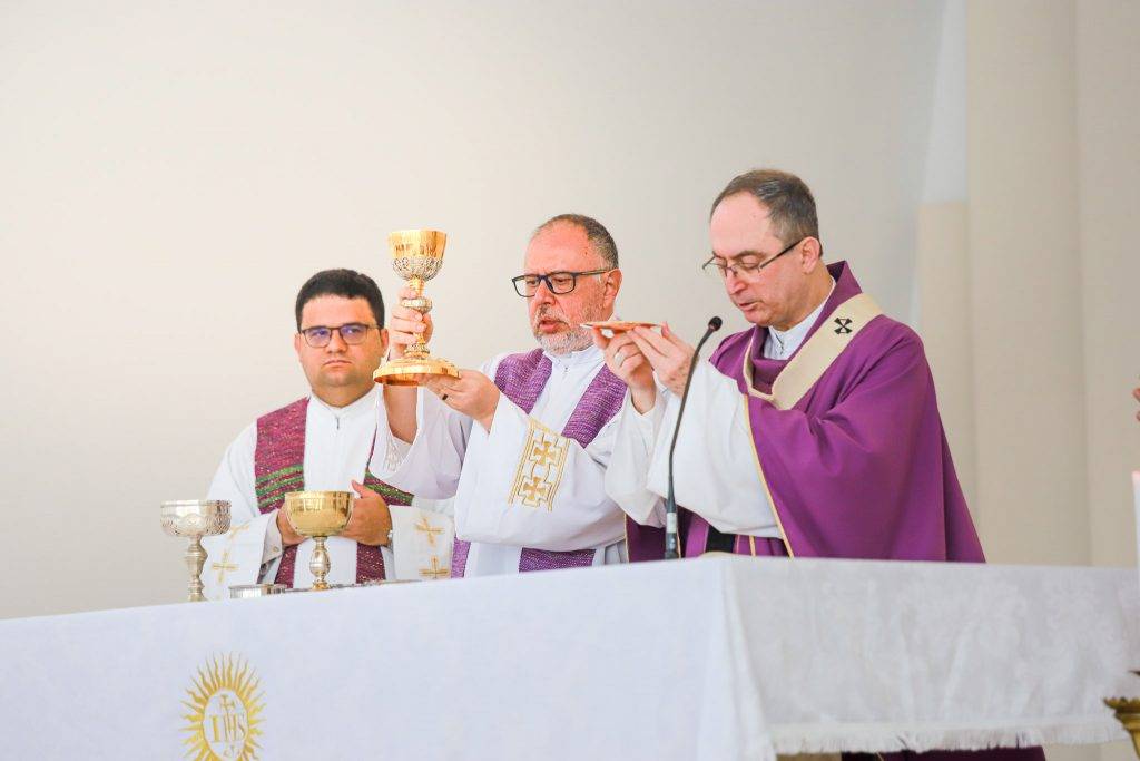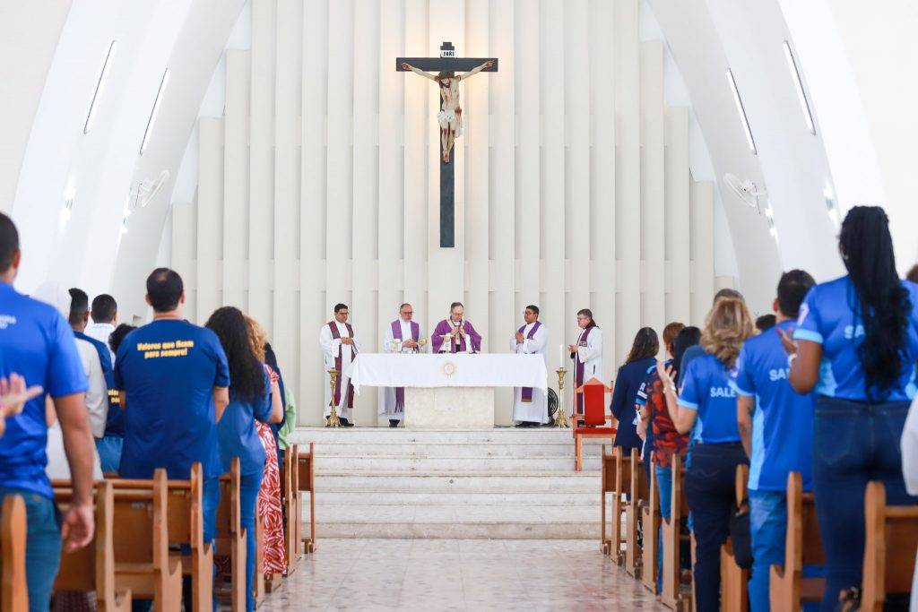 Na missa de abertura do evento – realizada no Santuário Nossa Senhora de Fátima, situado no Vieira –, o arcebispo de Salvador e primaz do Brasil, Dom Sergio da Rocha, abençoou a proposta do dia formativo e agradeceu a Deus “pelo dom, pela graça, da existência de cada instituição educativa católica”, rogando para “que os caminhos e o caminhar de sua missão sejam sempre iluminados”, como declarou em prece, concluindo: “Não podemos caminhar sem a nossa fé, a nossa força, o nosso sustento eucarístico, sobretudo diante dos desafios atuais que exigem ainda mais da nossa missão, enquanto educação católica”. A celebração teve como concelebrantes os padres Emmanuel Araújo SJ, assistente espiritual do Vieira e reitor do Santuário, e Ilmário Pinheiro, representante do Colégio Salesiano.