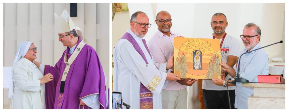 Durante a missa, a Irmã Graças Fonseca apresentou o Ícone do Jesus Mestre da Esperança, tela com imagem de Cristo que ficará peregrinando pelas escolas católicas como parte das celebrações pelos 80 anos da Anec. A programação foi iniciada no Vieira, onde o ícone ficará presente em atividades da Formação Cristã até a próxima sexta-feira (13), seguindo depois para o Colégio Sacramentinas, também no bairro do Garcia. A entrega foi feita oficialmente no Santuário a integrantes do Conselho Diretivo do Vieira.
