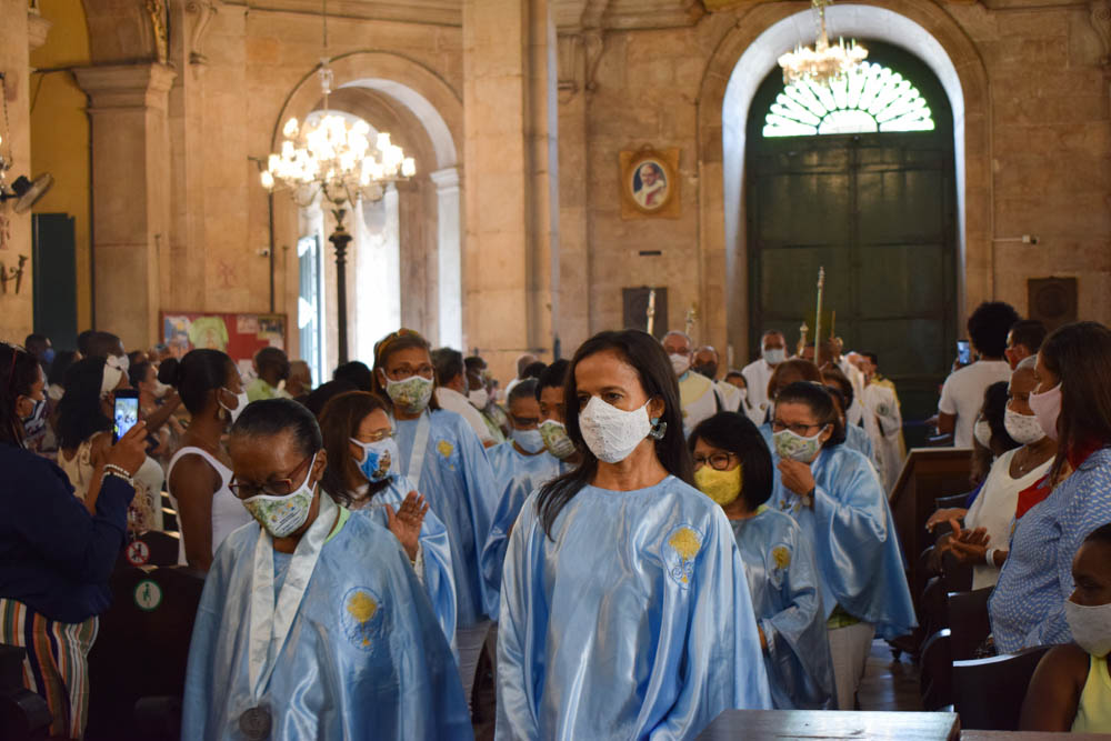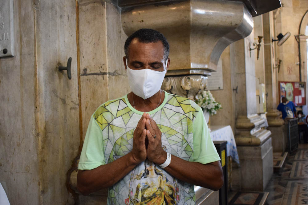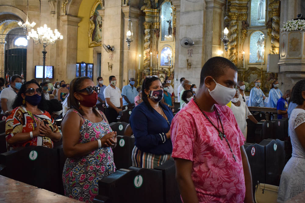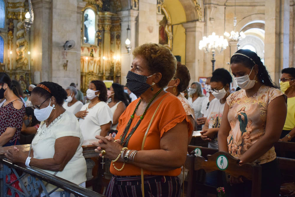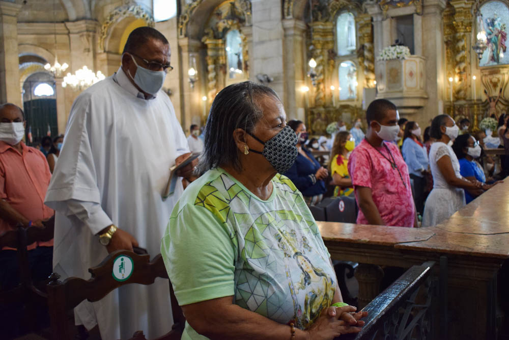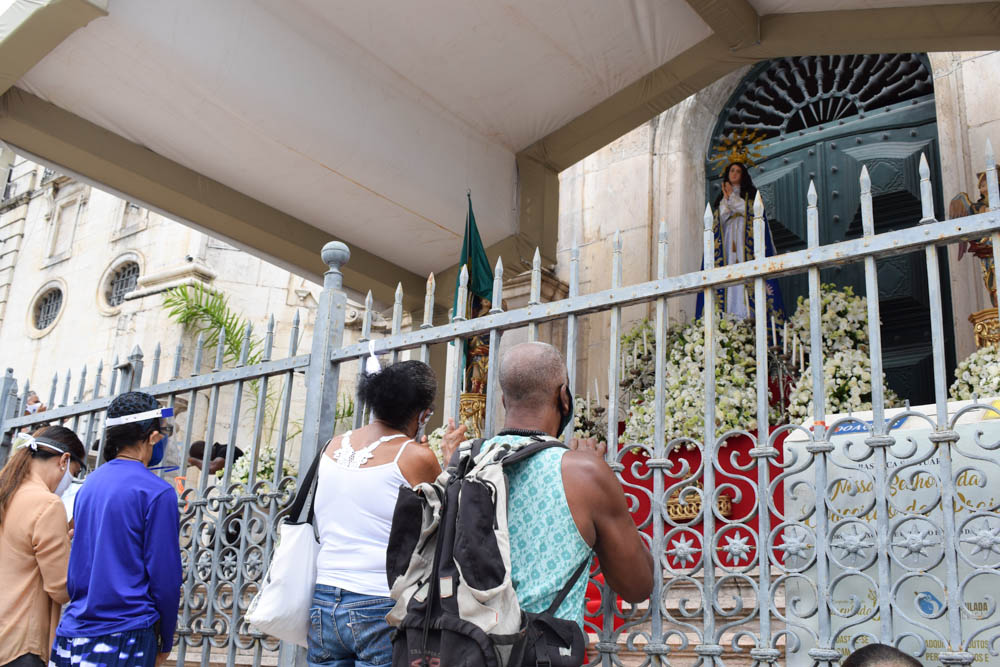 Para ter acesso ao templo, os fiéis precisaram agendar a participação. Esta preocupação se deu devido à pandemia ocasionada pelo novo coronavírus. “Todos os anos eu venho. Quando liguei para agendar, já não tinha mais vaga, mas mesmo assim eu fiz questão de estar aqui presente, agradecendo à Nossa Senhora por mais um ano de vida”, afirma a devota Maria da Conceição Pereira. Assim como ela, outra fiel também celebrava o nascimento hoje. “O meu dia é hoje. Todo ano eu vinha com minha filha, desde pequena, para celebrar a Padroeira da Bahia”, afirma Conceição Jesus.