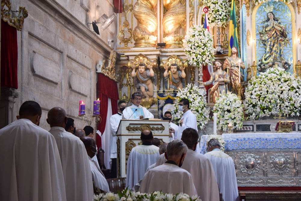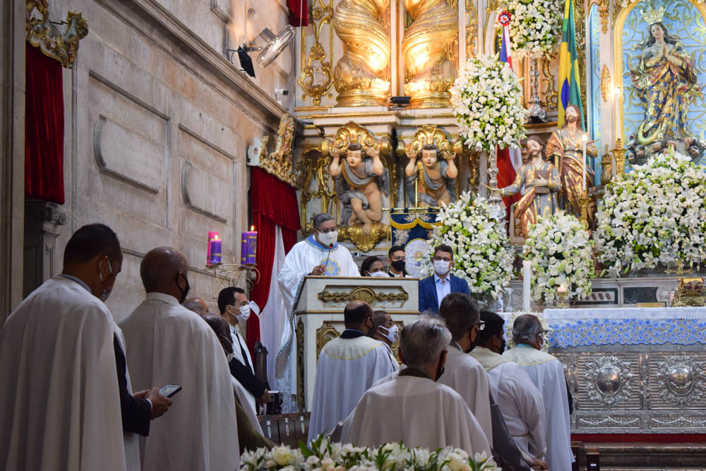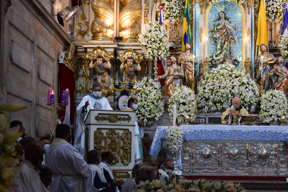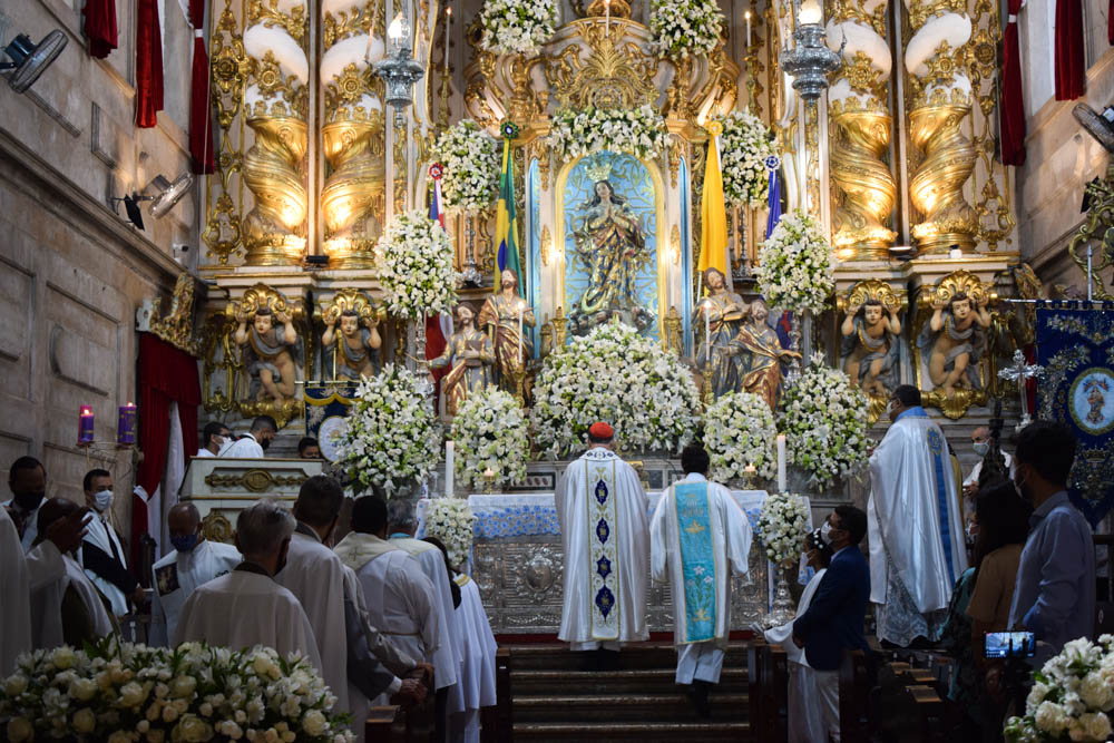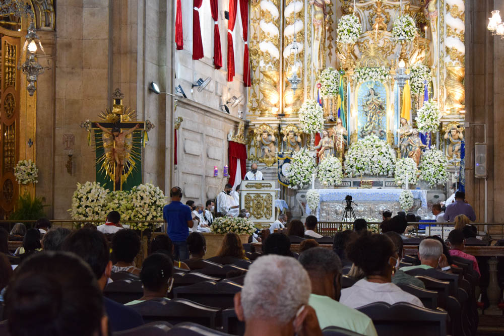 Por volta das 9h, o Arcebispo de Salvador e Primaz do Brasil, Cardeal Dom Sergio da Rocha, presidiu a Missa Solene. “Estamos aqui para celebrar a Festa de Nossa Senhora da Conceição da Praia, Padroeira da Bahia e de todos os baianos, pedindo a sua proteção e aprendendo com ela a cuidar da vida, que é dom de Deus; não só da própria vida, mas também a cuidar, a preservar a vida e a saúde das pessoas que nós amamos e de todos os irmãos e irmãs. Hoje é um dia de louvor, acompanhado da nossa vivência do amor ao próximo. A melhor maneira de homenagear a Nossa Senhora é justamente o nosso louvor,  e o nosso esforço sincero de viver o que Jesus nos ensina, do amor ao próximo, principalmente o próximo mais sofredor, que necessita da nossa oração, da nossa solidariedade, principalmente neste tempo difícil da pandemia”, disse.