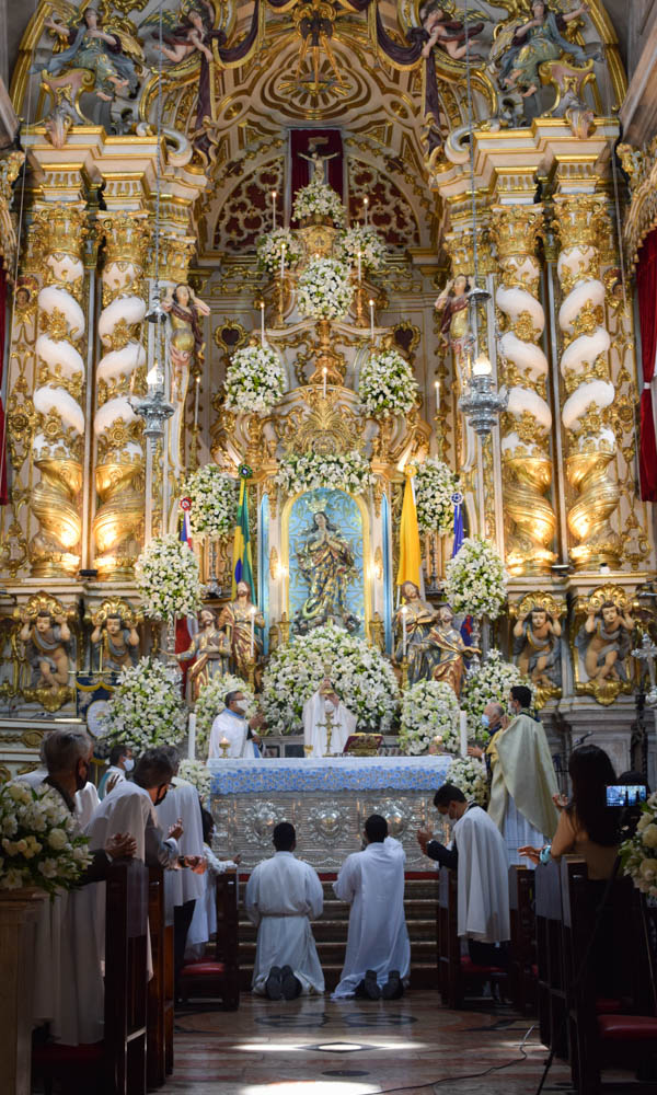A manhã deste dia 8 de dezembro de 2020 foi diferente de todas as manhãs, nesta mesma data, dos anos anteriores. Ao contrário da imensa multidão que costuma participar das Missas pela Solenidade da Imaculada Conceição da Mãe de Deus, apenas um número reduzido de fiéis – 250 no total (contando com o Arcebispo, padres e membros da Irmandade) – puderam estar presentes, fisicamente, na Festa da Rainha e Padroeira do Estado da Bahia, celebrada na Basílica Santuário Nossa Senhora da Conceição da Praia. Às 5h, quando teve início a primeira Missa do dia, a imagem da Mãe de Jesus foi colocada na porta principal do templo para veneração pública dos devotos que, do gradil, agradeciam e suplicavam a intercessão da Virgem Santíssima.