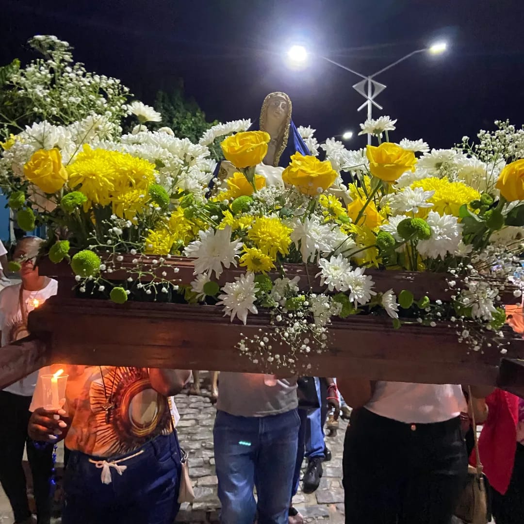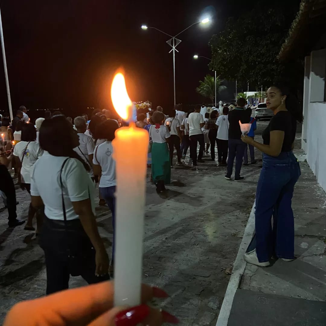 Em seguida, os fiéis realizaram uma procissão luminosa, anunciando o início da festa de Nossa Senhora da Piedade.