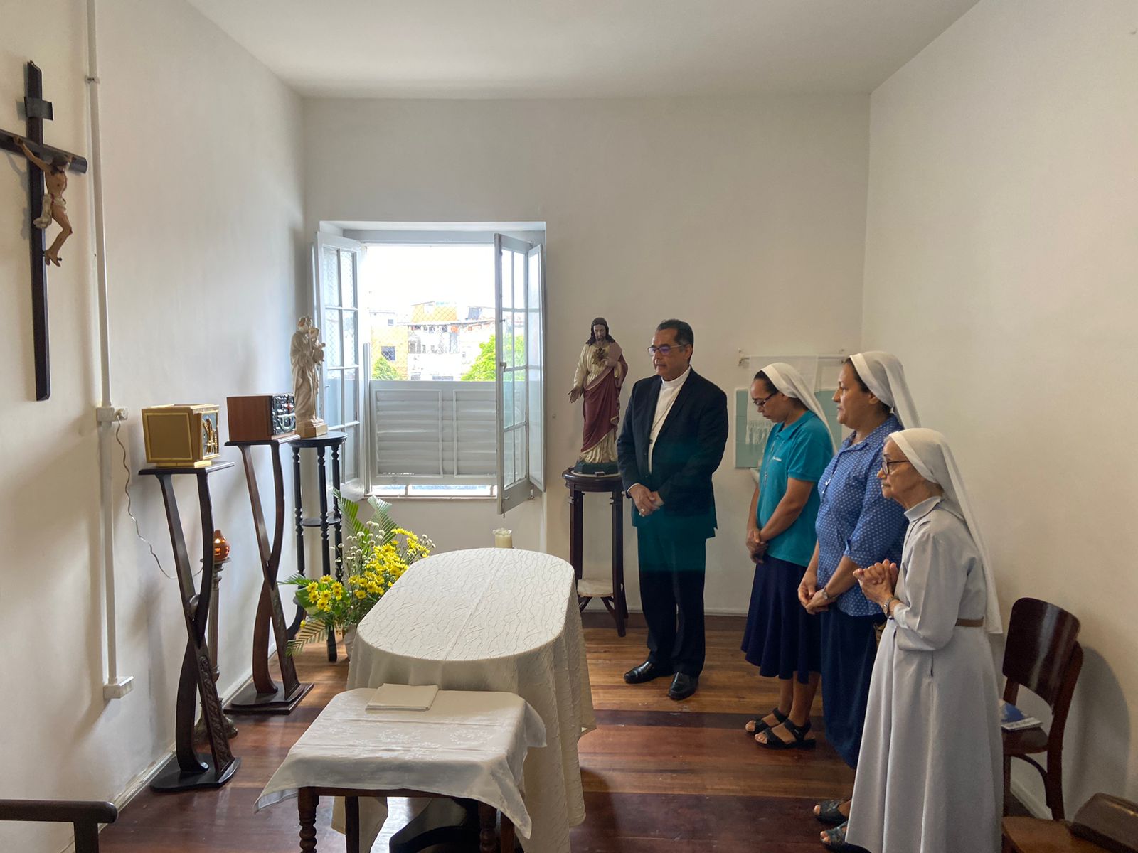 O bispo auxiliar da Arquidiocese de São Salvador da Bahia e referencial para a Pastoral da Educação, Dom Dorival Barreto, visitou nesta quarta-feira (12), a comunidade do Colégio Soledade, localizado na Ladeira da Soledade, bairro Liberdade. Ao lado do coordenador desta pastoral, Felipe Teixeira, Dom Dorival vivenciou e conduziu momentos de oração e de partilha com as religiosas, professores, estudantes e funcionários.
