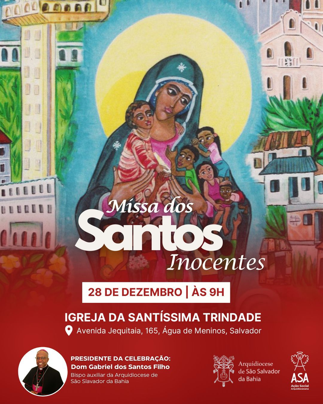 A Igreja celebra, no dia 28 de dezembro, a memória dos dos Santos Inocentes – crianças assassinadas por ordem do rei Herodes na tentativa de eliminar o Menino Jesus. Na Arquidiocese de São Salvador da Bahia, a data será marcada, como acontece anualmente, por uma Missa na Igreja da Santíssima Trindade, localizada na Avenida Jequitaia, 165, no bairro de Água de Meninos, nas proximidades do Mercado do Peixe.