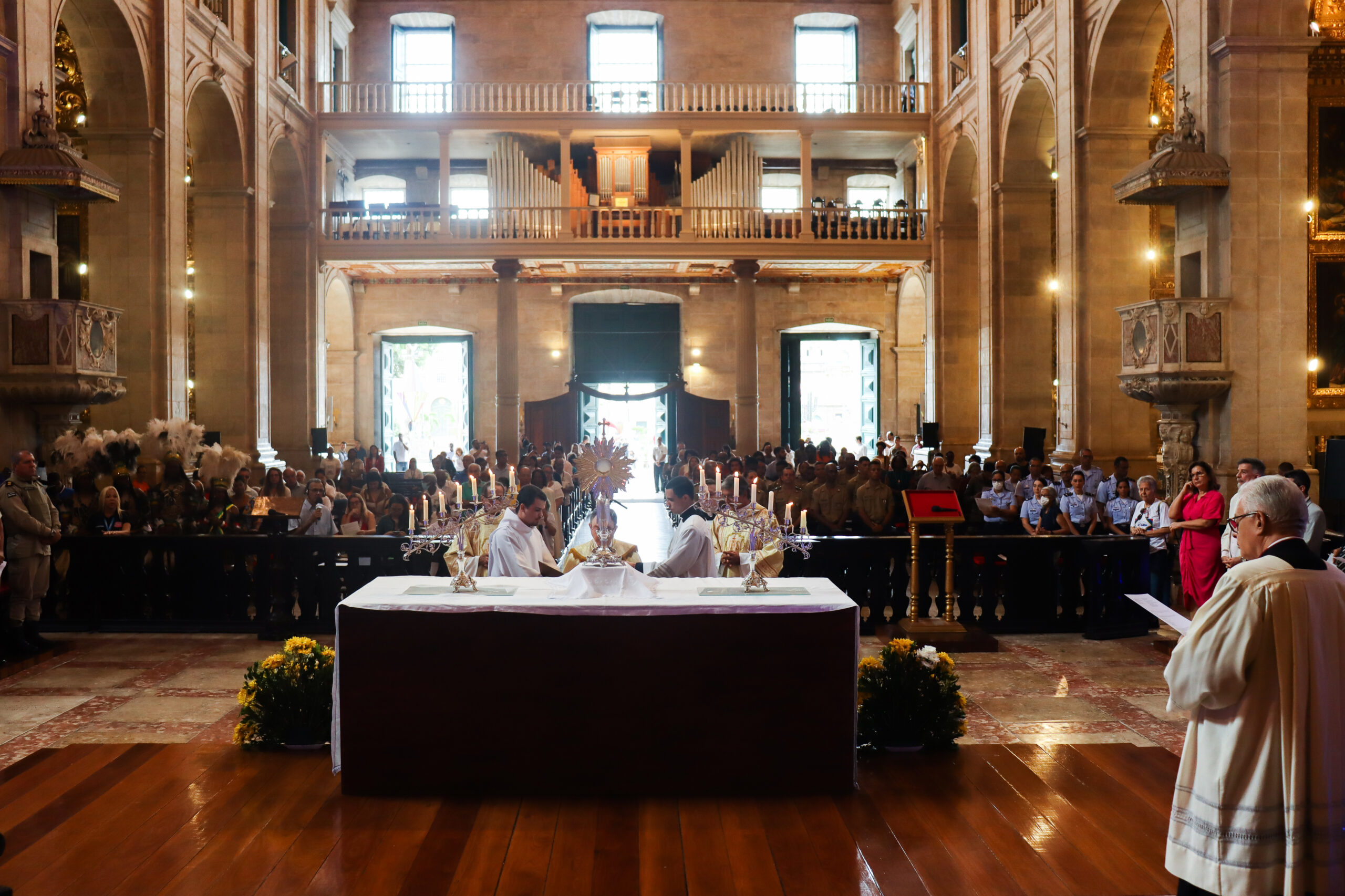Em seguida, o coral da Basílica Santuário Senhor Bom Jesus do Bonfim, conduzido pelo maestro Rufino, entoou o Te Deum, que é um Hino da Liturgia das Horas rezado aos domingos e dias solenes. Este hino foi composto por Santo Ambrósio e Santo Agostinho, no ano de 387, em Milão, por ocasião do batismo de Santo Agostinho. Logo na primeira estrofe é proclamado: A Ti, Deus, louvamos, a Ti, Deus, cantamos. A ti, Eterno Pai, adora toda a terra. Na Bahia, esta tradição teve início em vista da grande graça recebida pela consolidação da Independência. “No final do belíssimo hino de louvor, que é o Te Deum, há um pedido a Deus de perdão, há um reconhecimento da misericórdia de Deus. “Tenha misericórdia de nós, Senhor, desça sobre nós a Sua misericórdia”, disse o Cardeal.