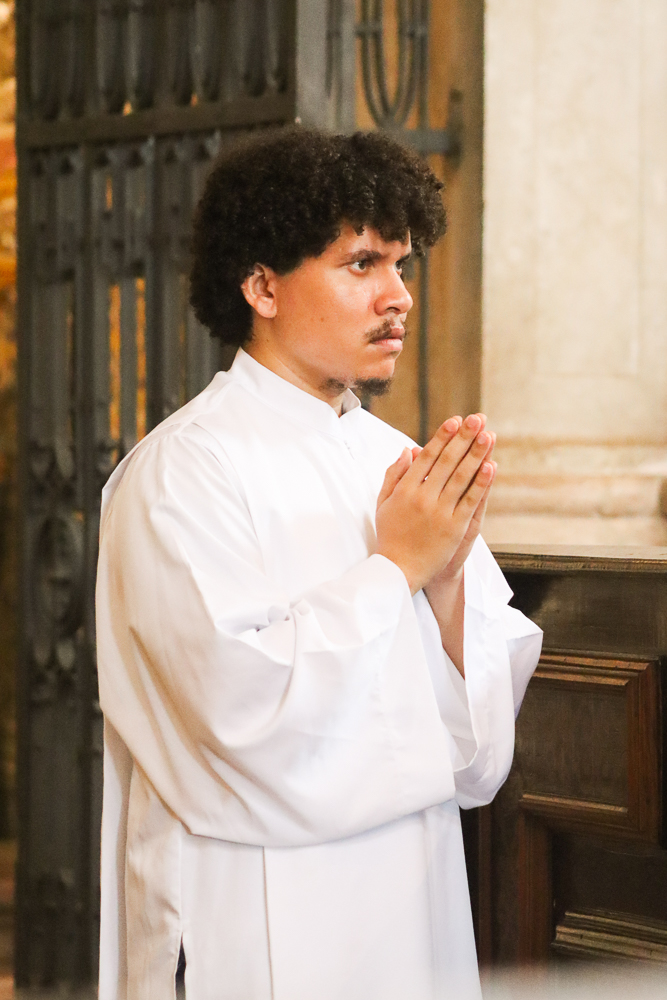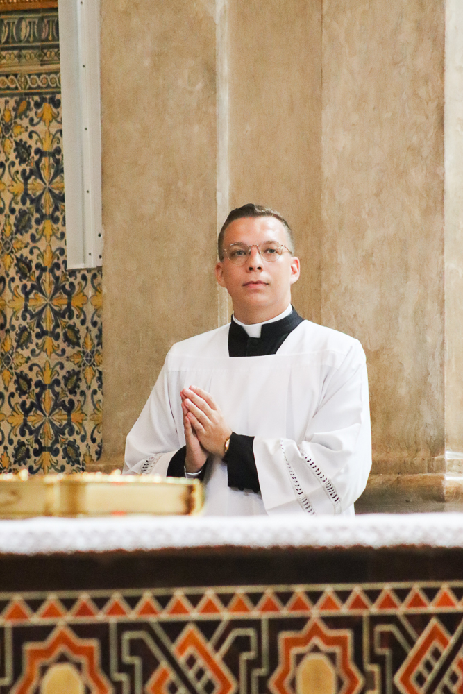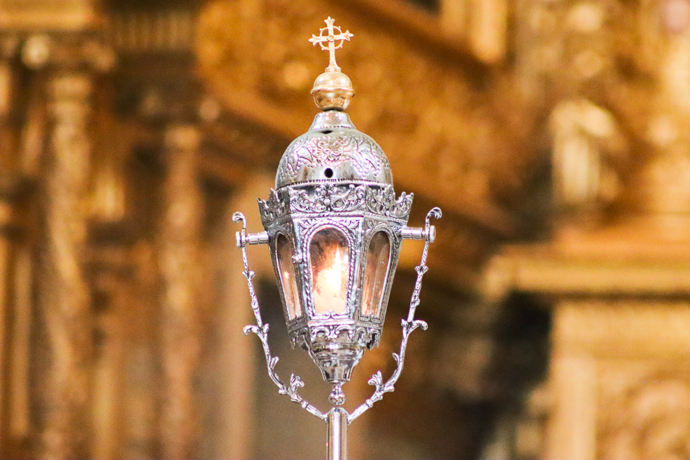 Próximo ao presbitério estava a imagem do Cristo ressuscitado e o Círio Pascal, aceso no Sábado Santo. Símbolo do Cristo ressuscitado, o Círio traz nele  só as marcas da Paixão, mas a primeira e a última letras do alfabeto – alfa e ômega -, para recordar que Cristo é o princípio e o fim de todas as coisas; além de nele estarem gravados algarismos deste ano: 2024.