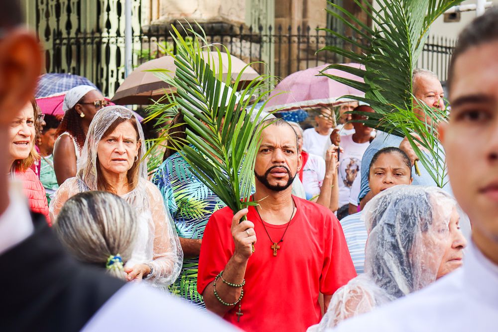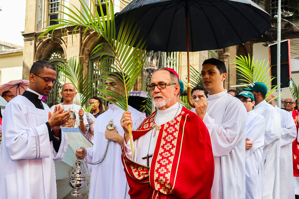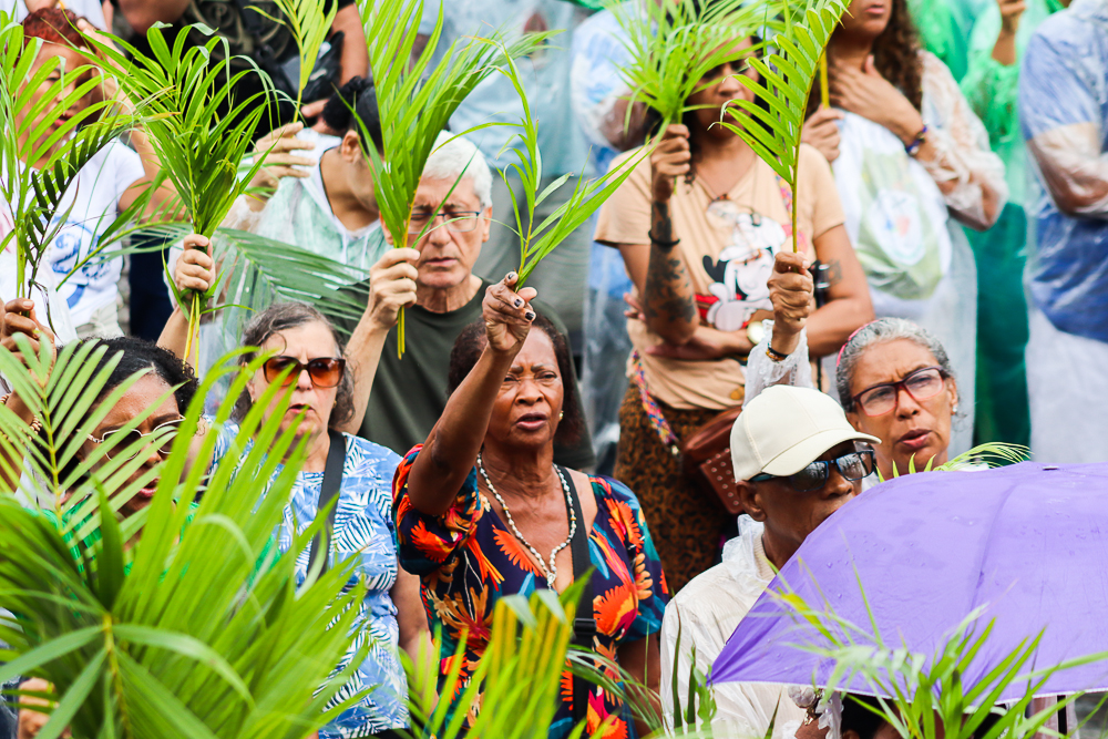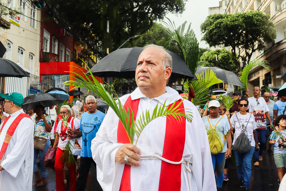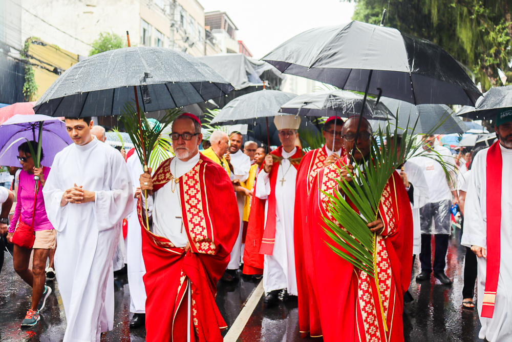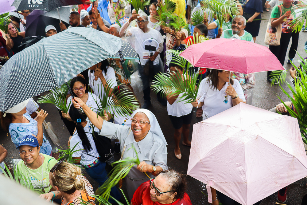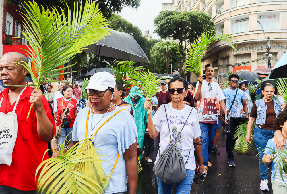 Neste Domingo de Ramos e da Paixão do Senhor – este ano, em 29 de março -, milhares de fiéis se reuniram para celebrar o início da Semana Maior, a Semana Santa. No centro da capital baiana, nem a forte chuva desanimou os participantes, que, com ramos nas mãos e expressões de fé, tomaram as ruas em um testemunho público de devoção.