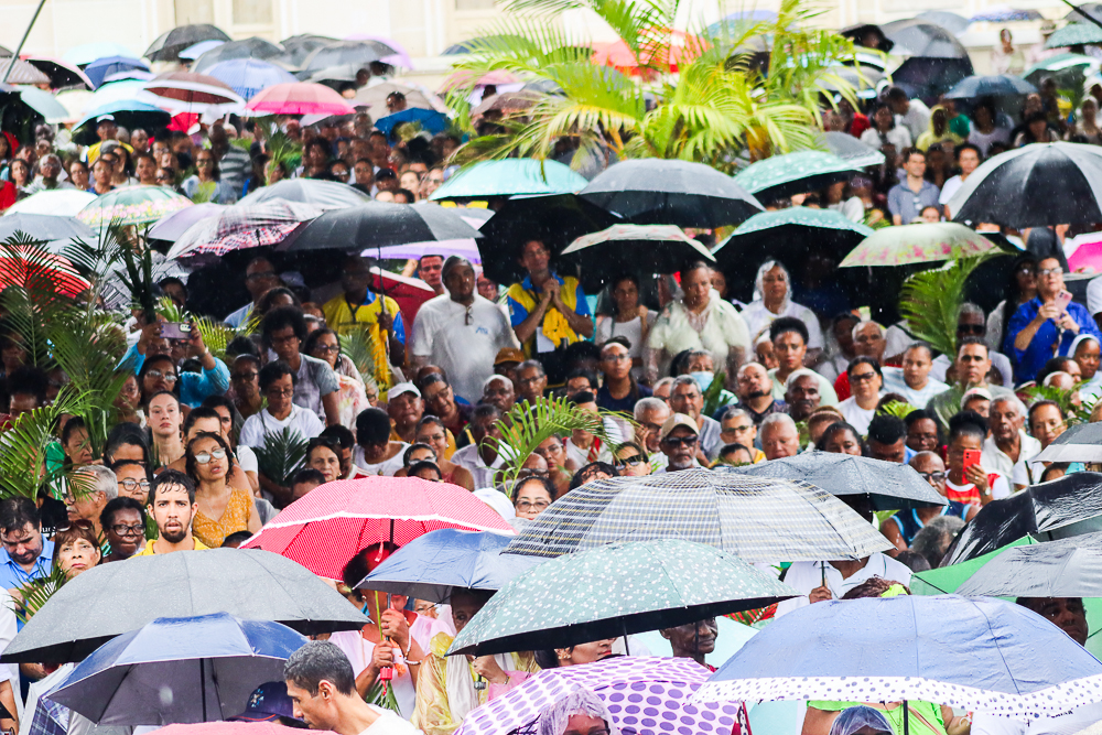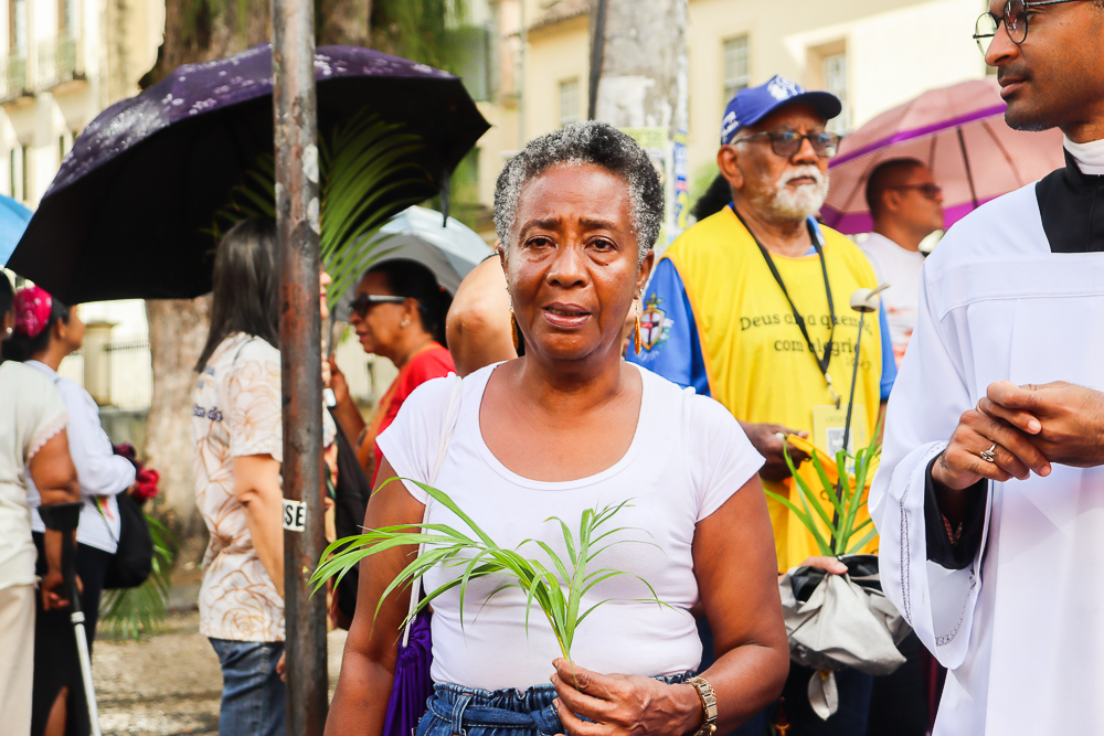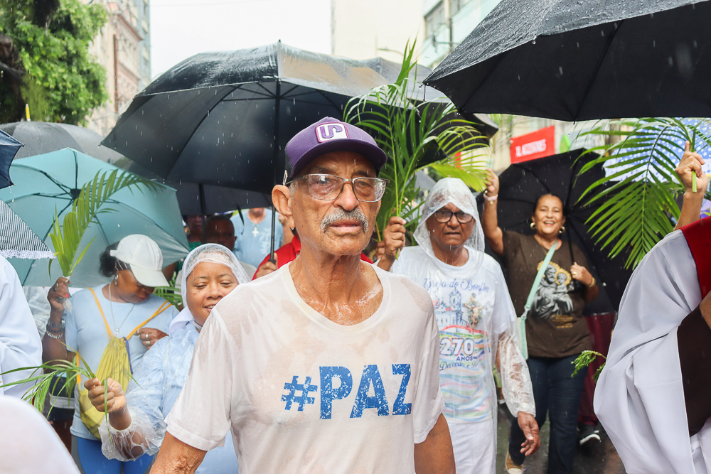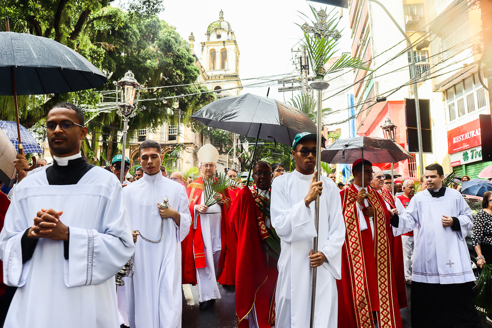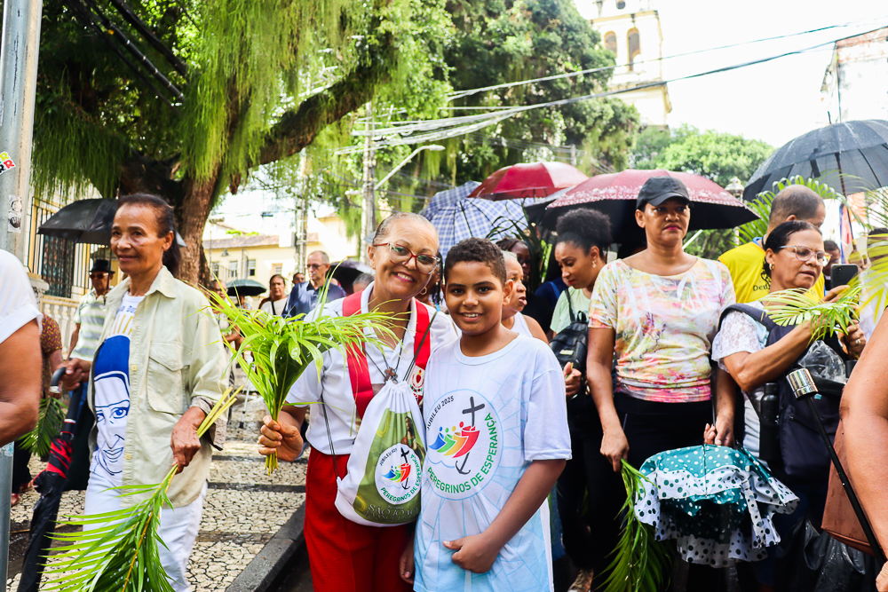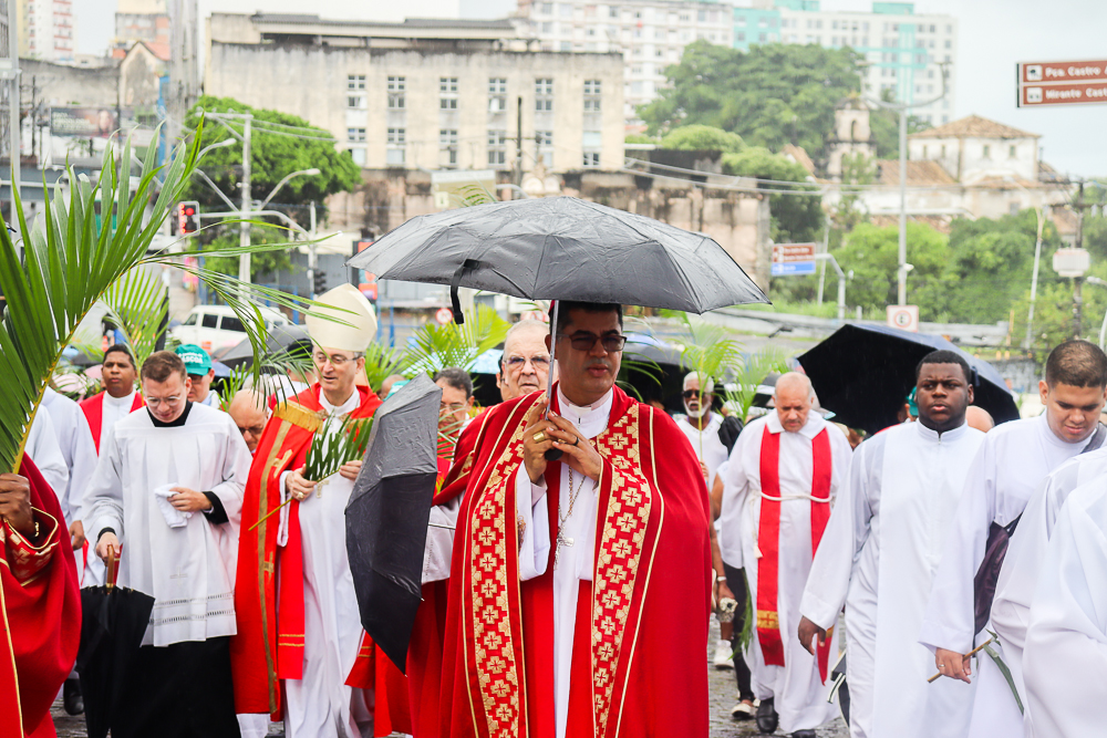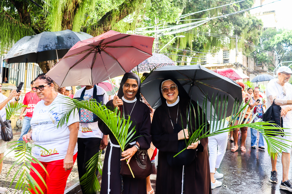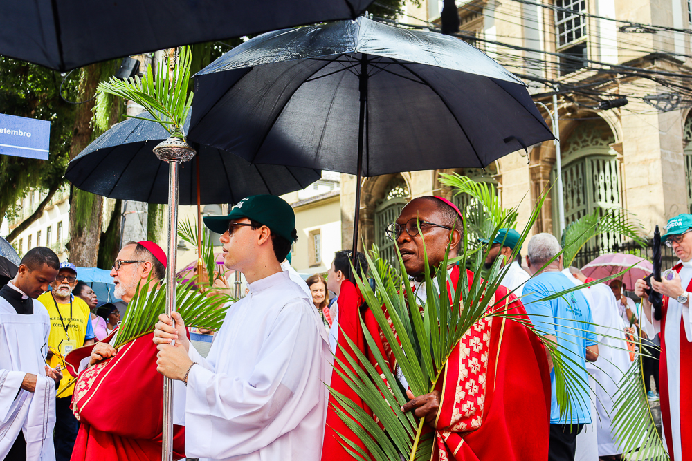Neste Domingo de Ramos e da Paixão do Senhor – este ano, em 29 de março -, milhares de fiéis se reuniram para celebrar o início da Semana Maior, a Semana Santa. No centro da capital baiana, nem a forte chuva desanimou os participantes, que, com ramos nas mãos e expressões de fé, tomaram as ruas em um testemunho público de devoção.