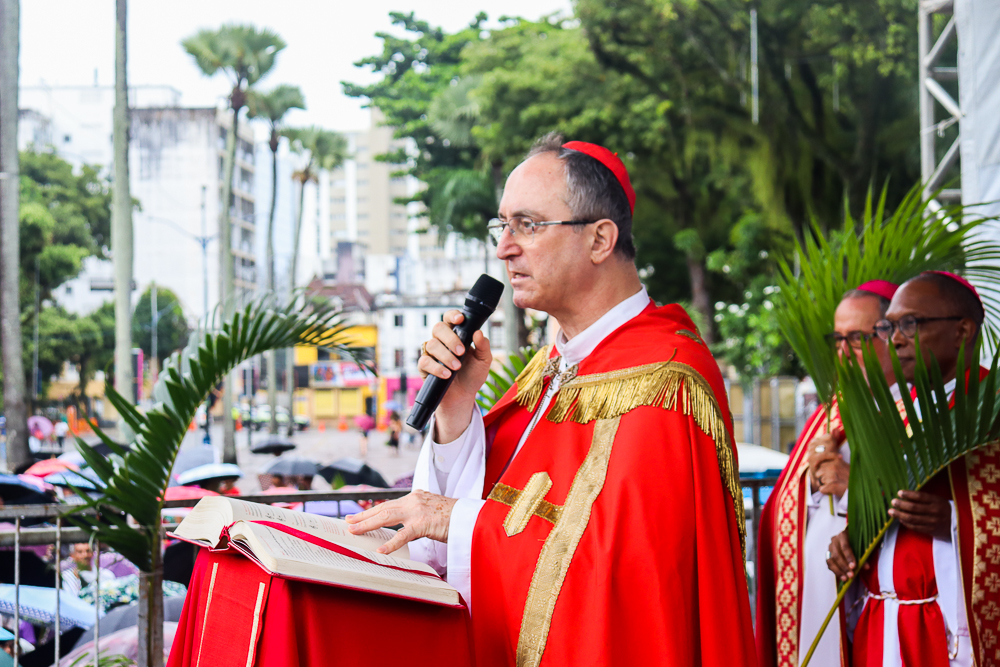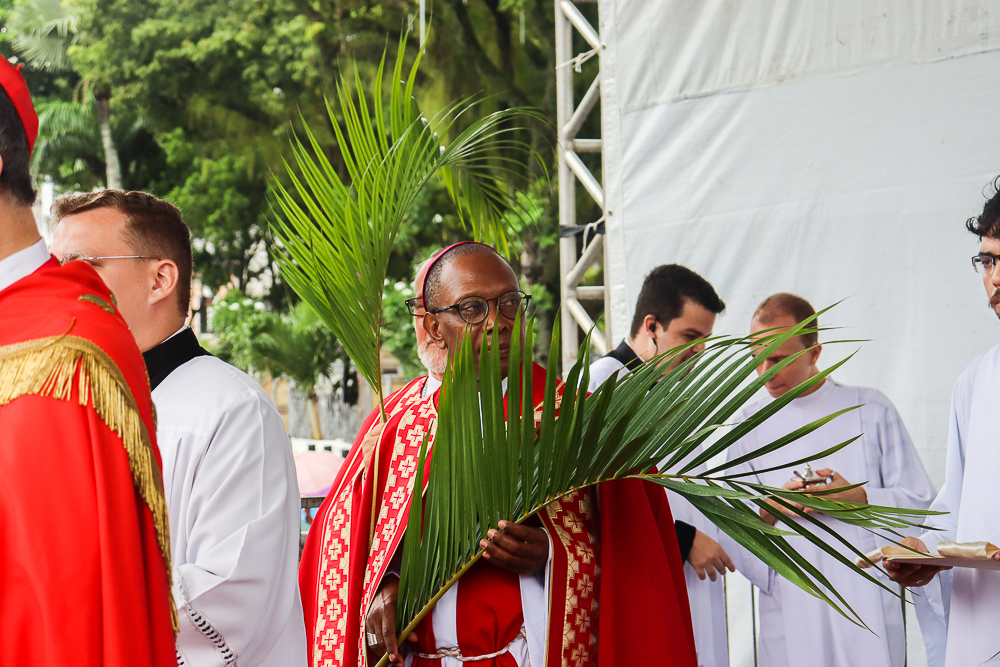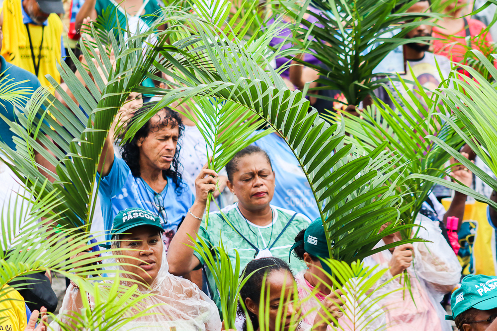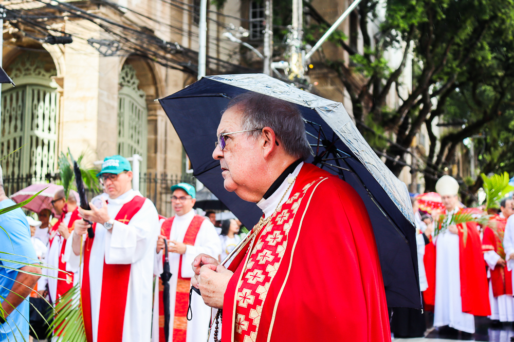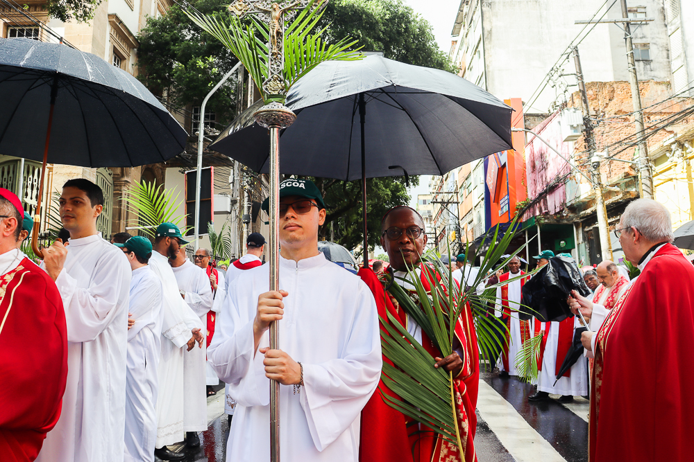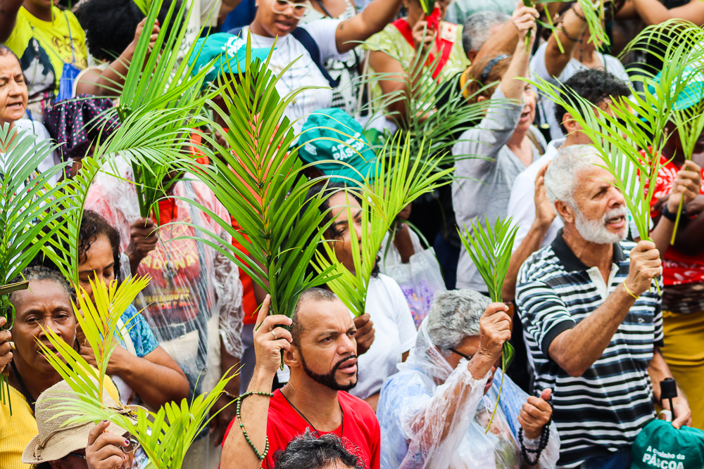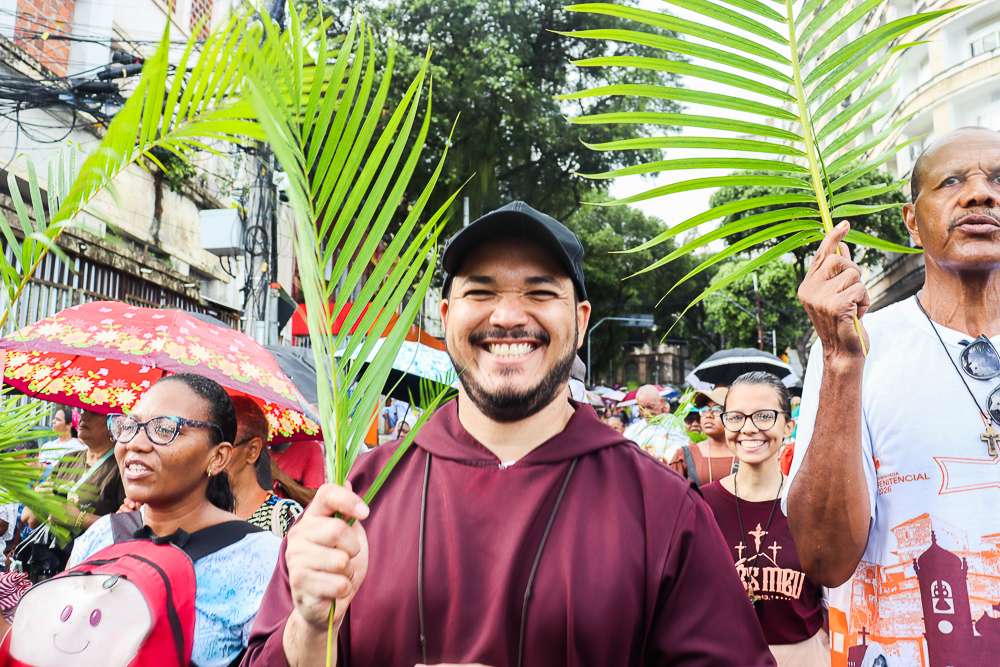 Neste Domingo de Ramos e da Paixão do Senhor – este ano, em 29 de março -, milhares de fiéis se reuniram para celebrar o início da Semana Maior, a Semana Santa. No centro da capital baiana, nem a forte chuva desanimou os participantes, que, com ramos nas mãos e expressões de fé, tomaram as ruas em um testemunho público de devoção.