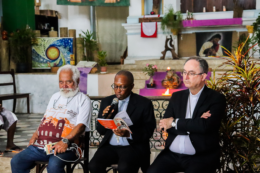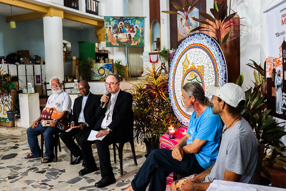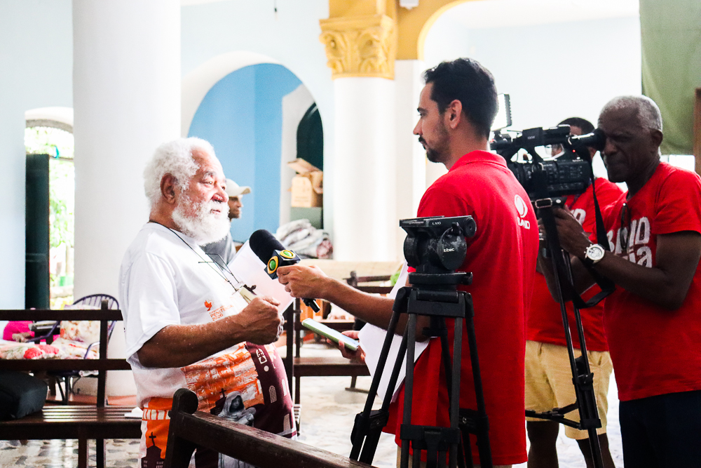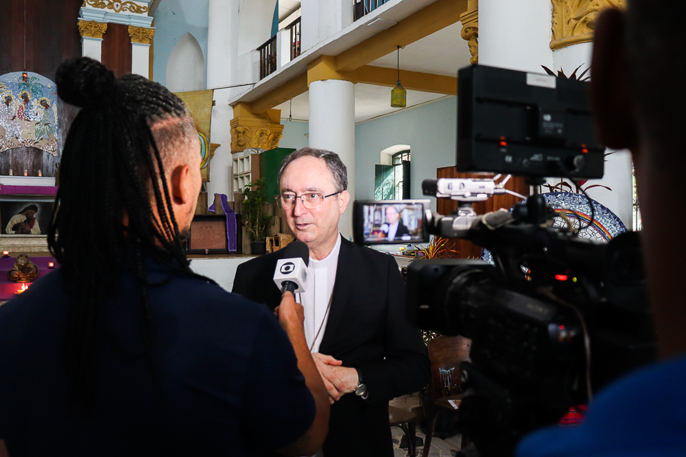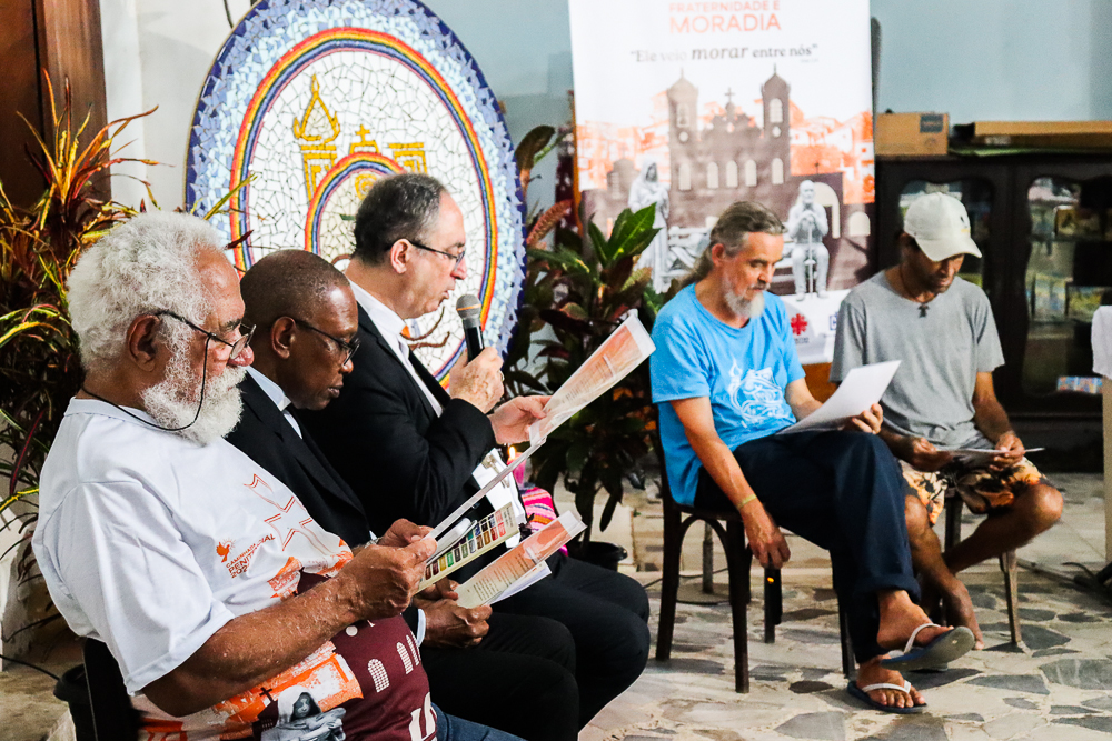 Participaram da coletiva o Arcebispo de São Salvador da Bahia, Primaz do Brasil, Cardeal Dom Sergio da Rocha; o bispo auxiliar da Arquidiocese e referencial para as Pastorais Sociais, Dom Gabriel dos Santos Filho; o diretor executivo da Ação Social Arquidiocesana (ASA), cônego José Carlos Santos Silva; o idealizador da Comunidade da Trindade, Irmão Henrique Peregrino; e o morador Altair Leal de Aguiar, residente em uma das casas assistidas. A condução foi realizada pelo vigário episcopal para a Cultura, Educação e Comunicação, padre Manoel Filho.
